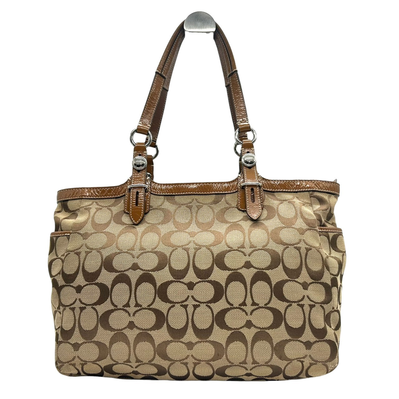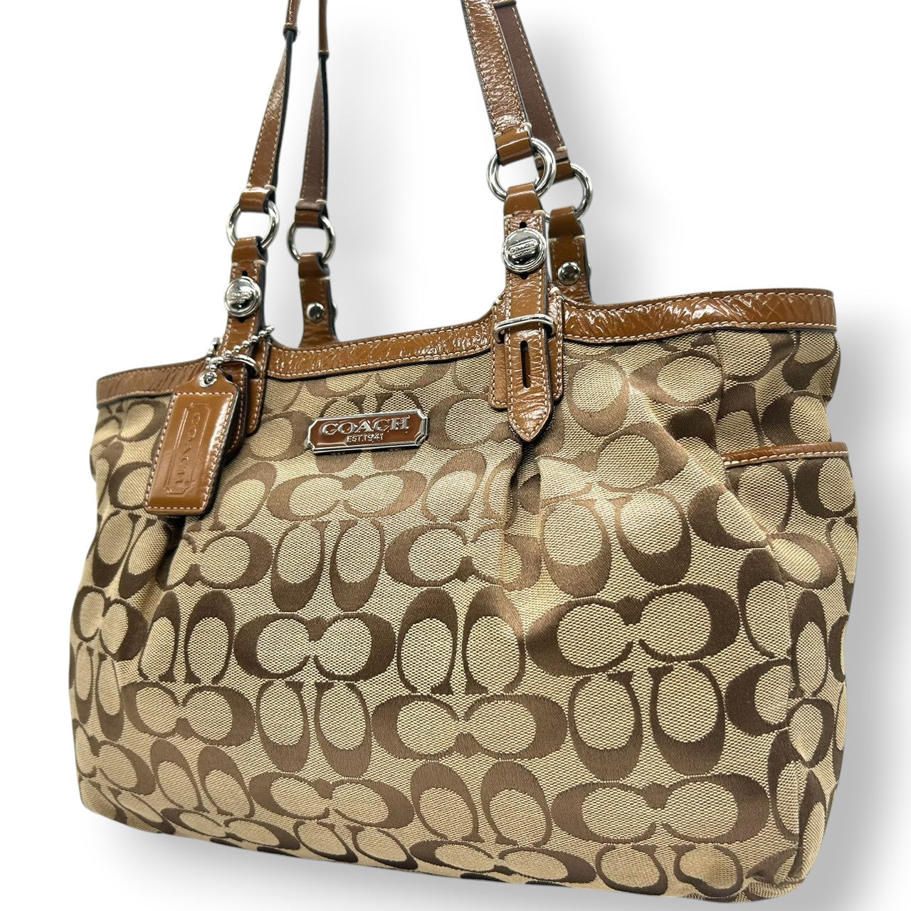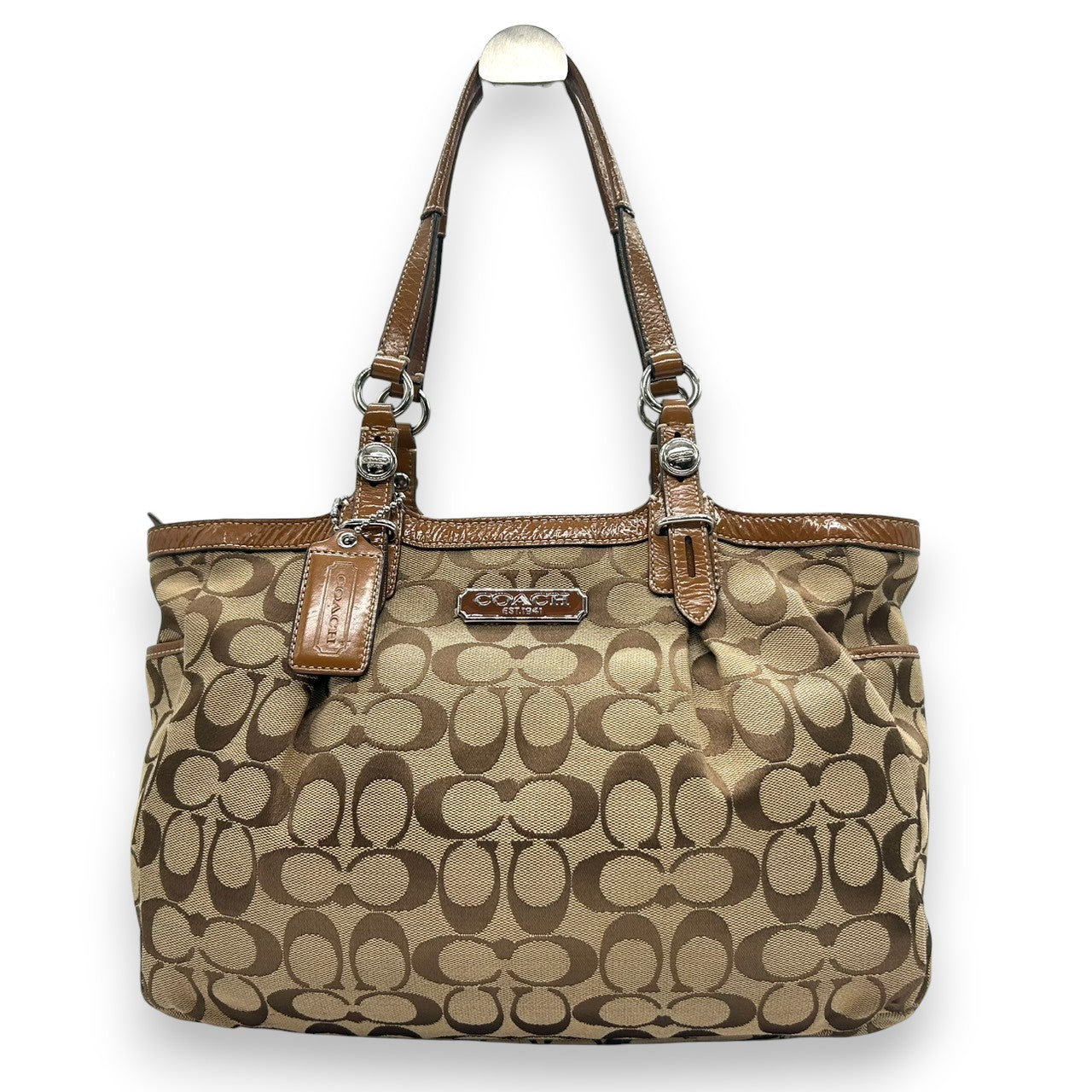 コーチ トートバッグ シグネチャー キャンバス レザー ブラウン F15146 A4収納可 肩掛け ワンショルダー 通勤 通学 レディース ハンドバッグ チャーム付き エレガント クラシックデザイン クリーニング済み s63