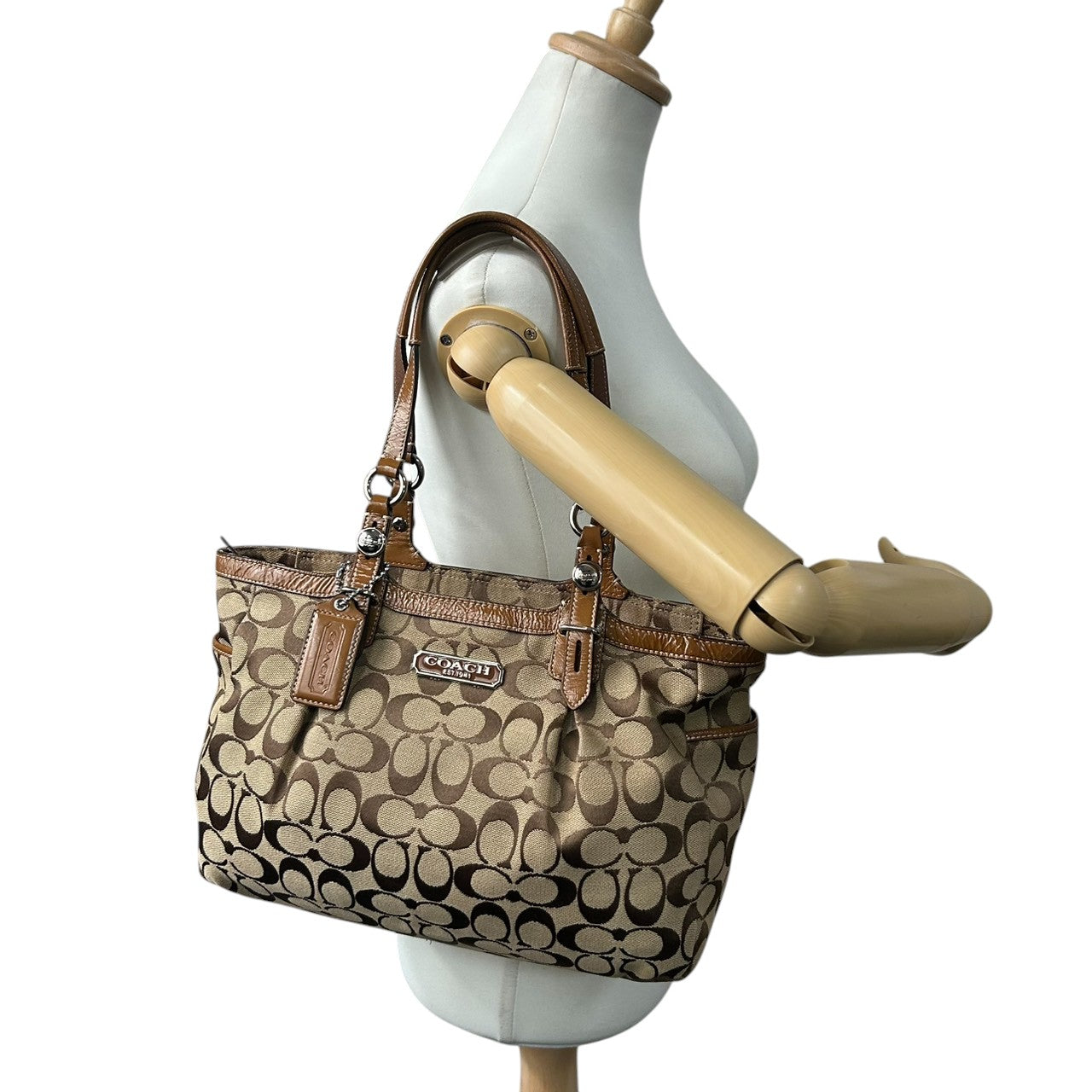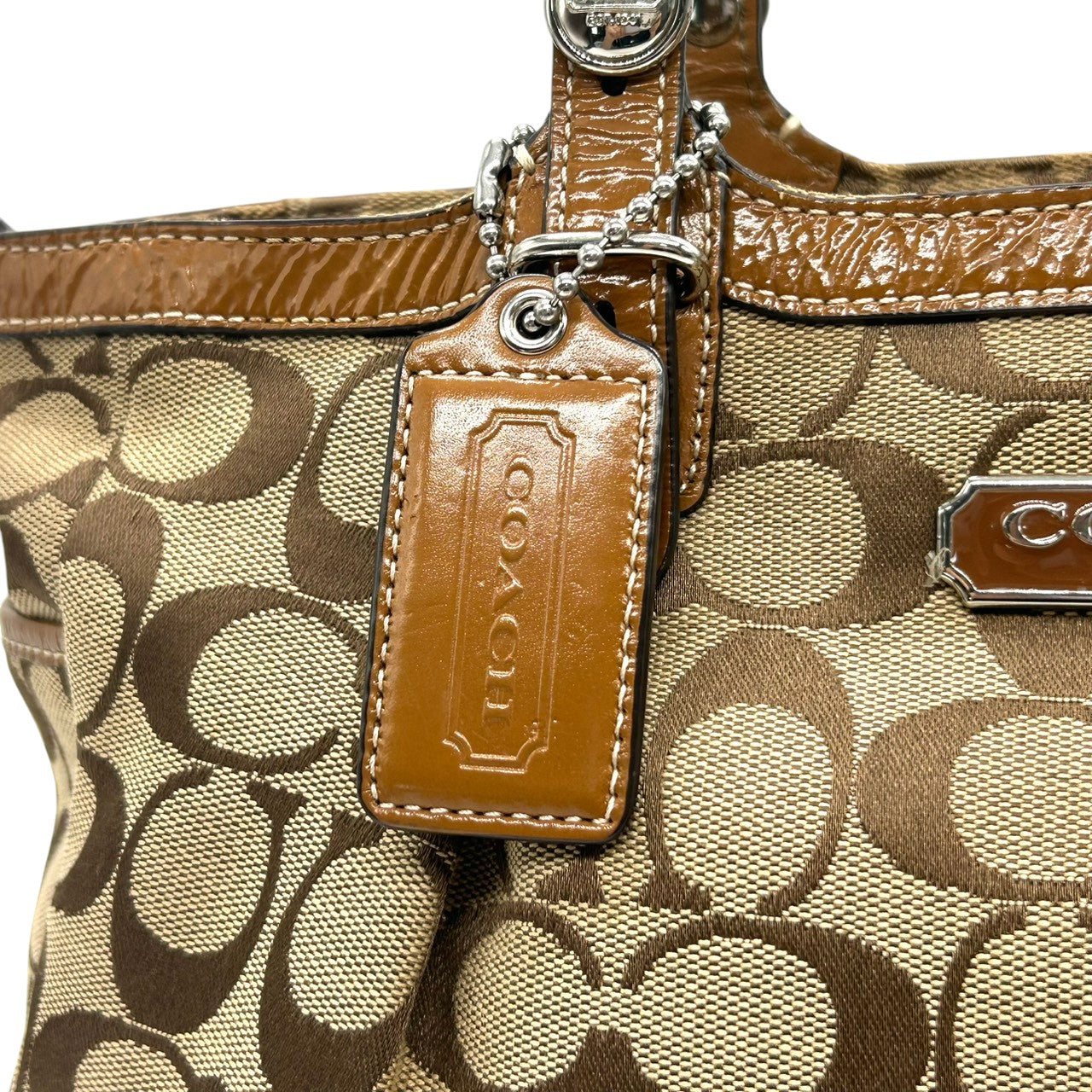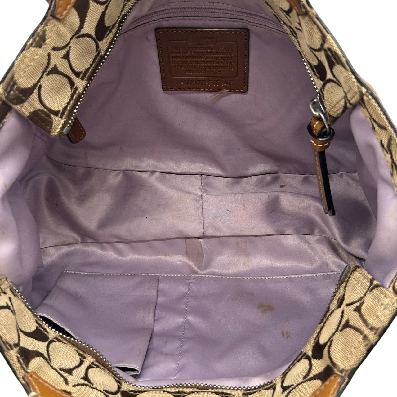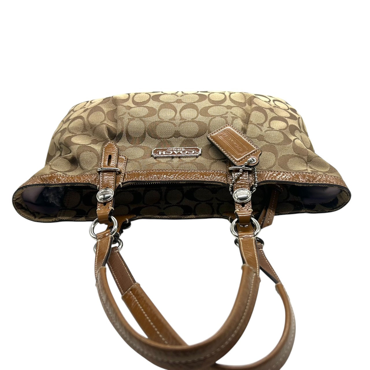 コーチ トートバッグ シグネチャー キャンバス レザー ブラウン F15146 A4収納可 肩掛け ワンショルダー 通勤 通学 レディース ハンドバッグ チャーム付き エレガント クラシックデザイン クリーニング済み s63