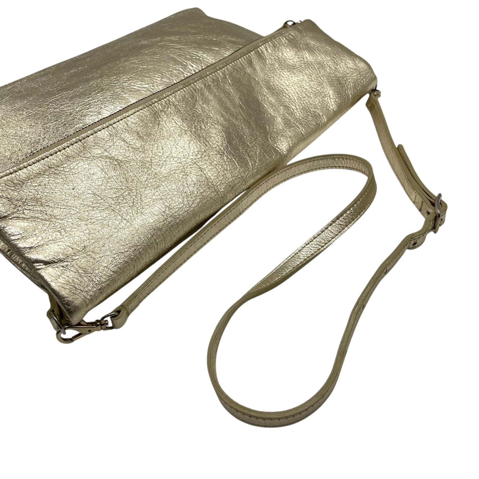 | 商品説明 | Pinky & Dianne(ピンキーアンドダイアン)の上品なメタリックゴールドショルダーバッグです。 柔らかく艶のあるレザー調素材が高級感を引き立て、斜めに配されたファスナーデザインがモードな印象を演出。 折りたたんでクラッチバッグとしても使える2WAY仕様で、ショルダーストラップを取り外せばフォーマルシーンにもぴったりです。 華やかすぎず落ち着いた輝きなので、普段使いやパーティー、ディナーなど幅広いシーンに対応可能。 シンプルながら存在感のあるデザインで、大人の女性のスタイルを引き立てるアイテムです。 |