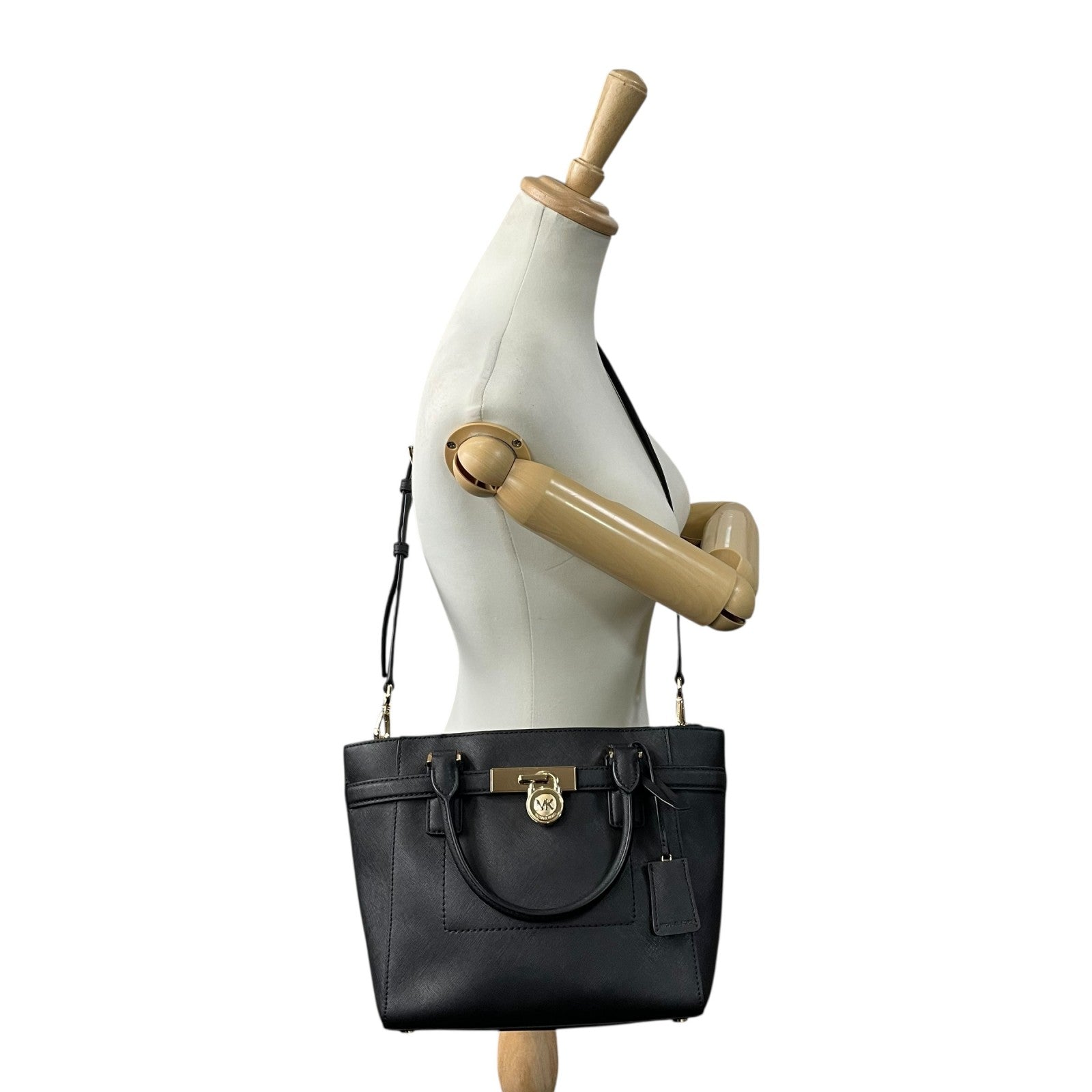 美品 マイケルコース MICHAEL KORS ハミルトン 2WAY ハンドバッグ ショルダーバッグ 黒 ブラック 金 ゴールド レザー S29