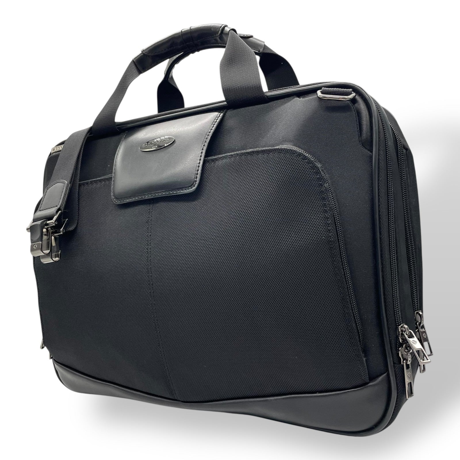 美品 サムソナイト Samsonite ビジネスバッグ ブリーフケース 2WAY ショルダー付 ナイロン×レザー 黒 ブラック X2