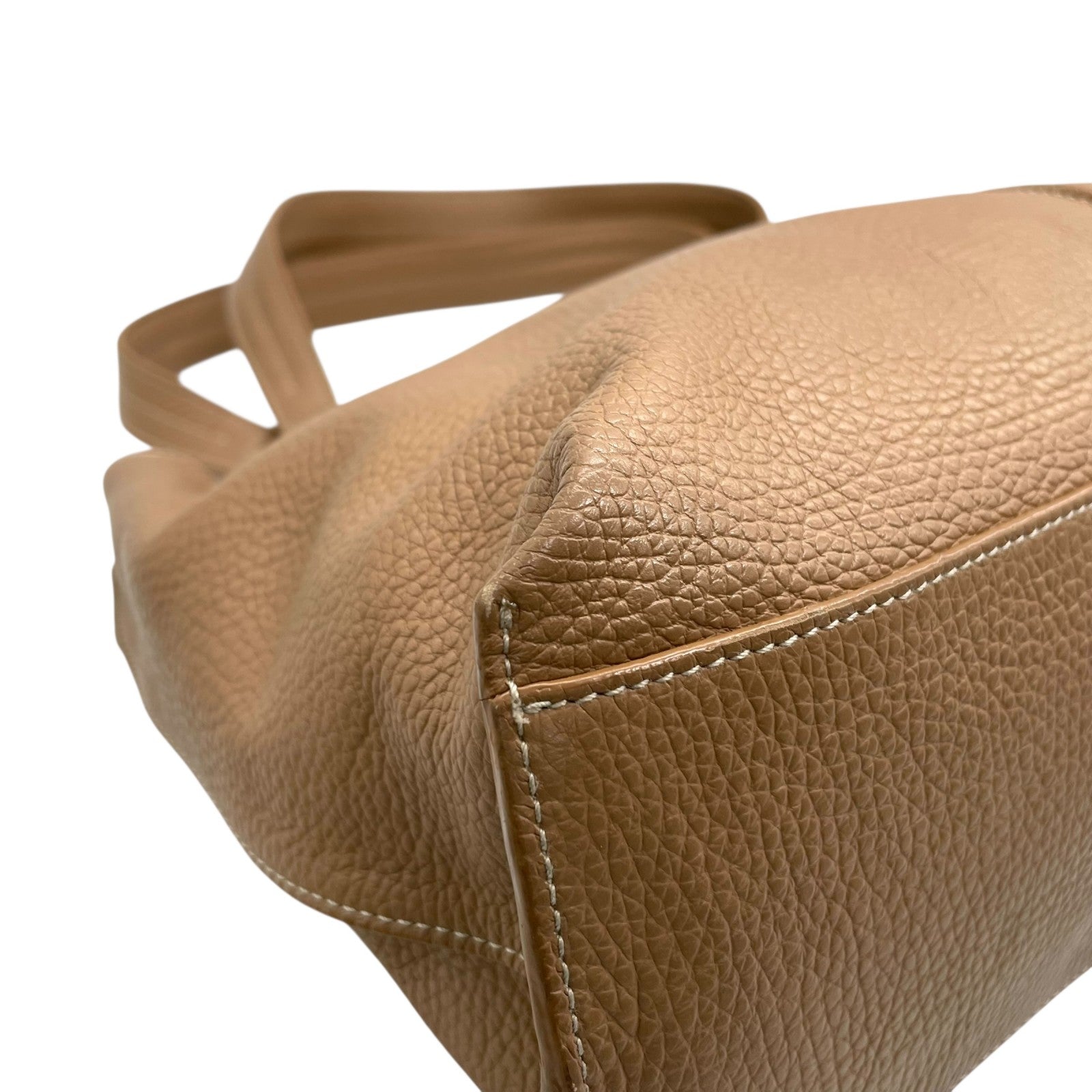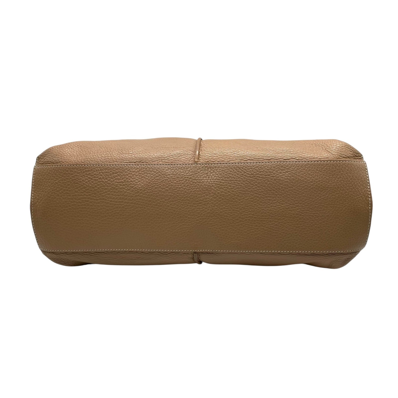 美品 コーチ COACH トートバッグ レザー ベージュ シルバー金具 メタルリング 肩掛け A4収納可 S52