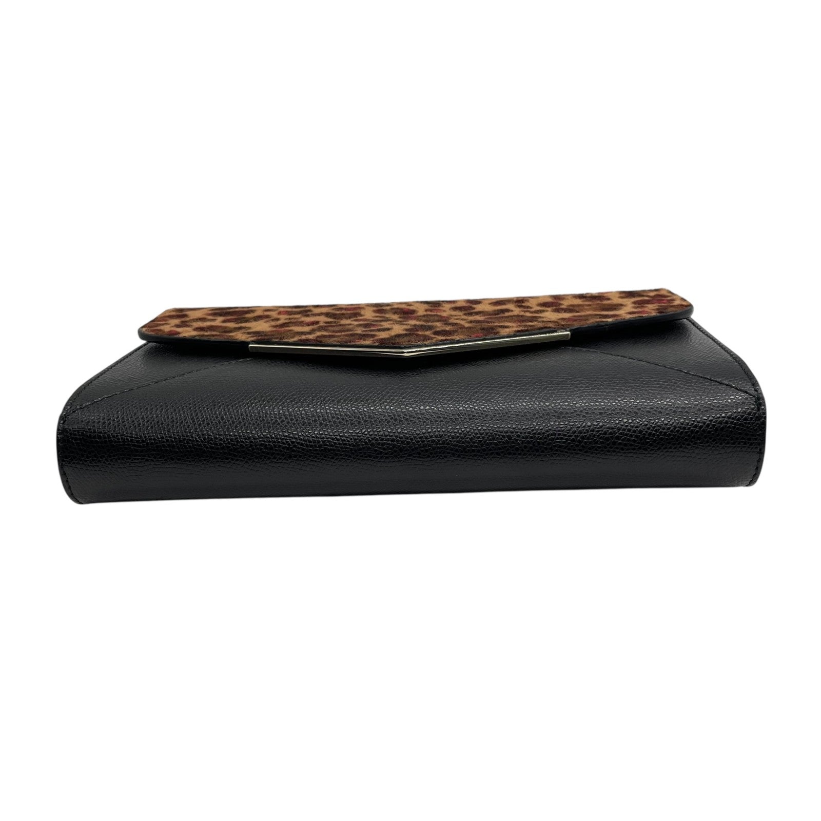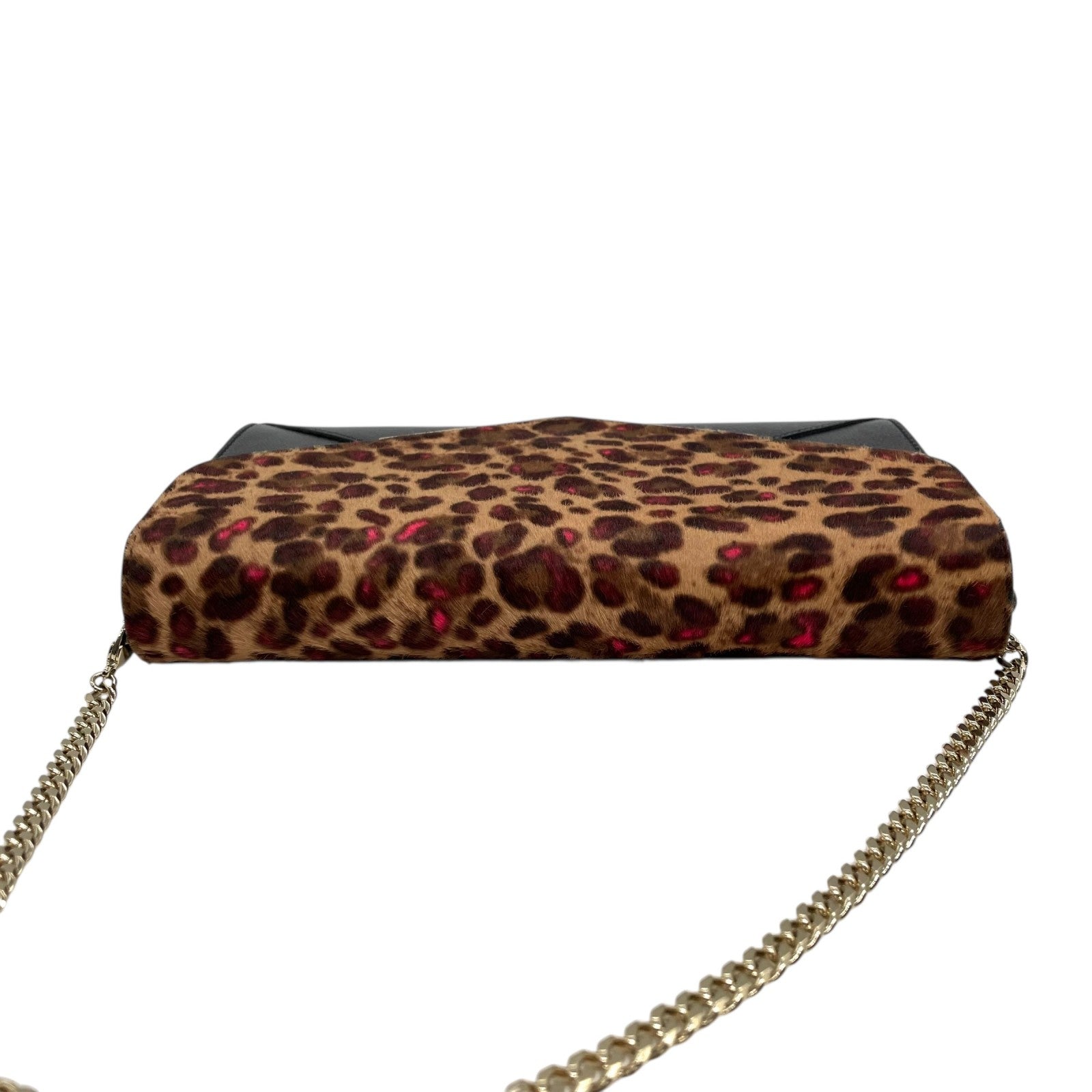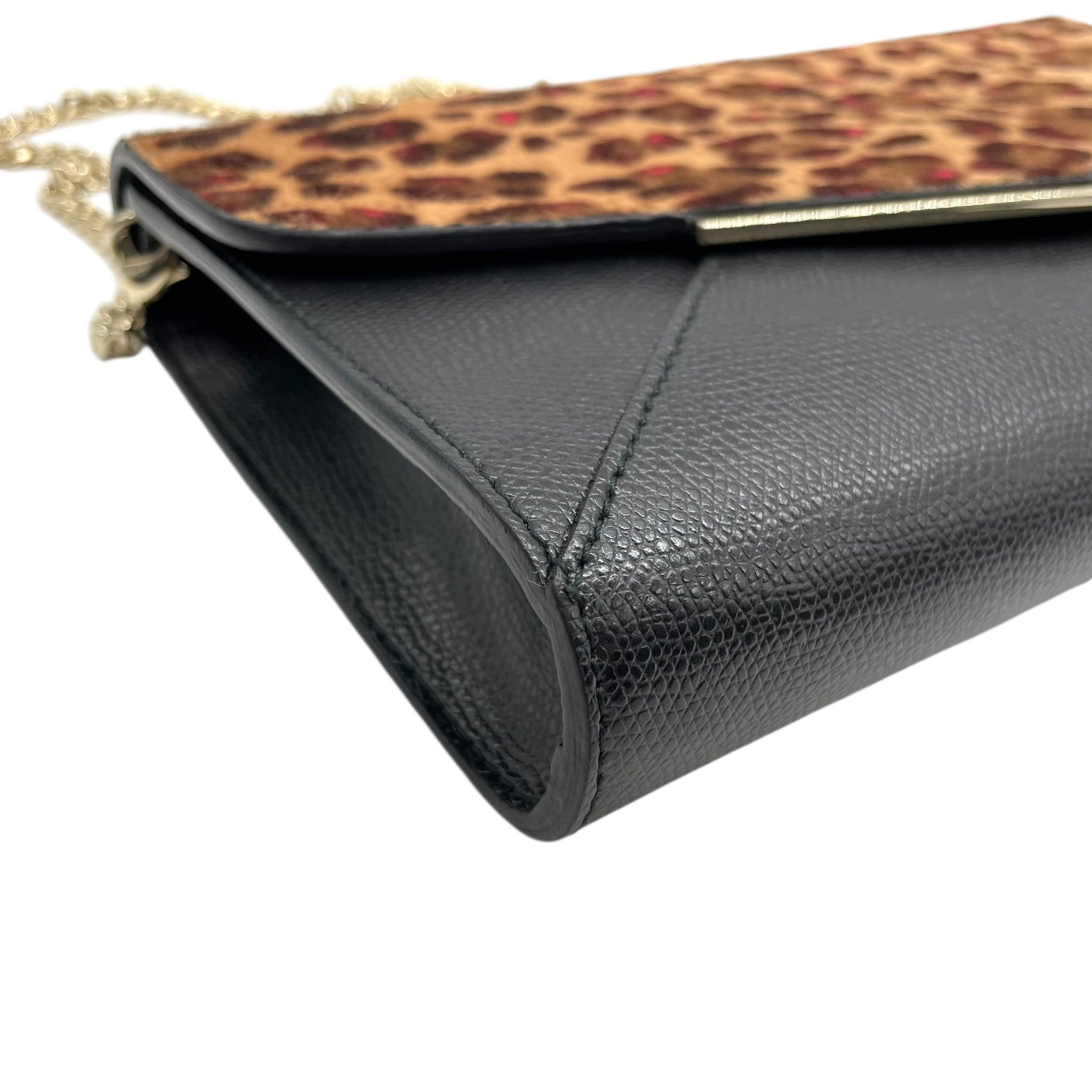美品 フルラ FURLA チェーンショルダーバッグ チェーンショルダー クラッチバッグ 2WAY レオパード柄 黒 ブラック レザー 型押し 金金具 ゴールド金具 上品 クラッチ S52