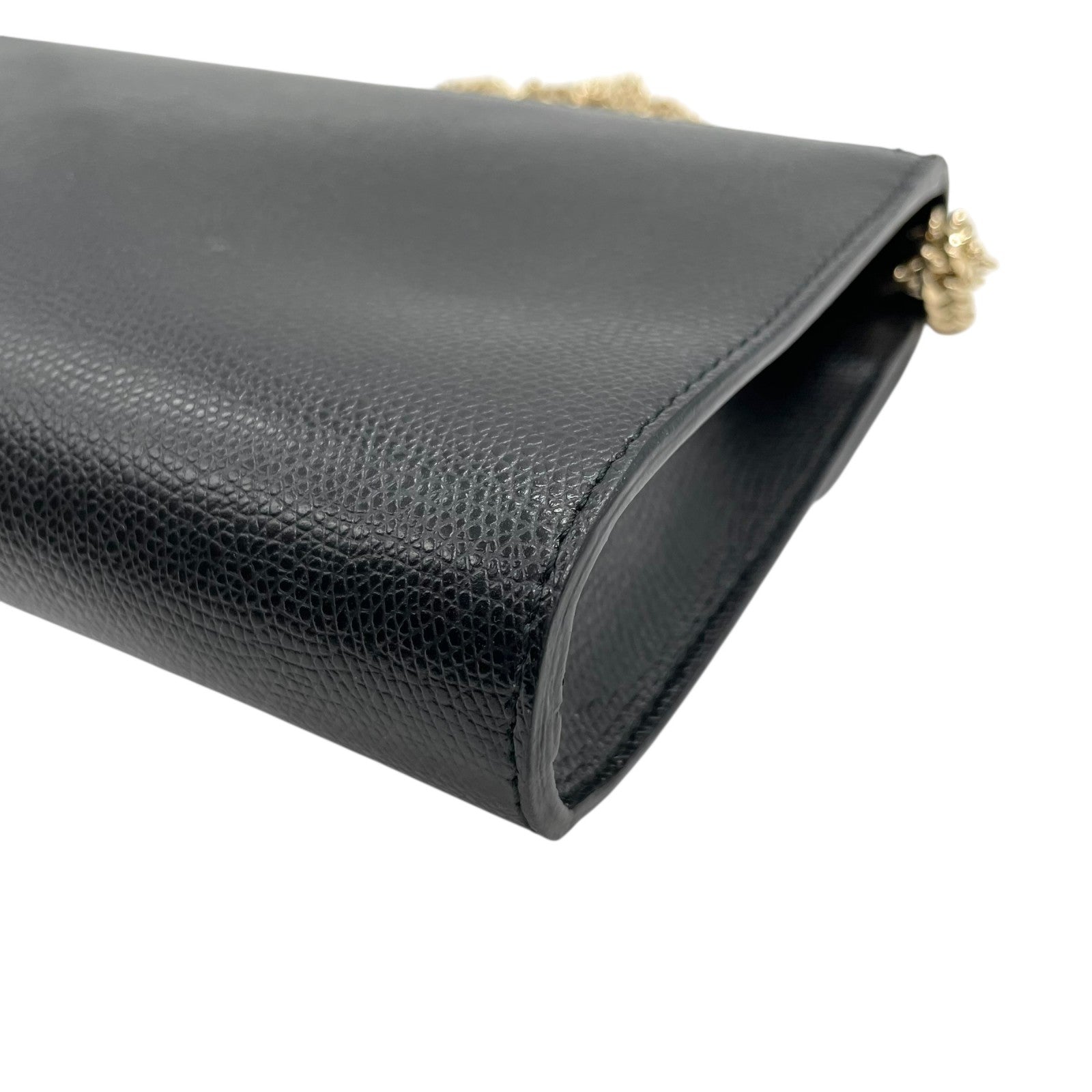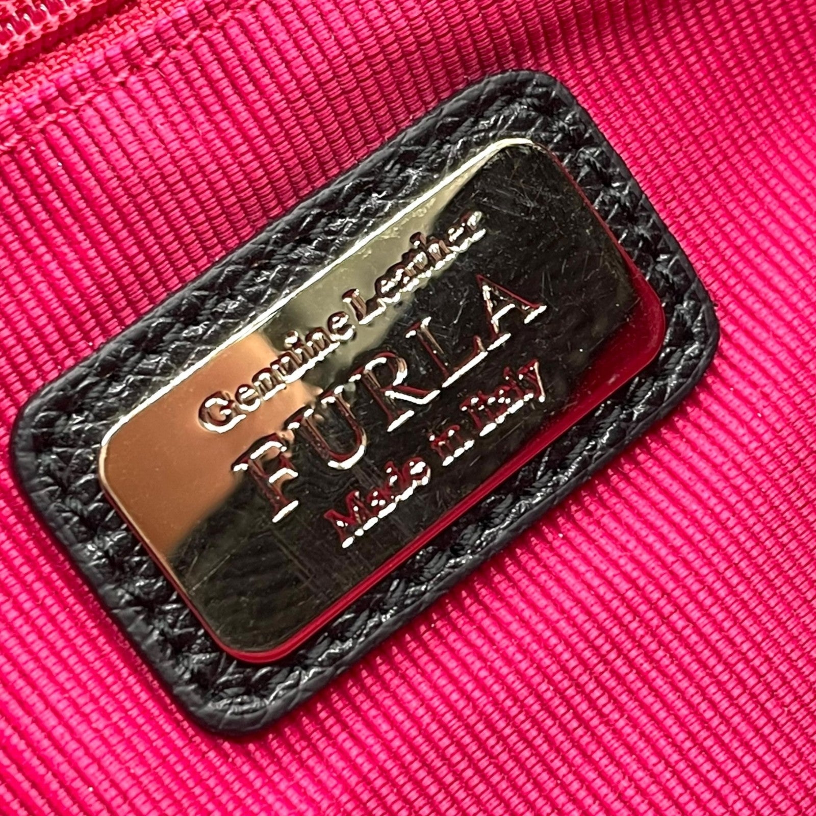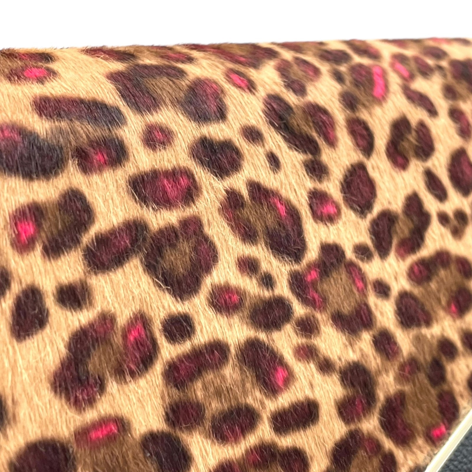 美品 フルラ FURLA チェーンショルダーバッグ チェーンショルダー クラッチバッグ 2WAY レオパード柄 黒 ブラック レザー 型押し 金金具 ゴールド金具 上品 クラッチ S52