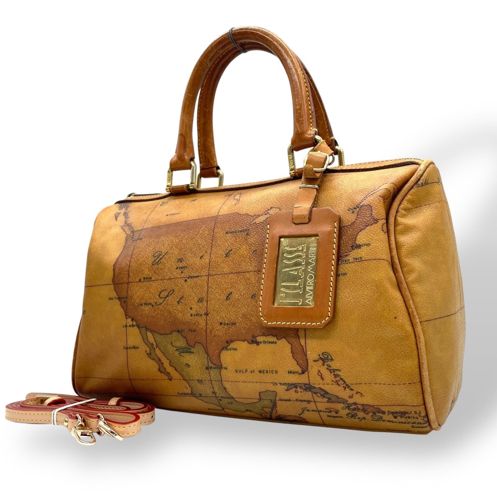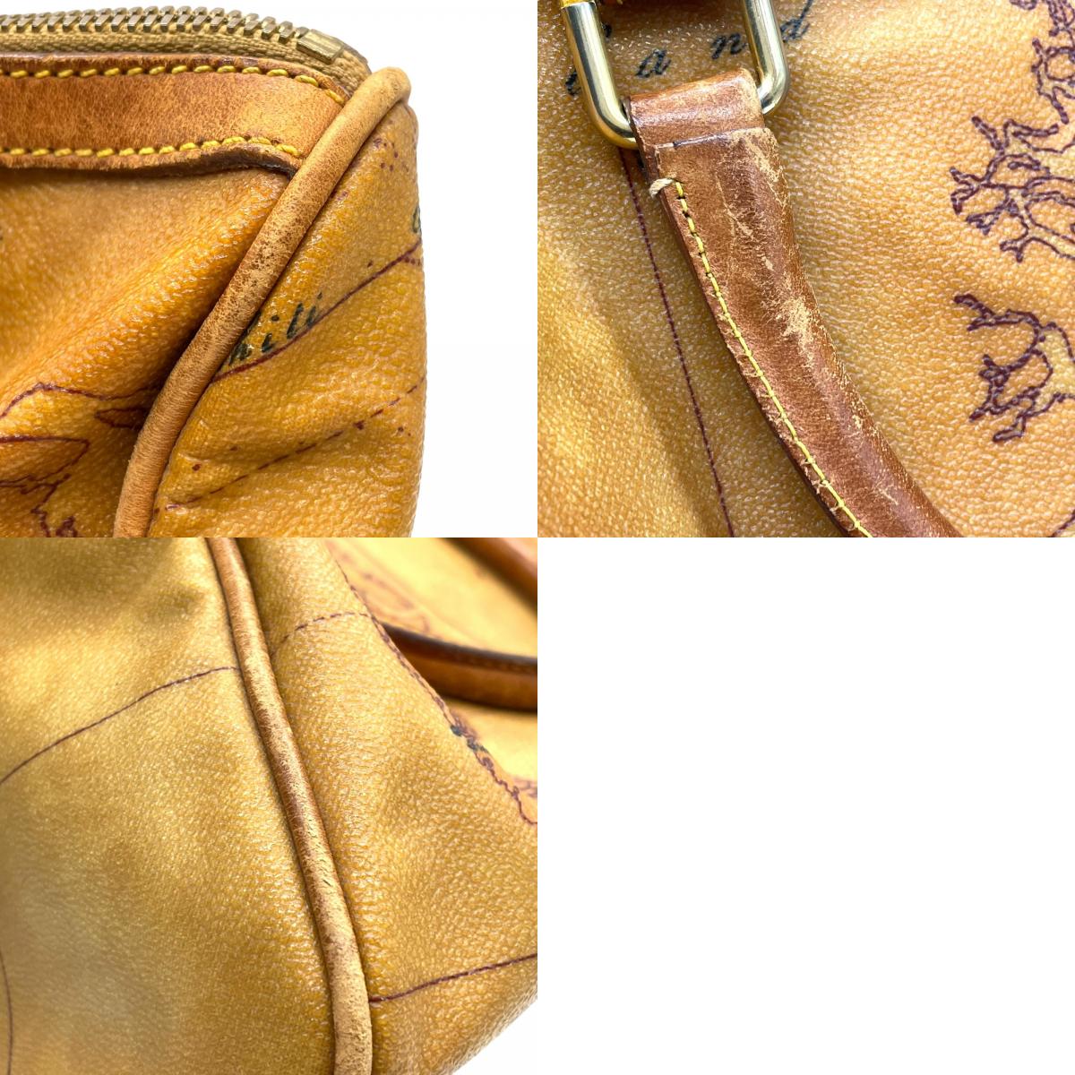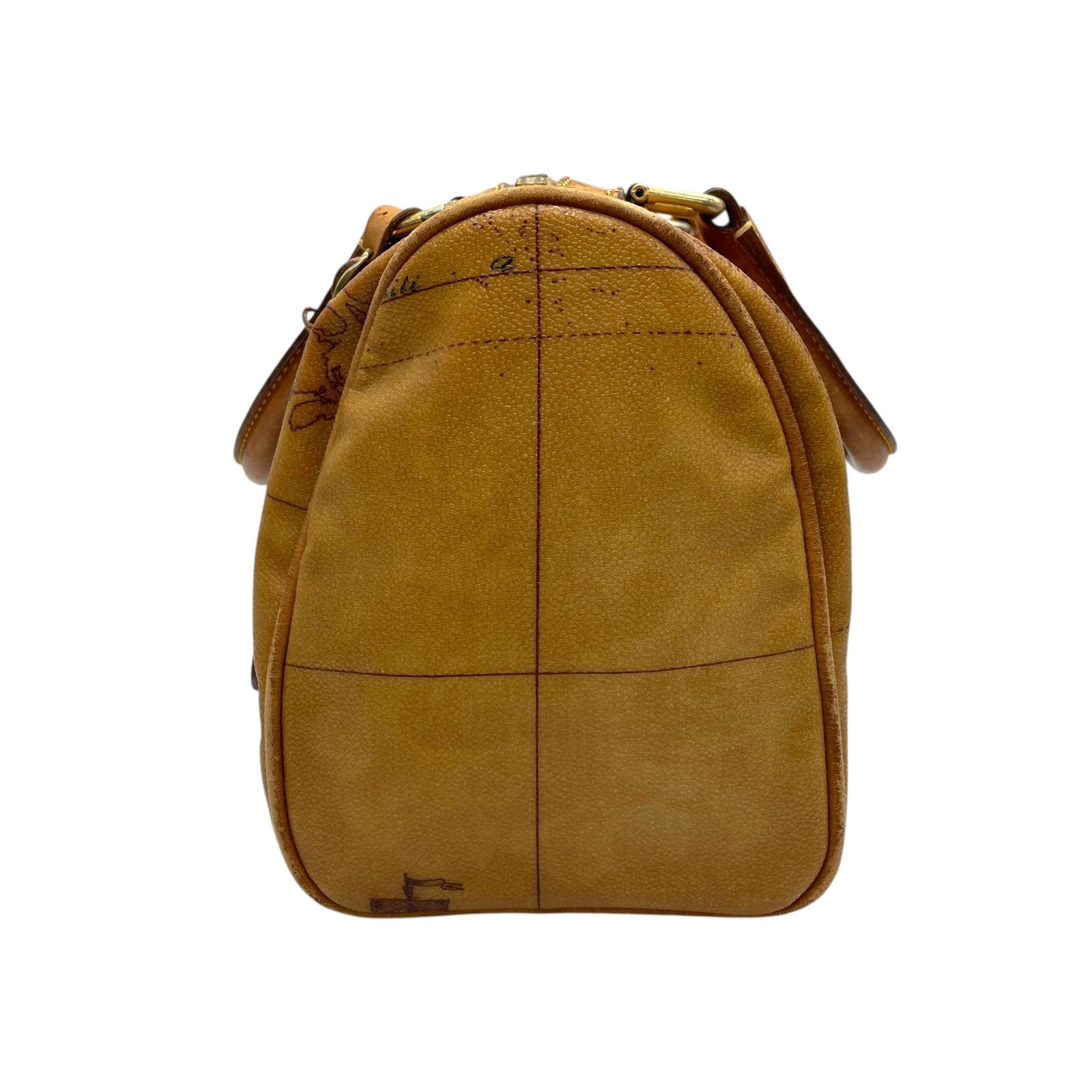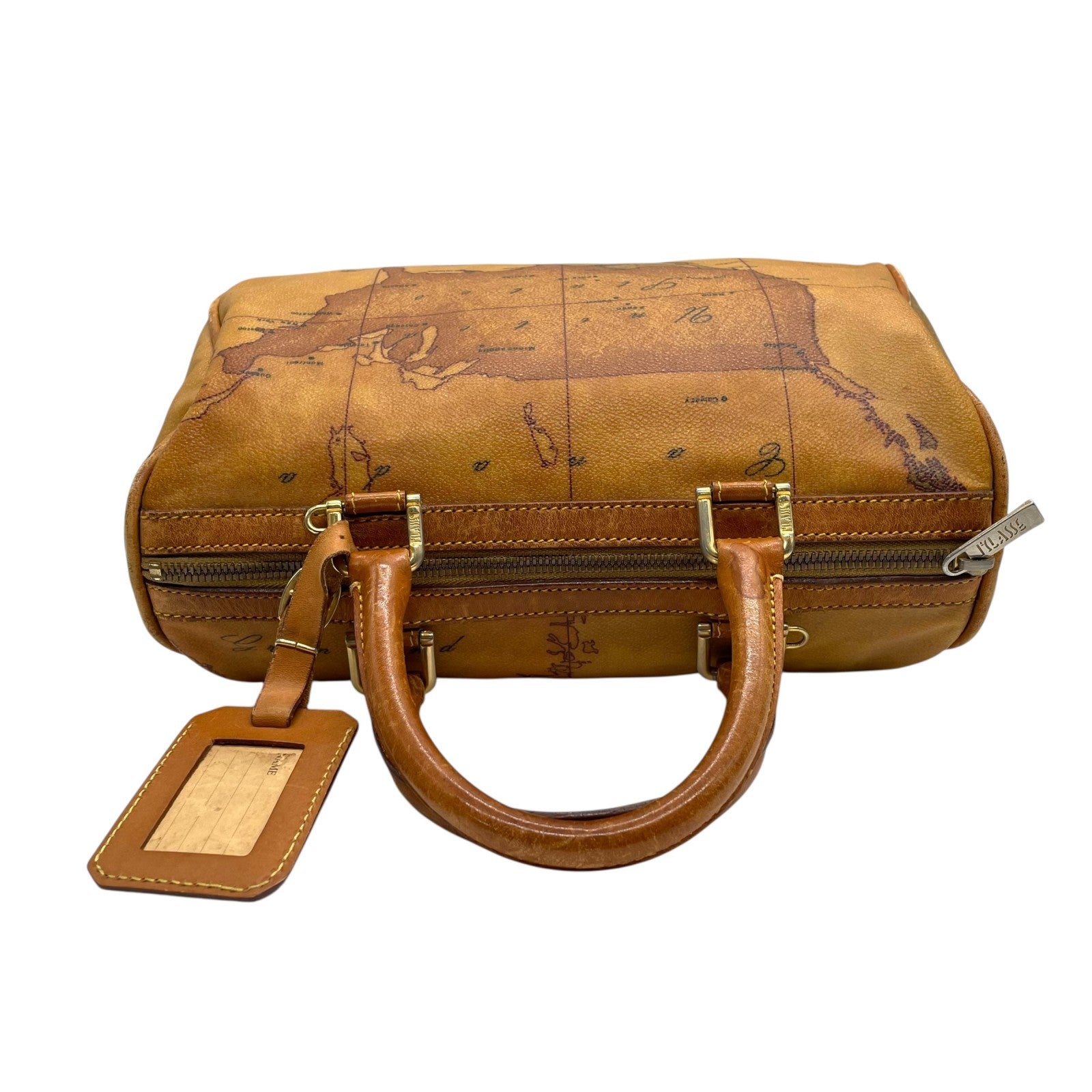 プリマクラッセ PRIMA CLASSE 地図柄 ボストンバッグ ミニボストン 2WAY PVC レザー ショルダー付き 茶色 ブラウン T4