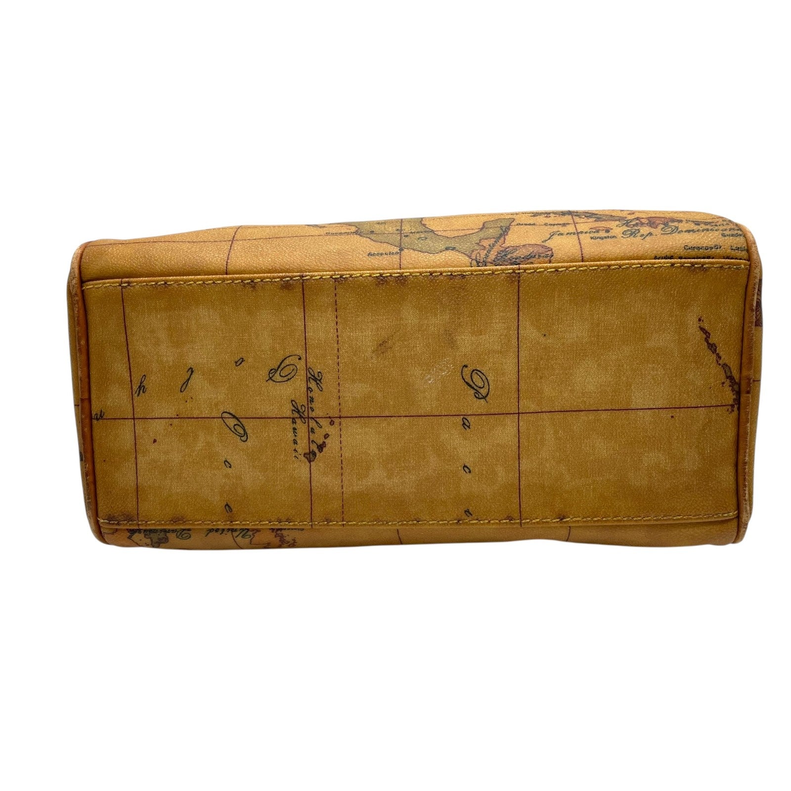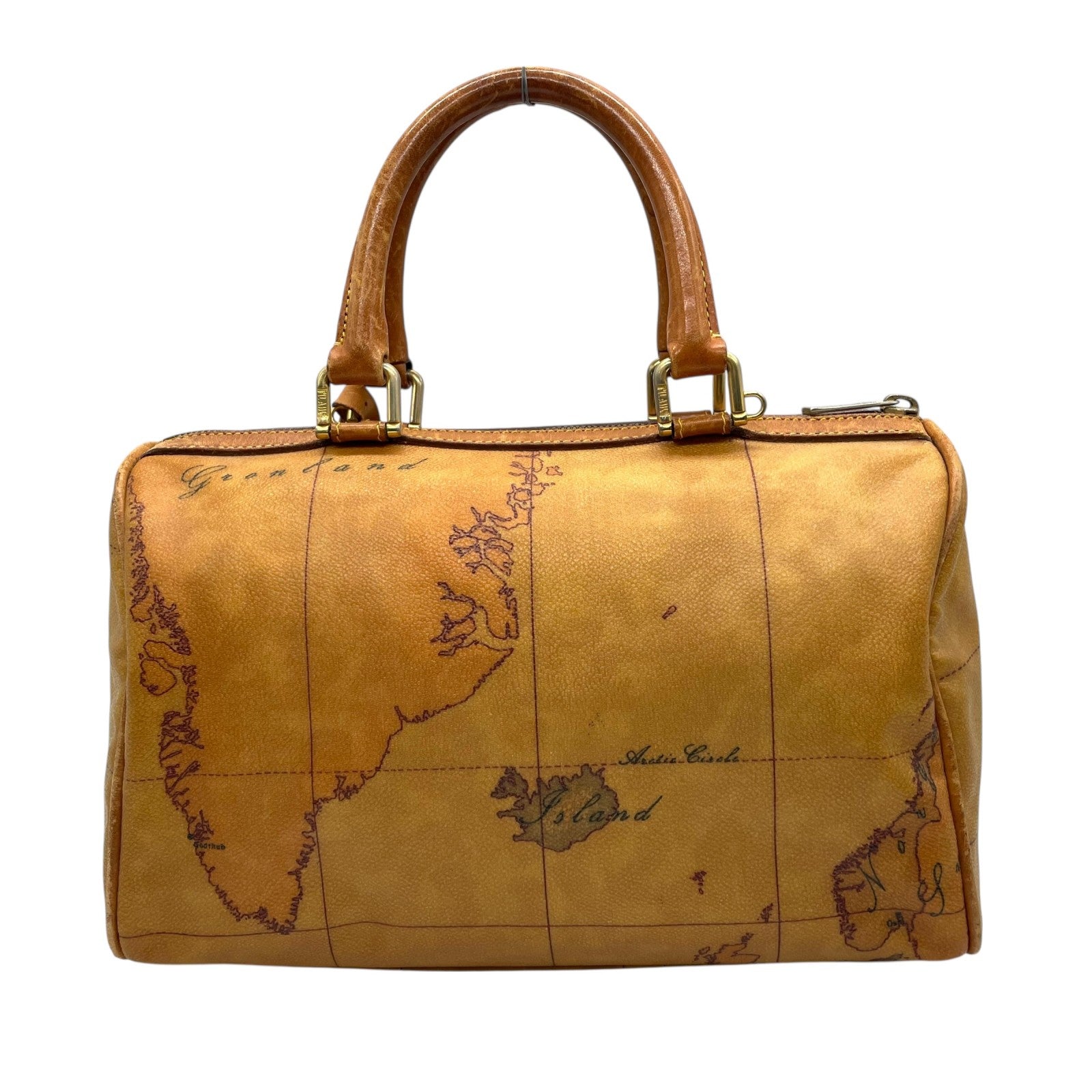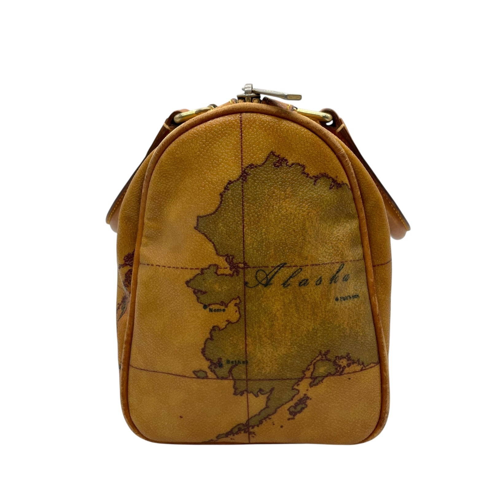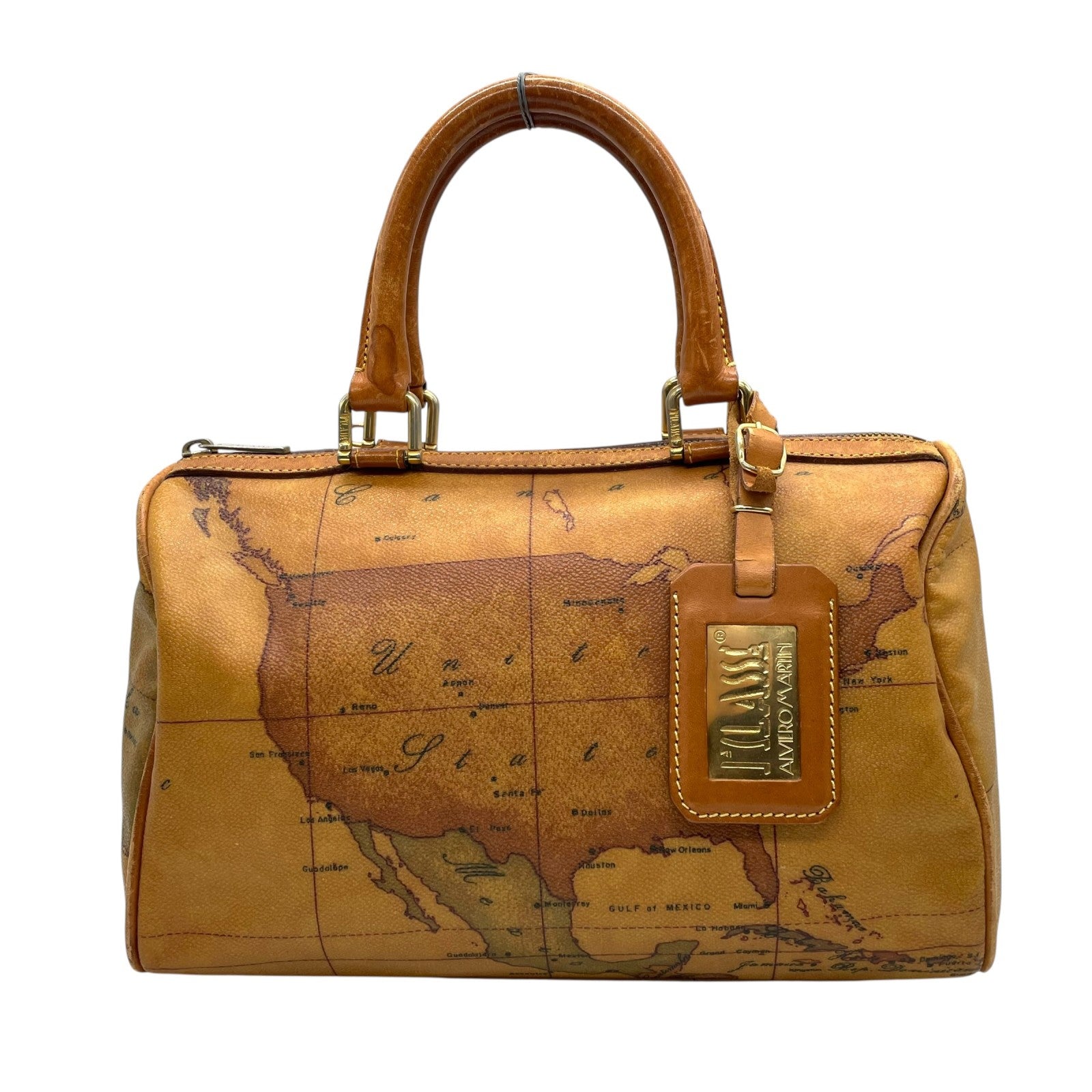 プリマクラッセ PRIMA CLASSE 地図柄 ボストンバッグ ミニボストン 2WAY PVC レザー ショルダー付き 茶色 ブラウン T4