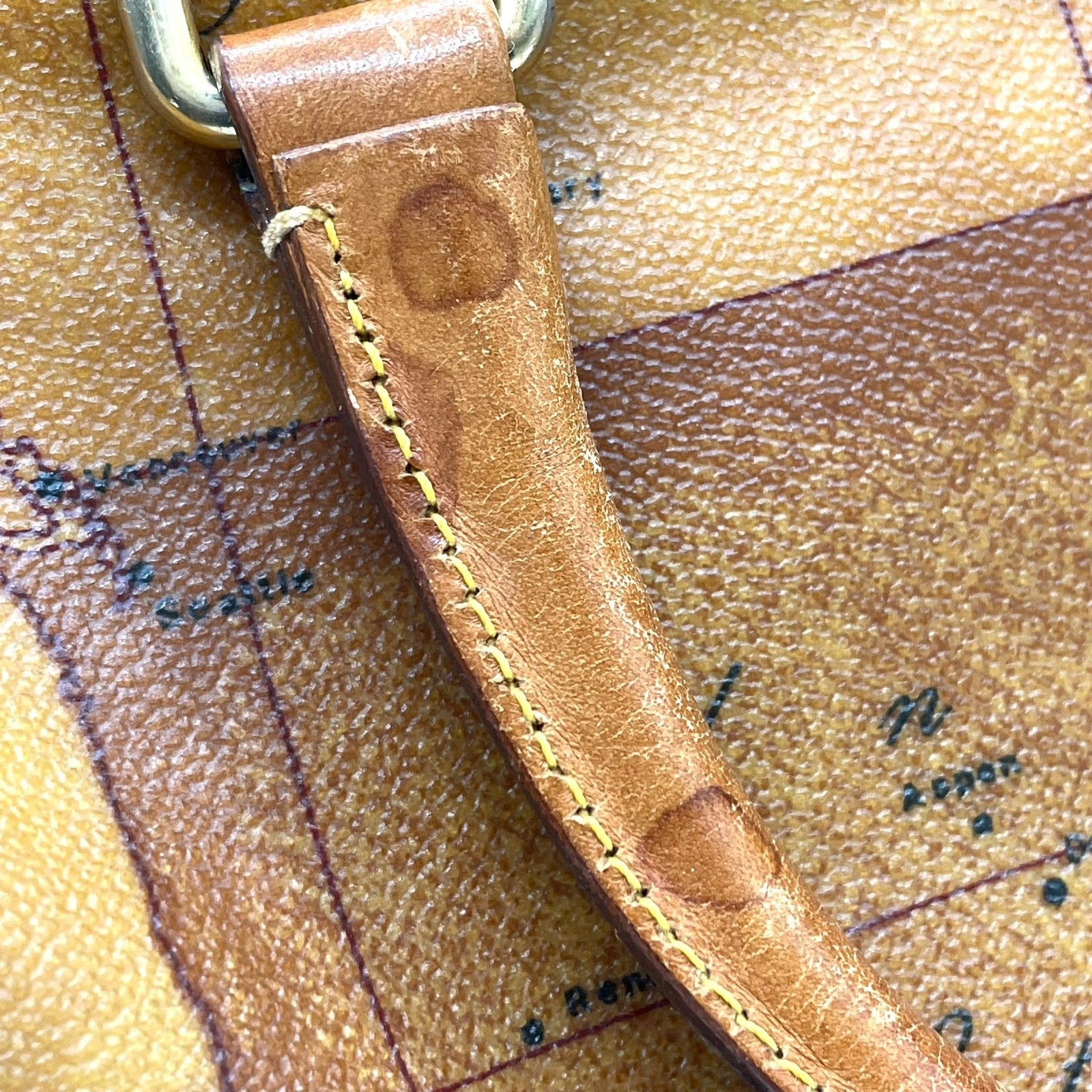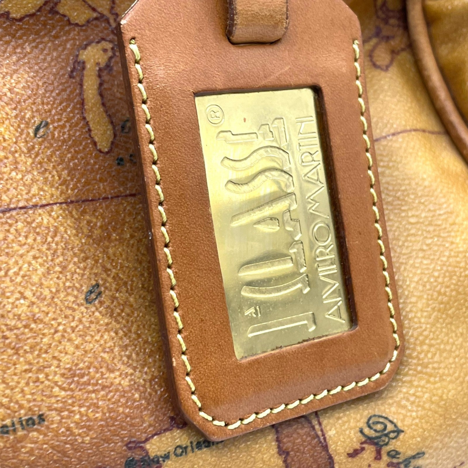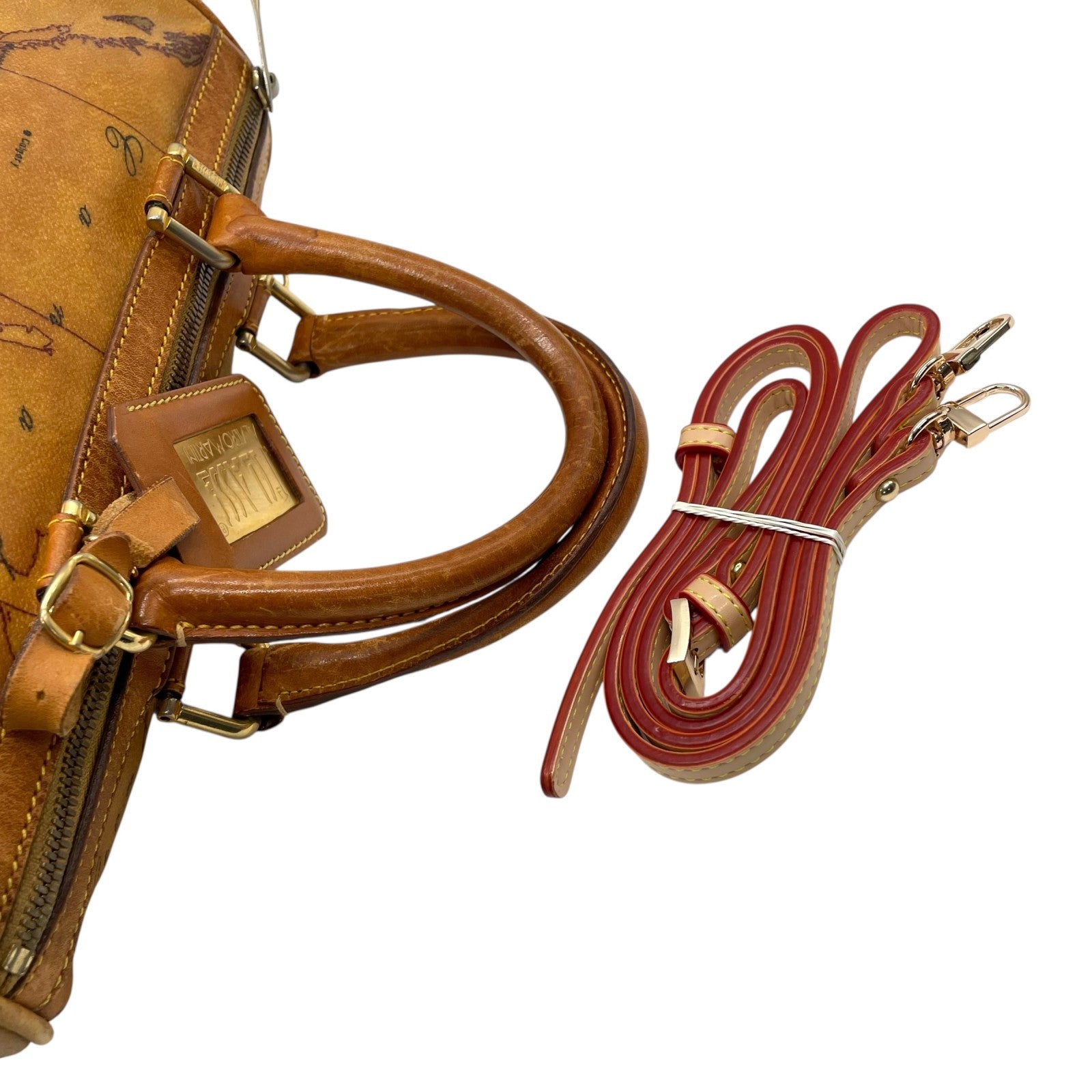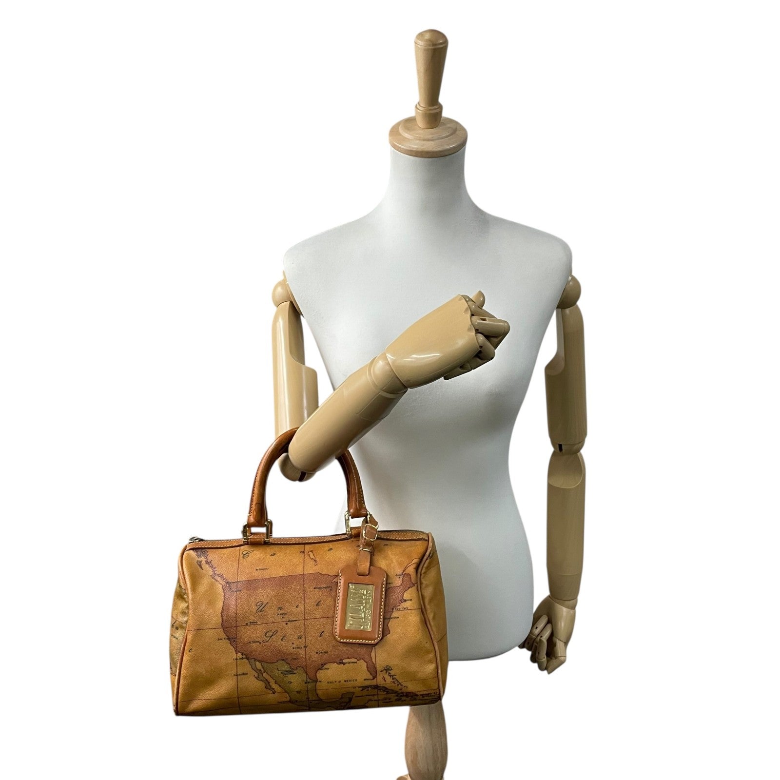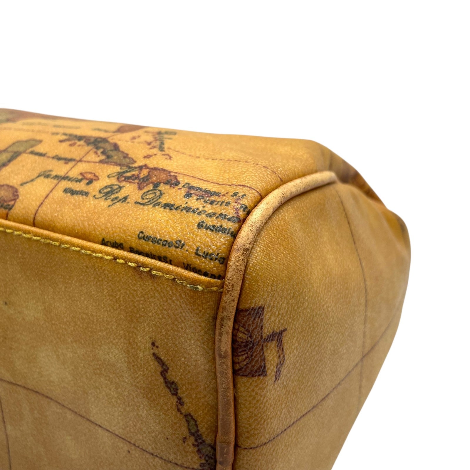 プリマクラッセ PRIMA CLASSE 地図柄 ボストンバッグ ミニボストン 2WAY PVC レザー ショルダー付き 茶色 ブラウン T4