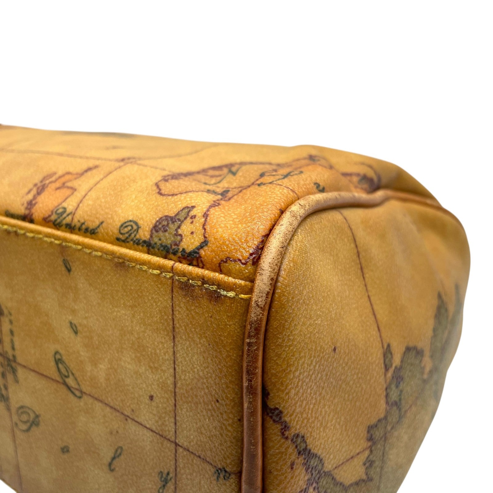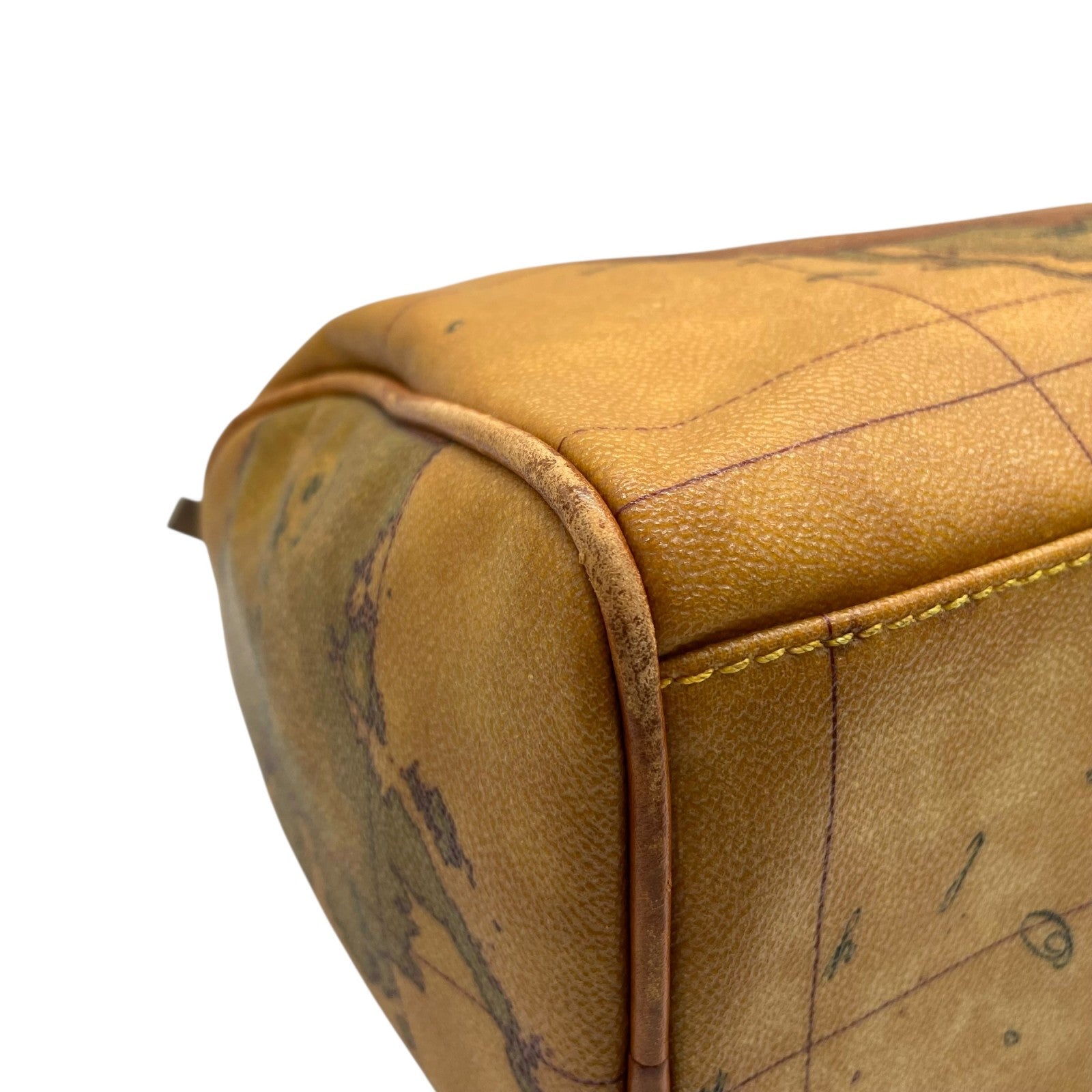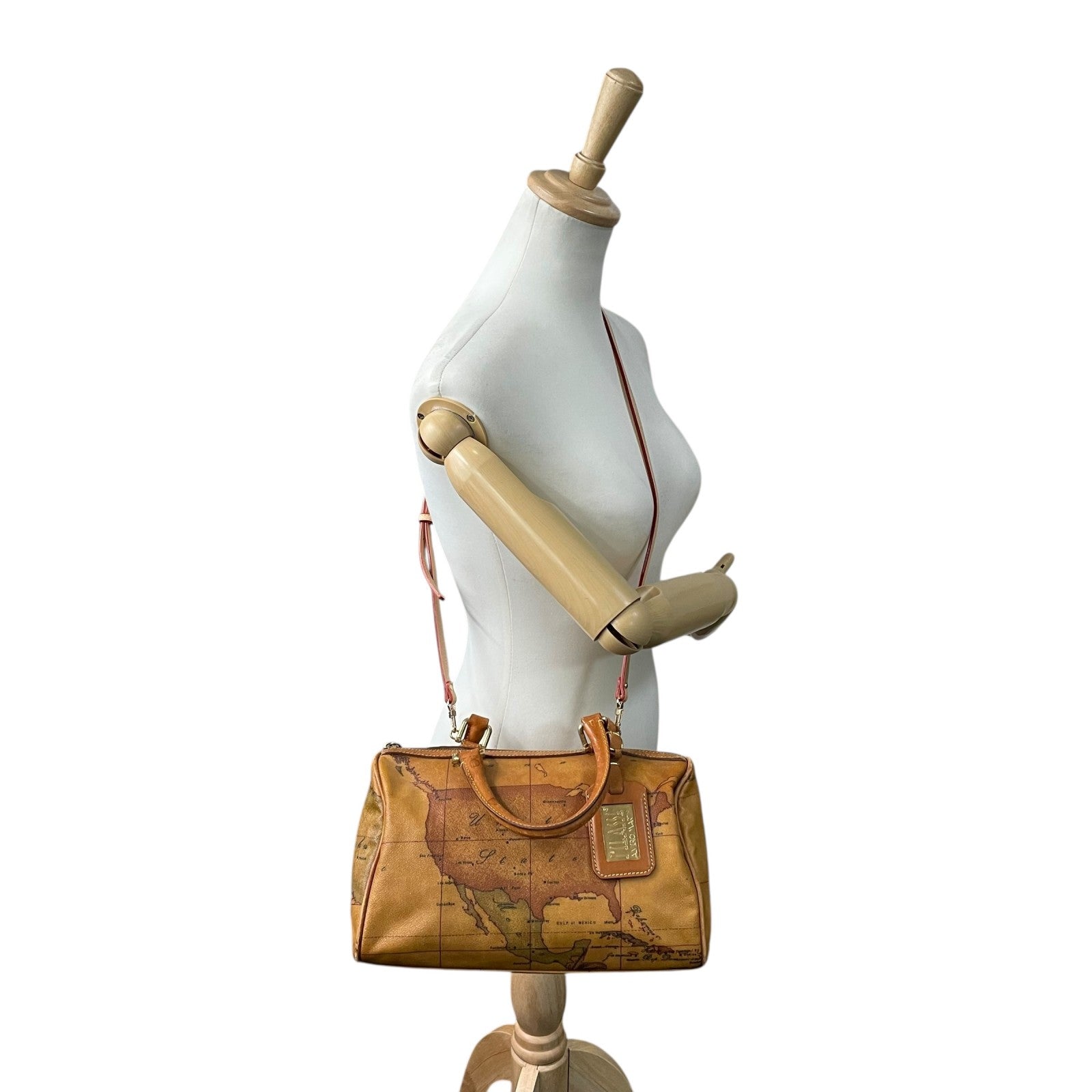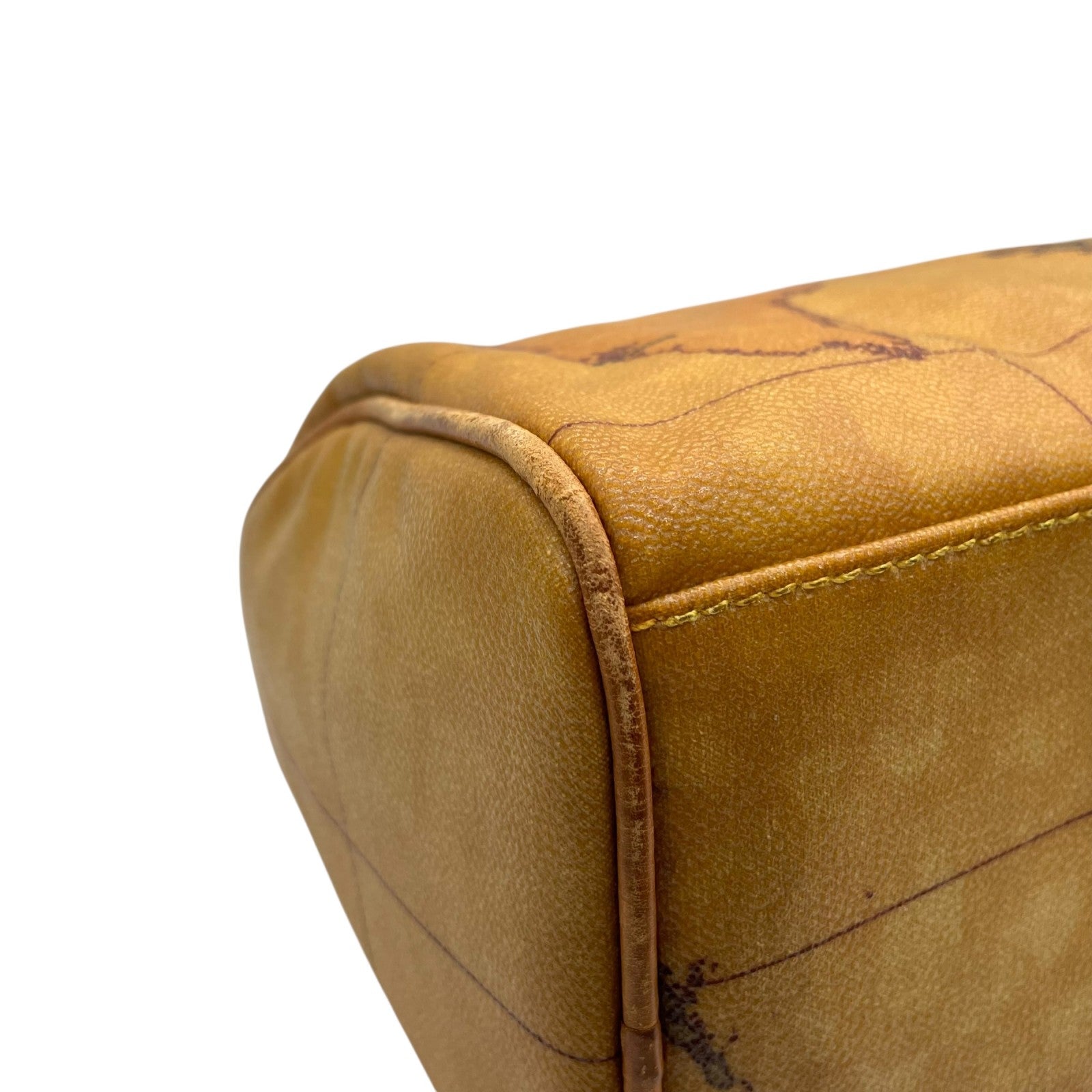 プリマクラッセ PRIMA CLASSE 地図柄 ボストンバッグ ミニボストン 2WAY PVC レザー ショルダー付き 茶色 ブラウン T4