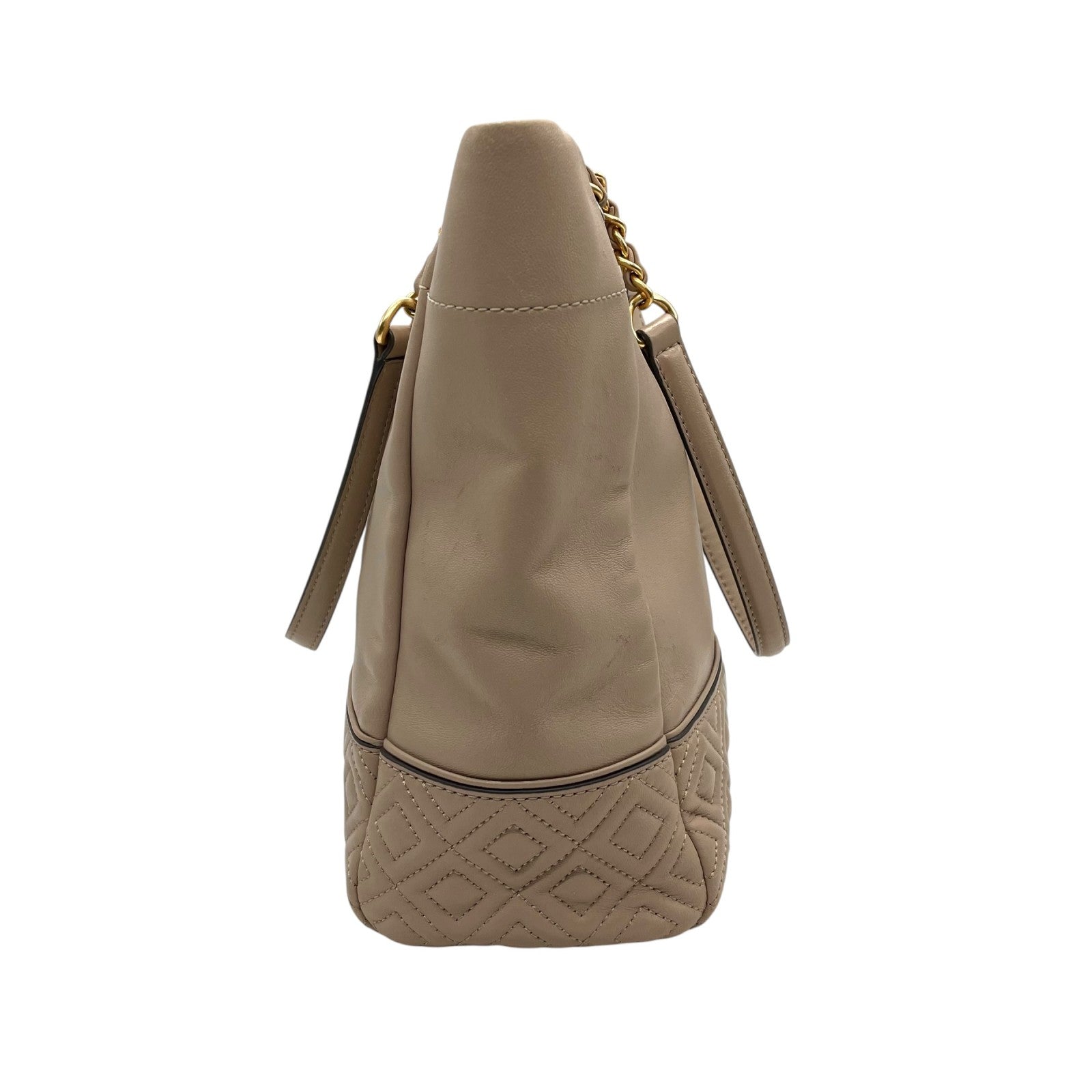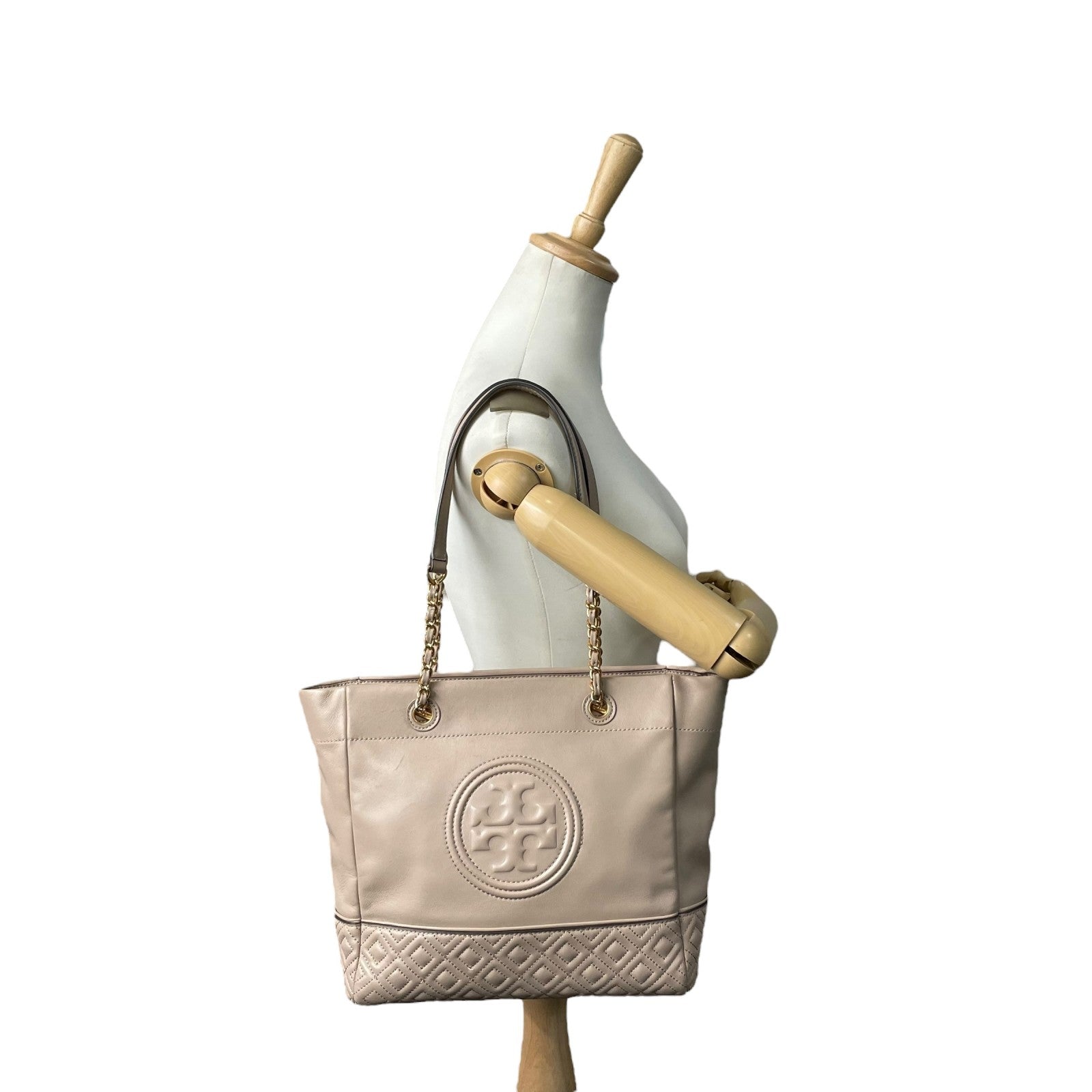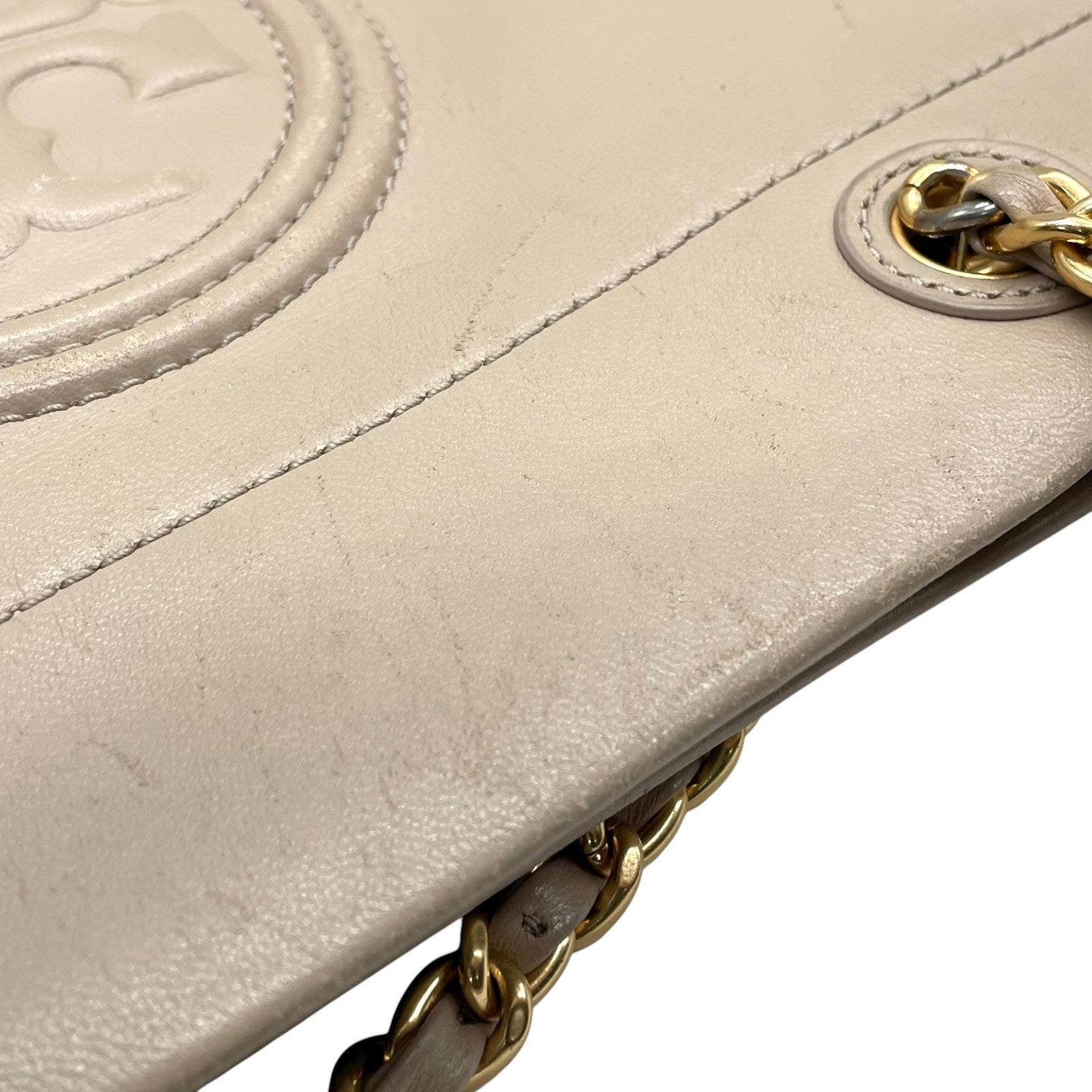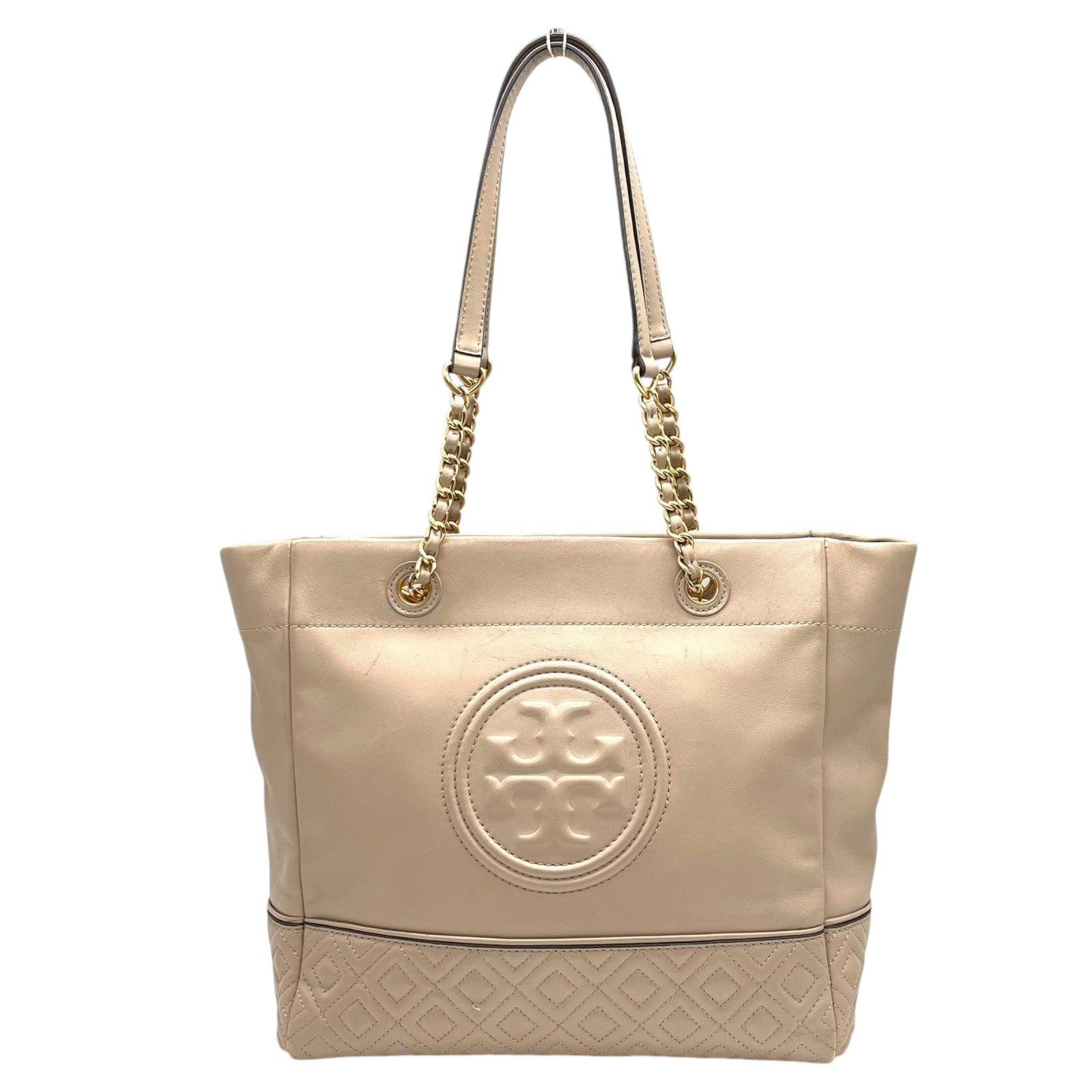 トリーバーチ TORY BURCH レザー トートバッグ チェーンショルダー ベージュ ロゴ エンボス 高級感 E10