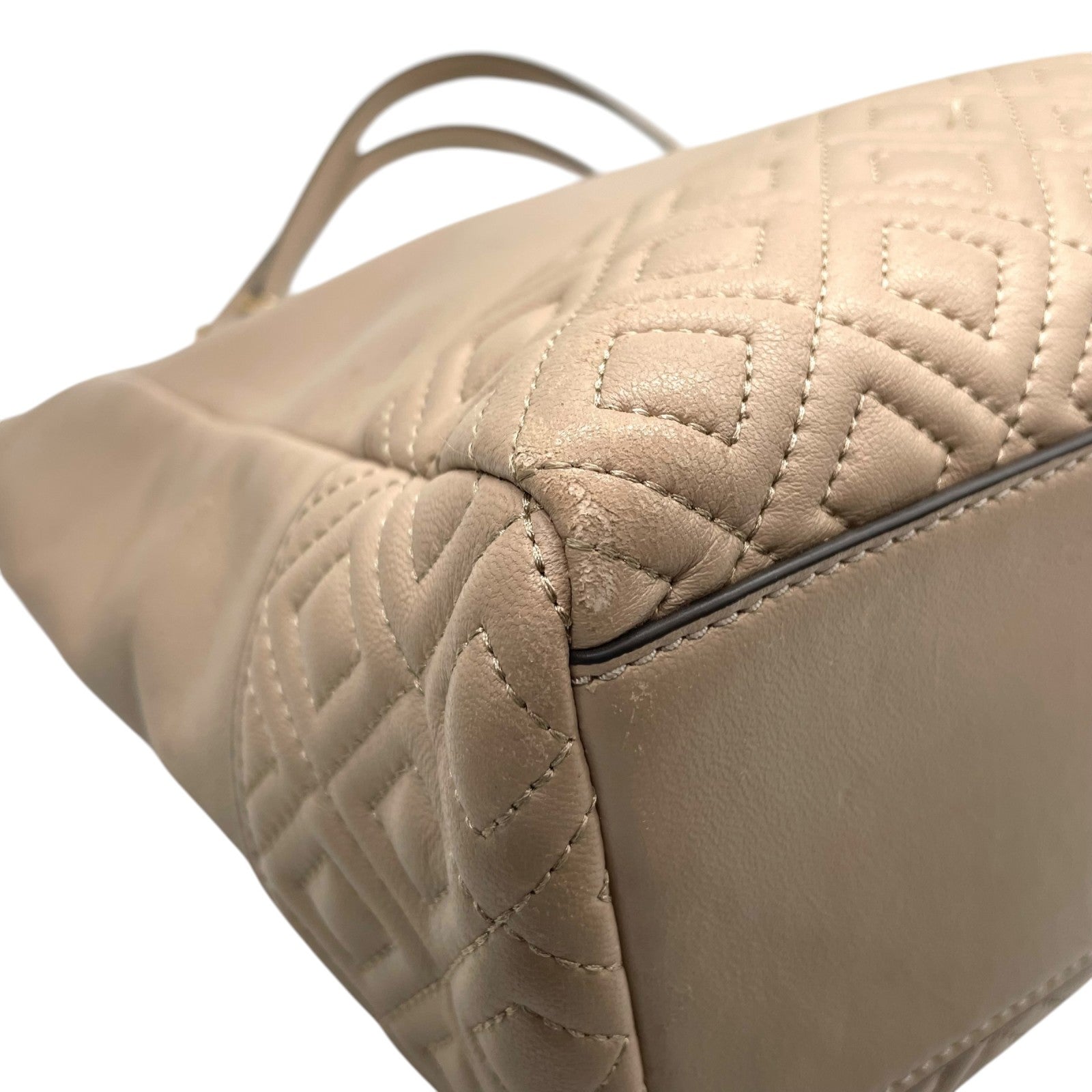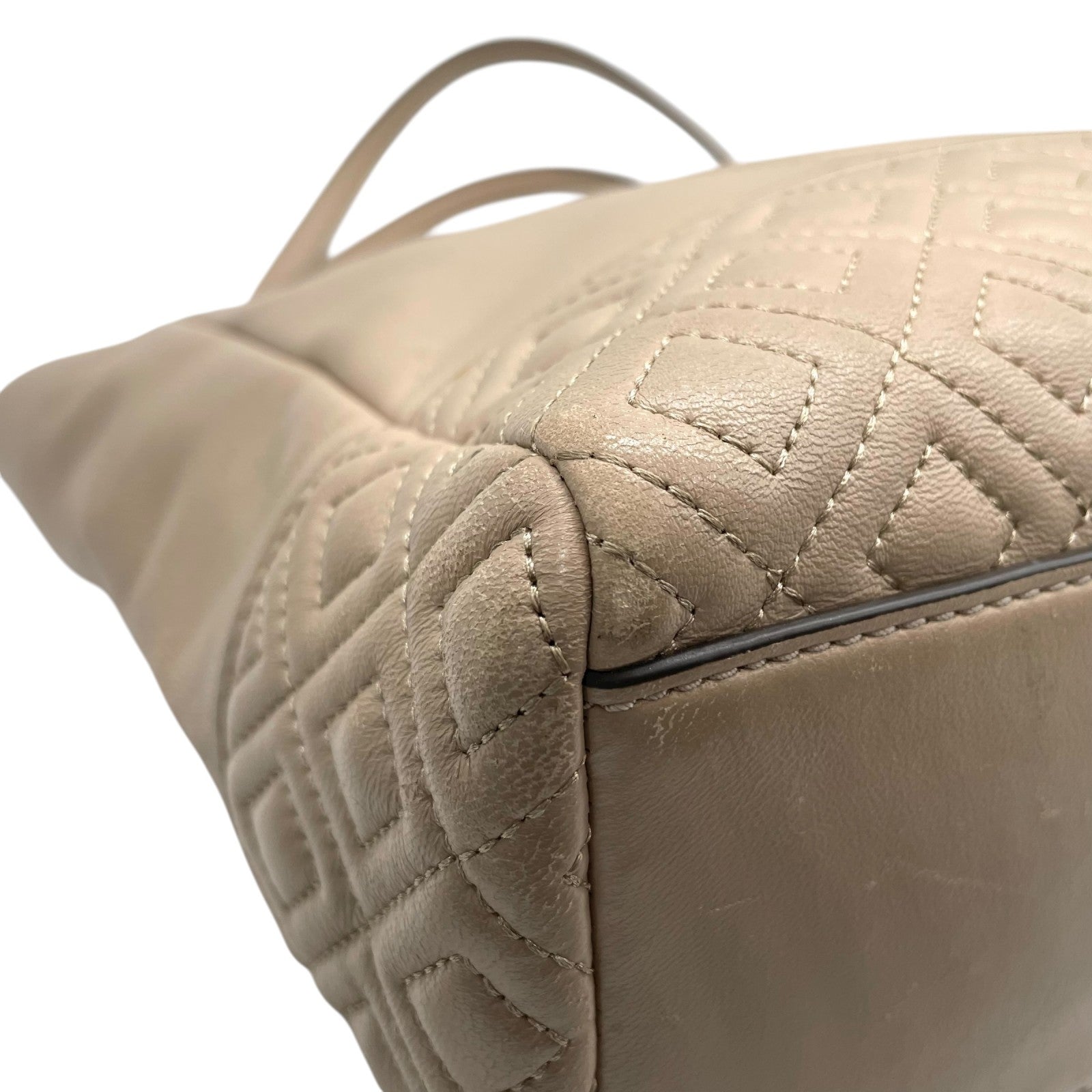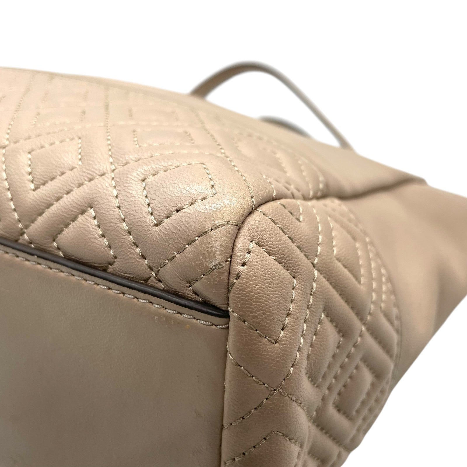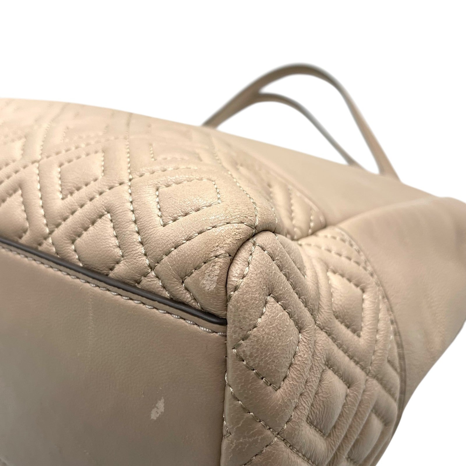 トリーバーチ TORY BURCH レザー トートバッグ チェーンショルダー ベージュ ロゴ エンボス 高級感 E10