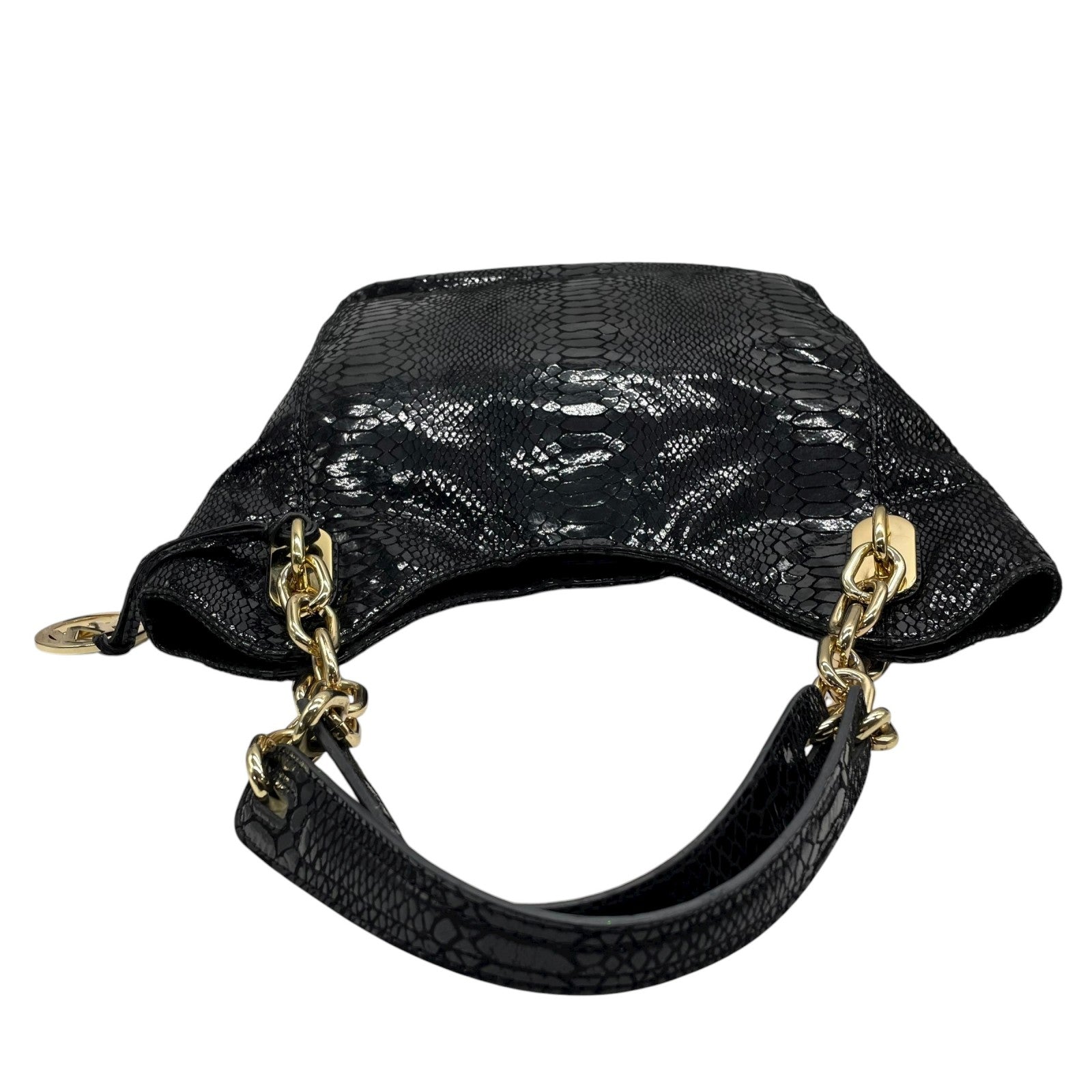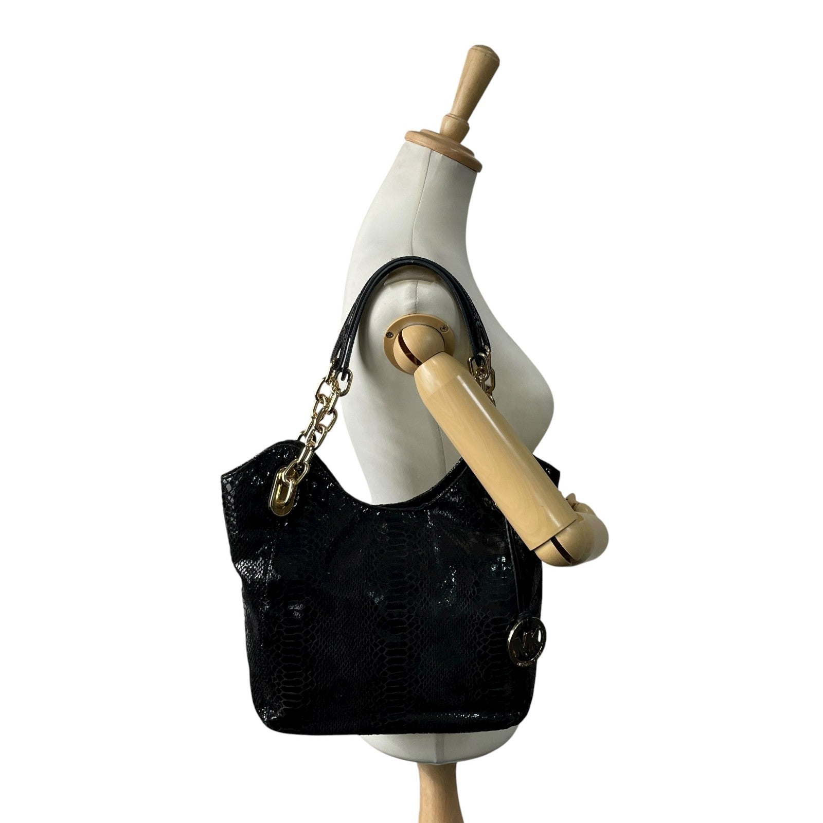 美品 マイケルコース MICHAEL KORS 型押し レザー トートバッグ ショルダー 肩掛け 黒 ブラック 金金具 ゴールド金具 C10