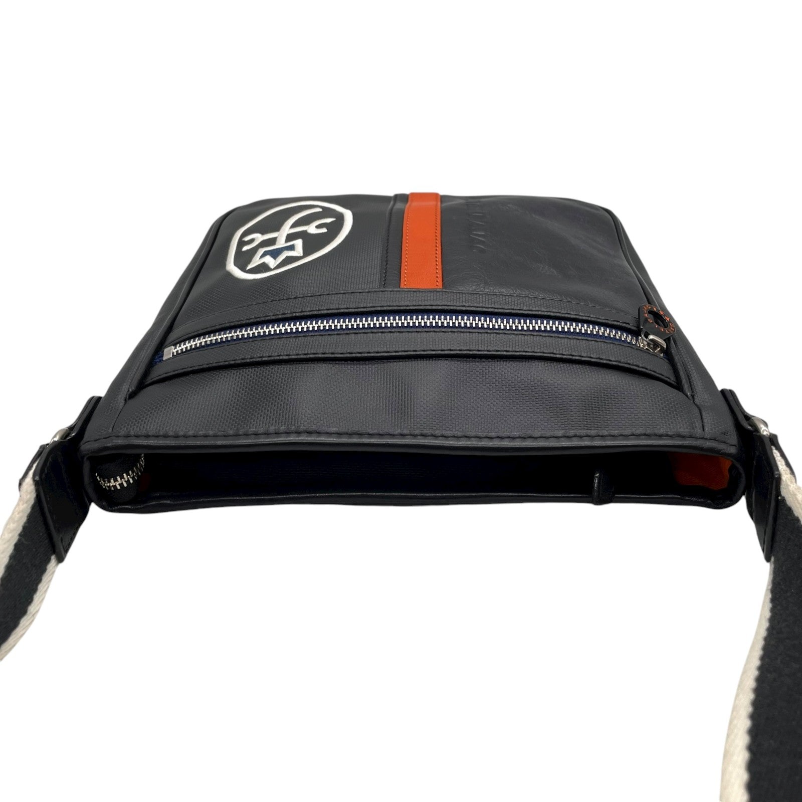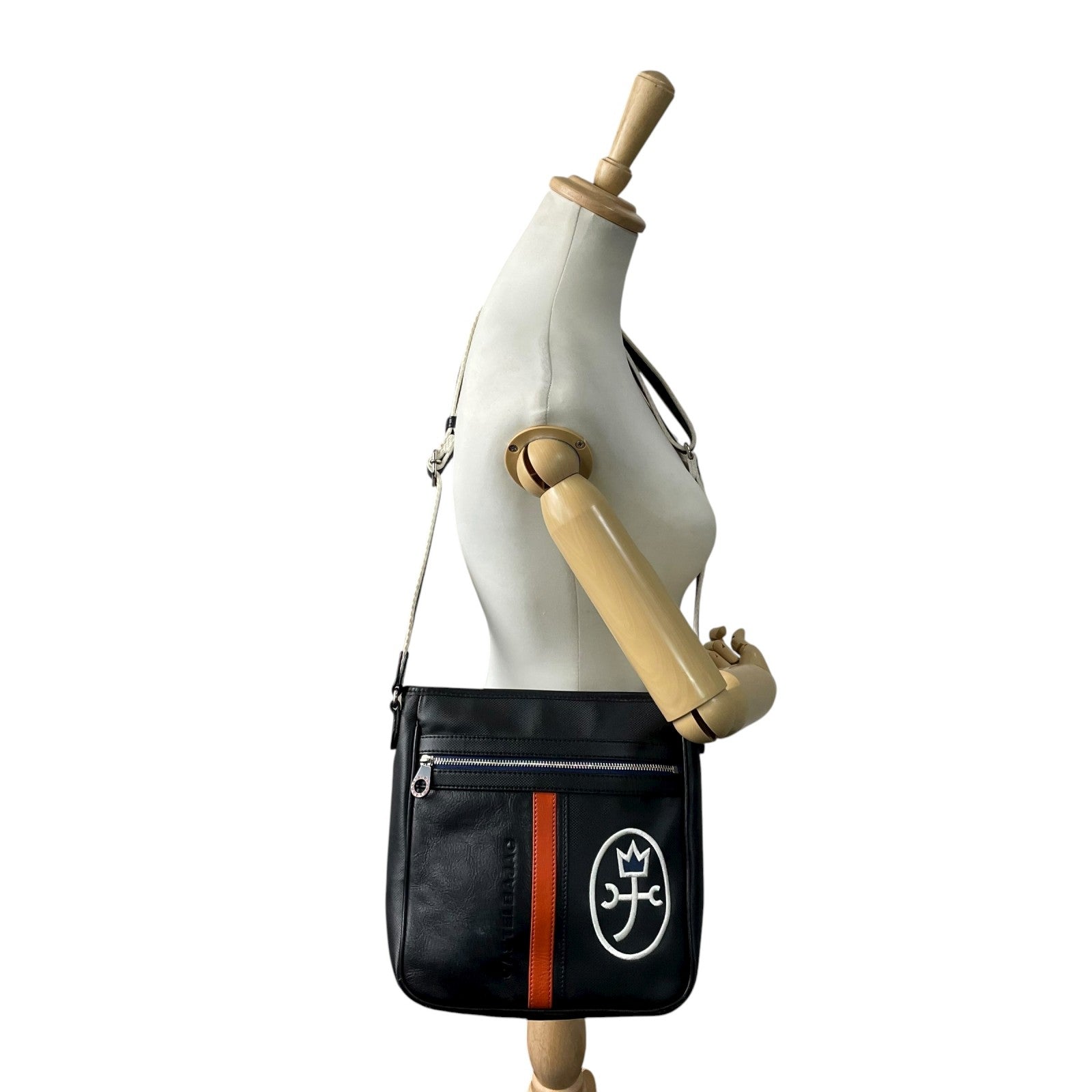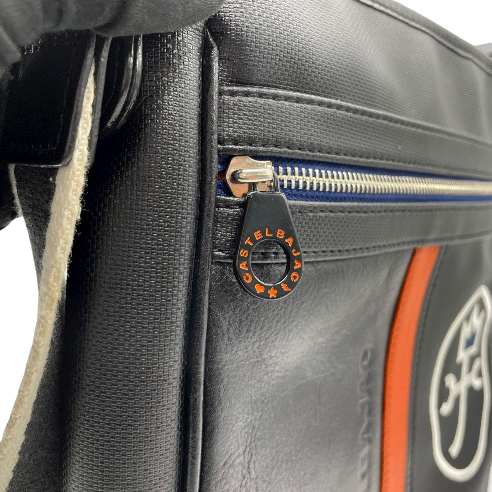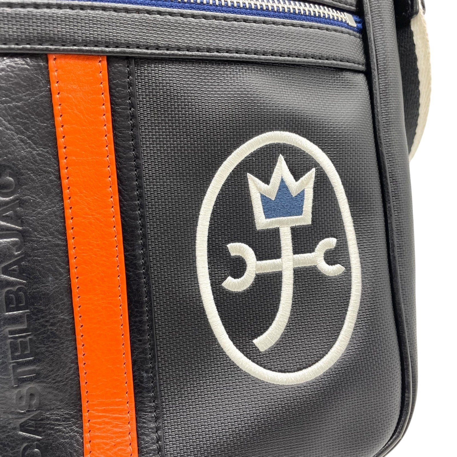 美品 カステルバジャック CASTELBAJAC ショルダーバッグ クロスボディ ロゴ刺繍 レザー ナイロン 黒 ブラック C11