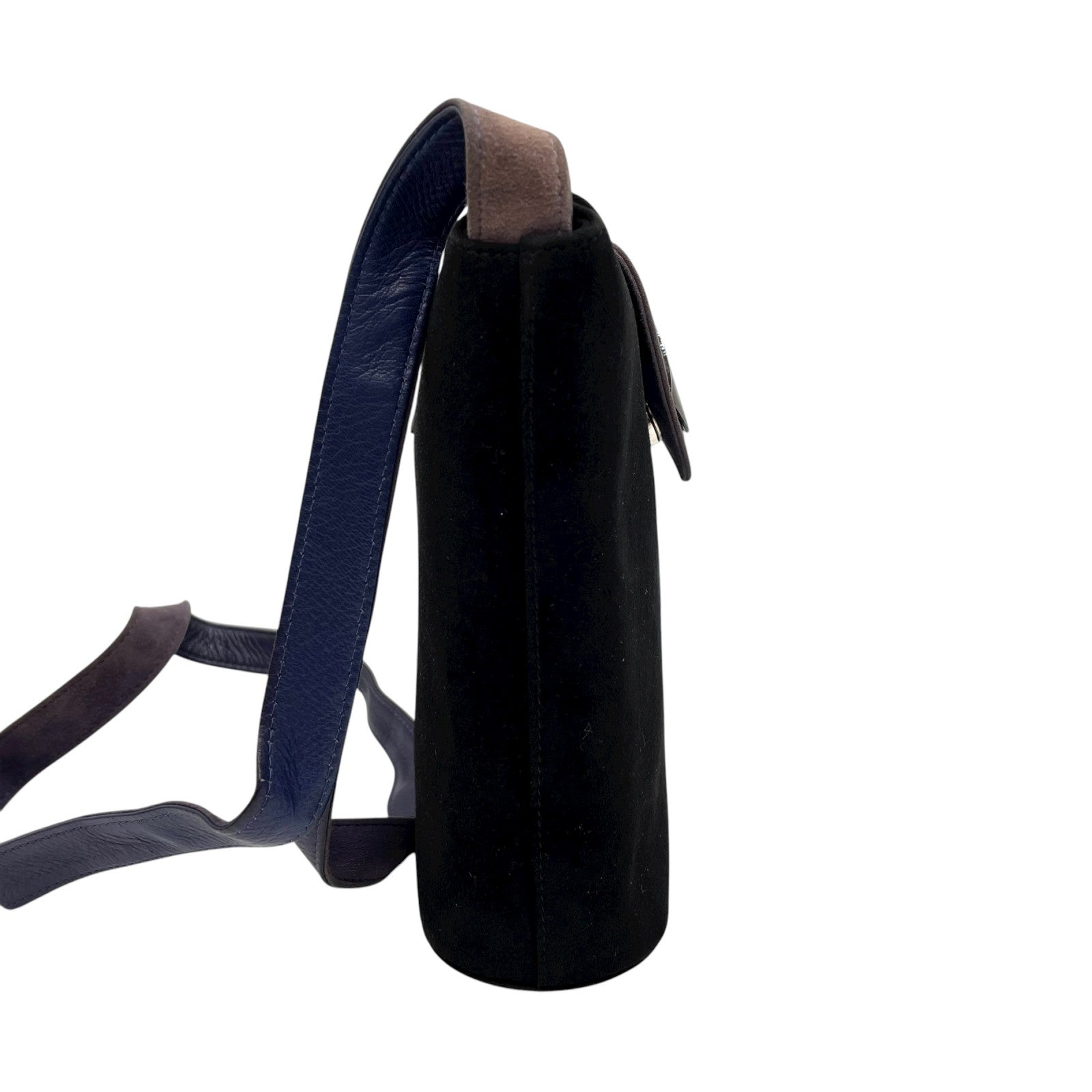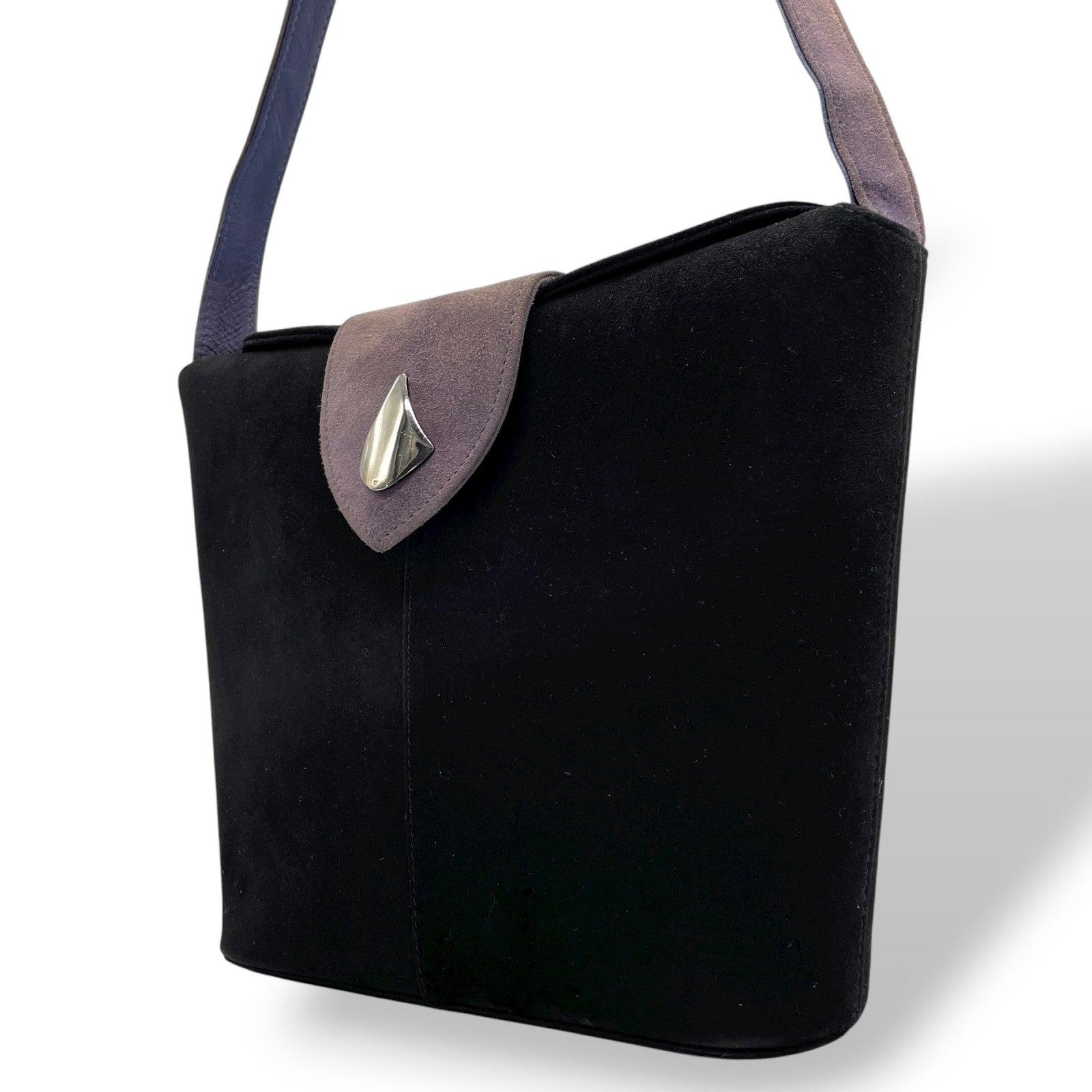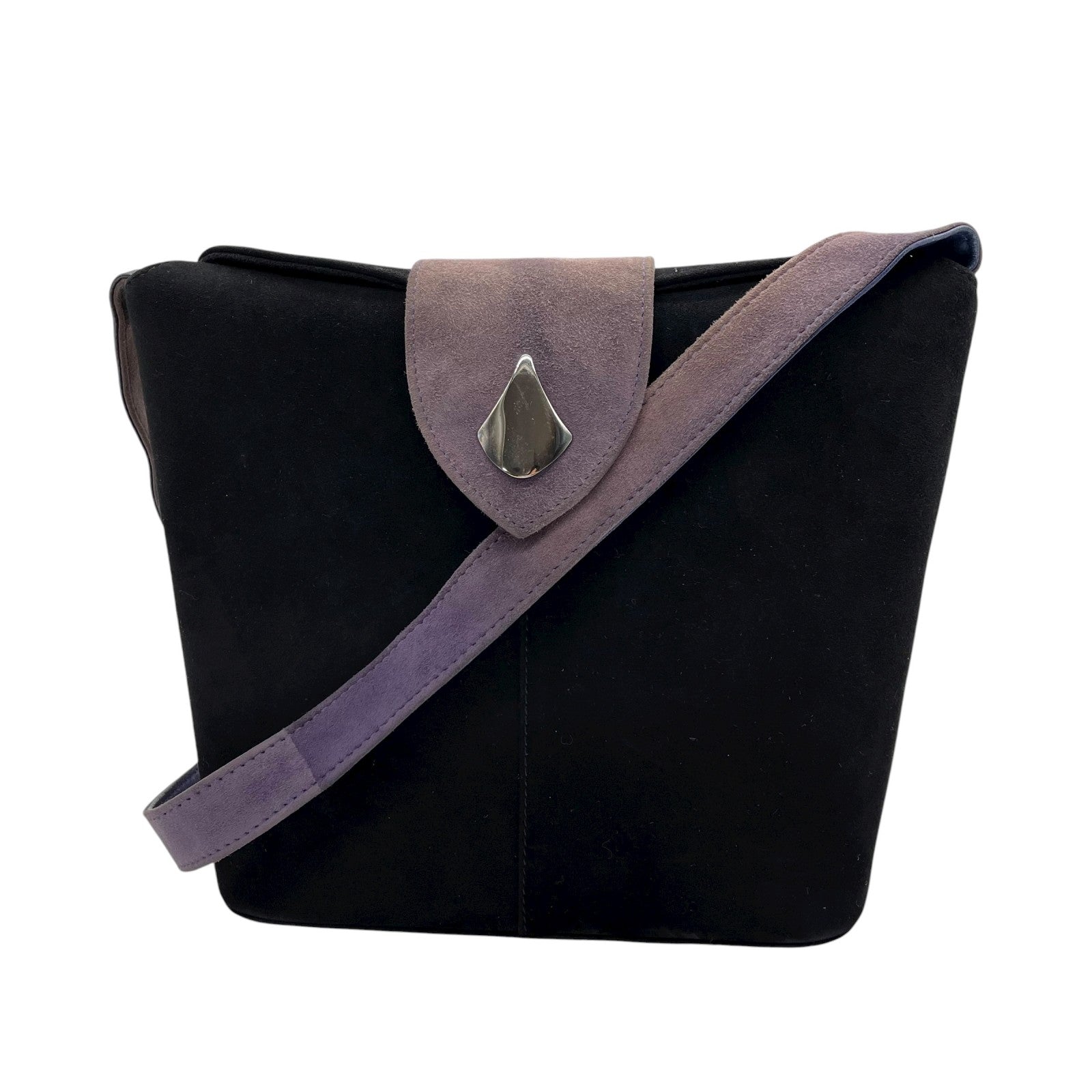 バリー BALLY スエード レザー コンビ ショルダーバッグ フラップ 黒 ブラック グレー金具 レディース C12