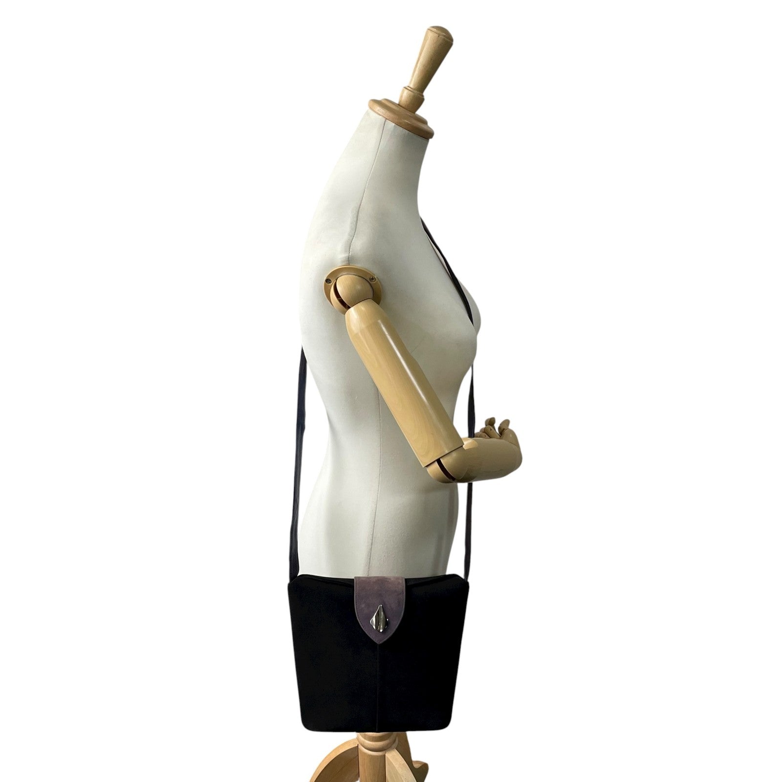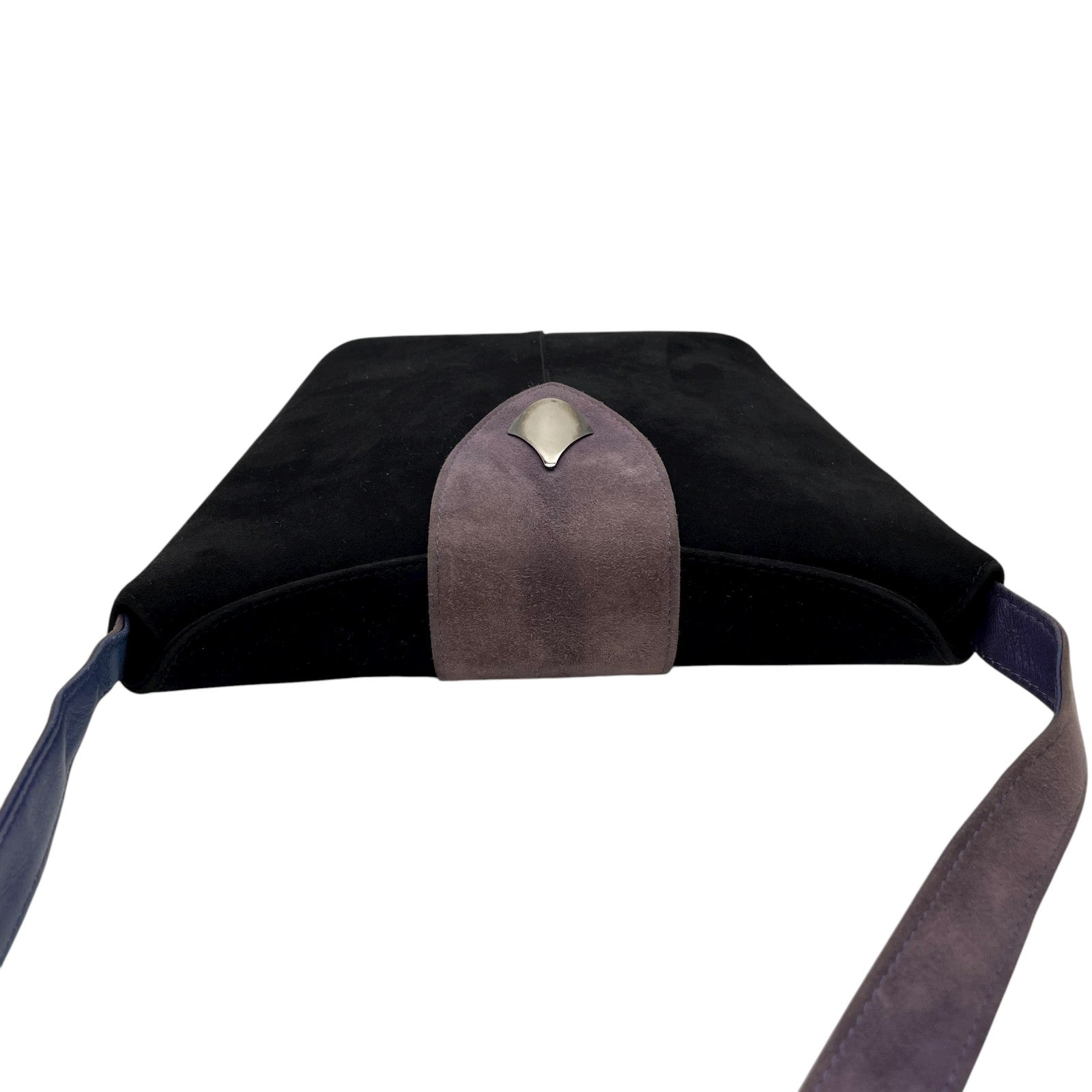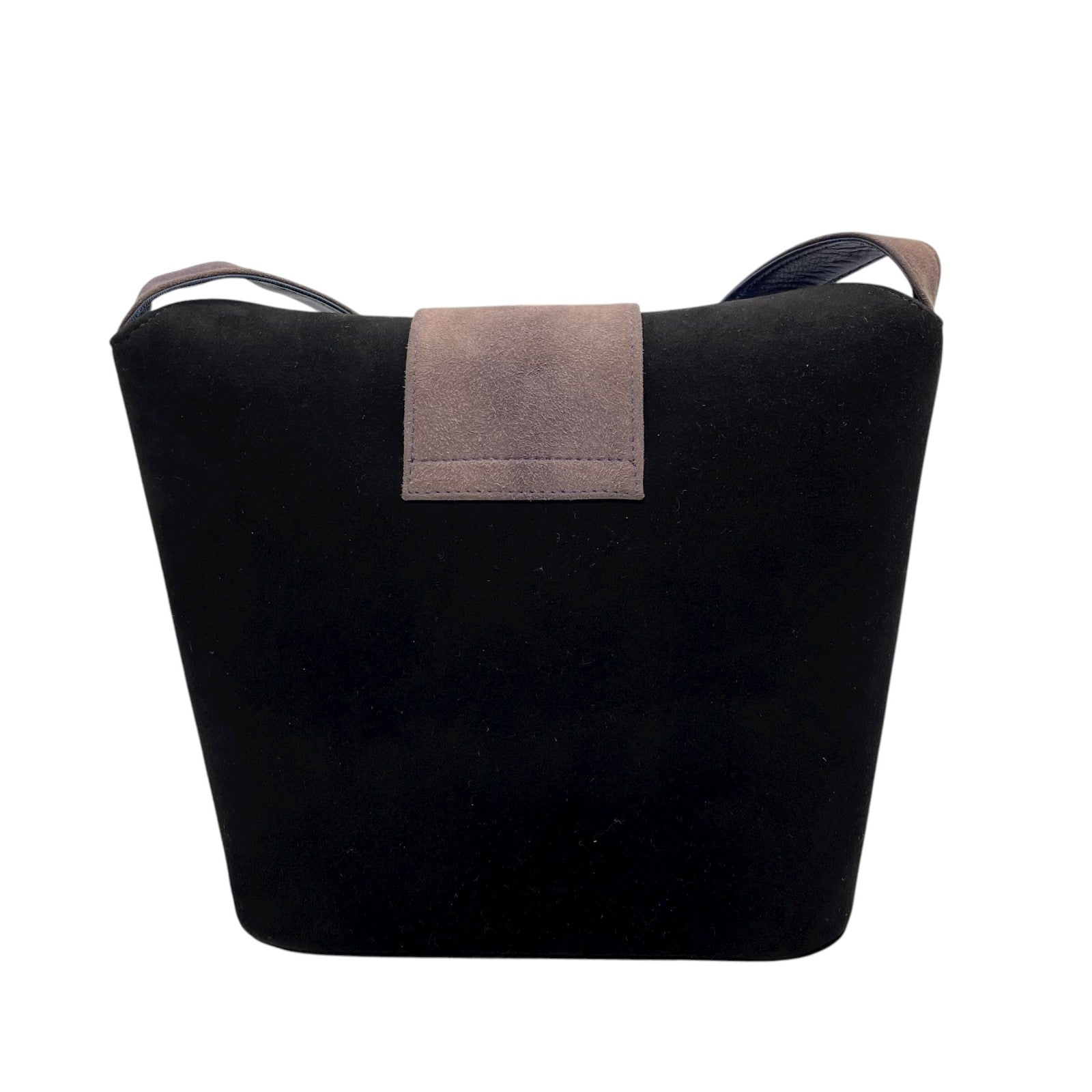 バリー BALLY スエード レザー コンビ ショルダーバッグ フラップ 黒 ブラック グレー金具 レディース C12