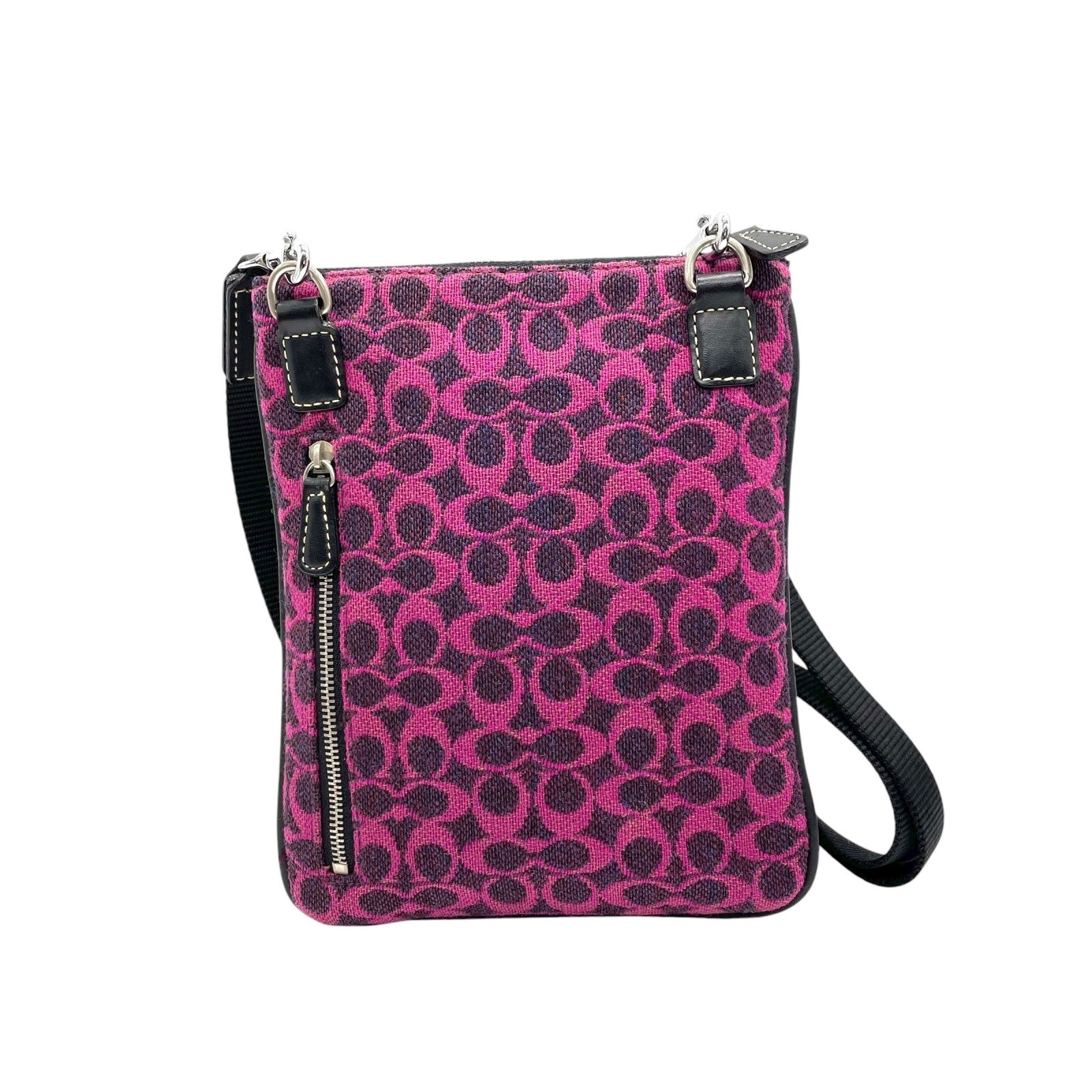 美品 コーチ COACH シグネチャー ジャカード ショルダーバッグ クロスボディ ピンク パープル ブラック レディース C8