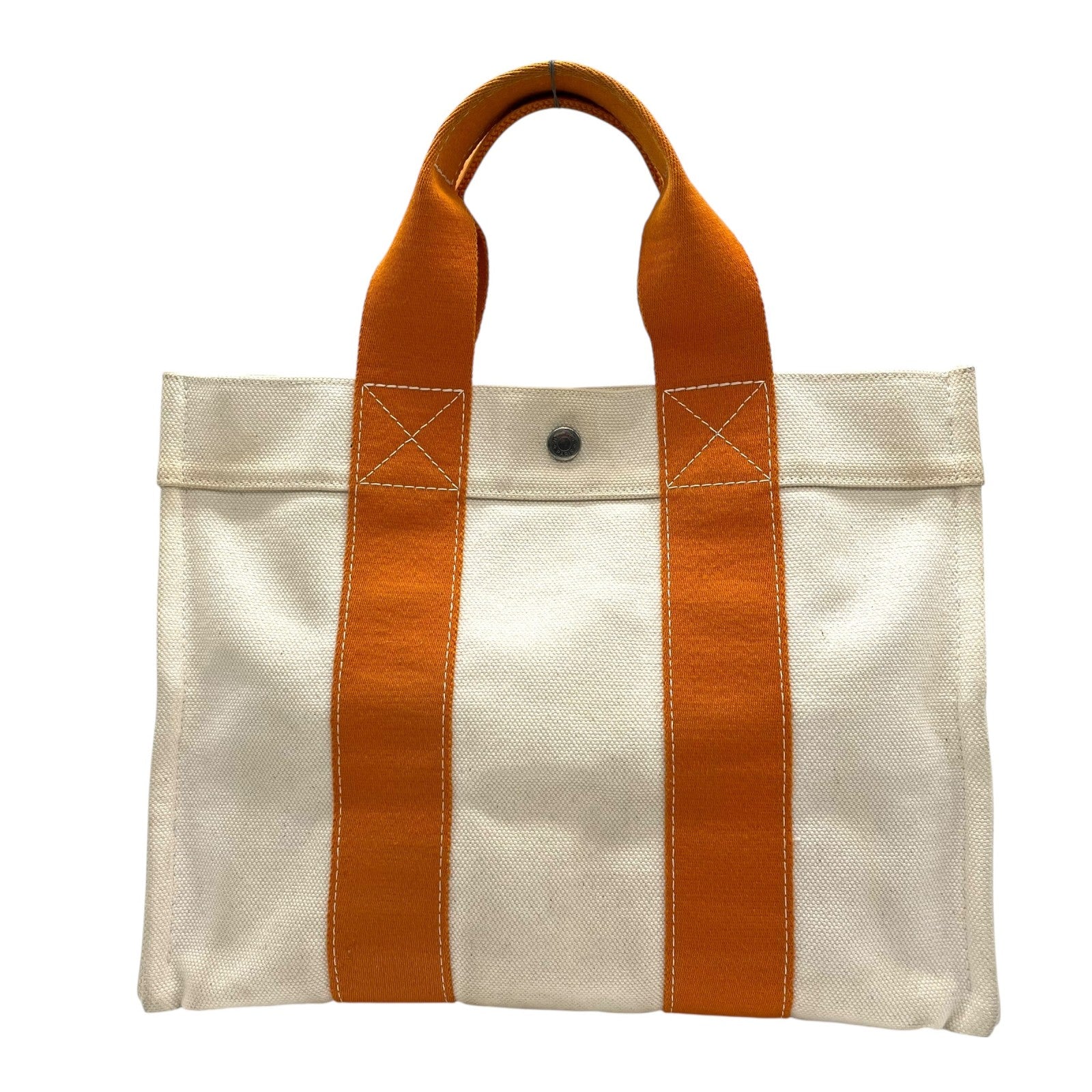 HERMES エルメス ボラボラPM ボラボラトート トートバッグ ハンドバッグ キャンバス アイボリー オレンジ シルバー金具 レディース B