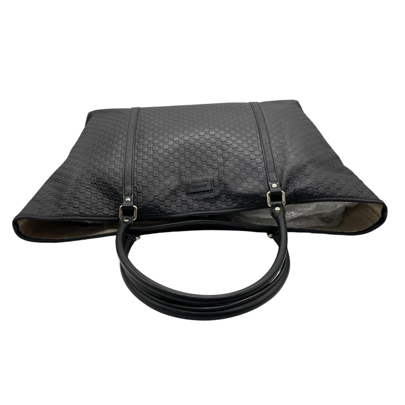 美品 GUCCI グッチ マイクログッチシマ トートバッグ 449648 黒 ブラック レザー ゴールド金具 肩掛け可 A4収納可 メンズ レディース E