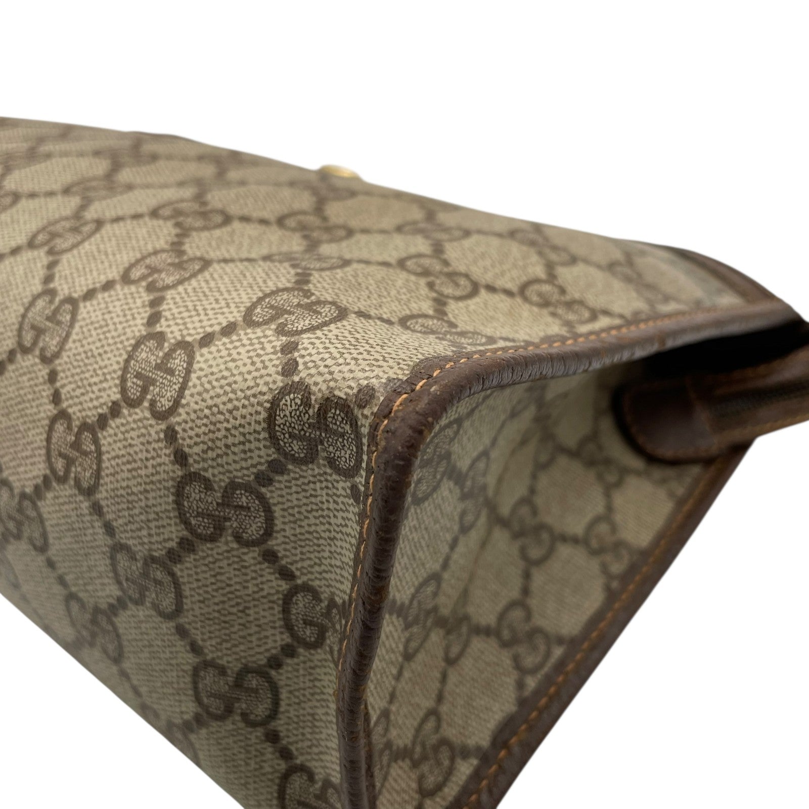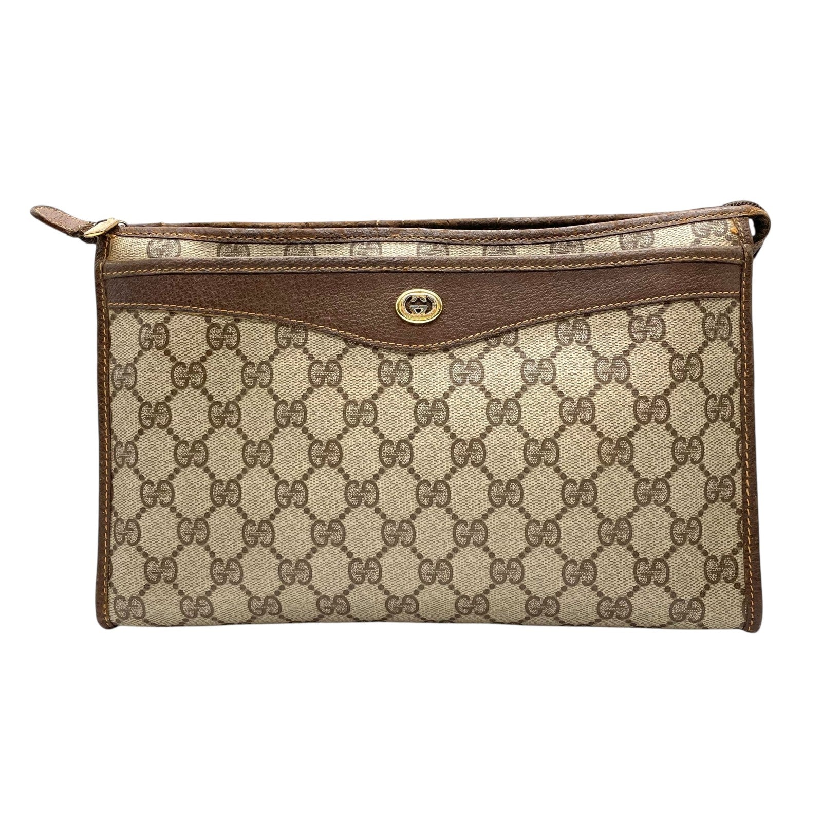 GUCCI グッチ GGスプリーム クラッチバッグ セカンドバッグ 茶 ブラウン グレー PVC レザー ゴールド金具 オールドグッチ ヴィンテージ メンズ レディース C4