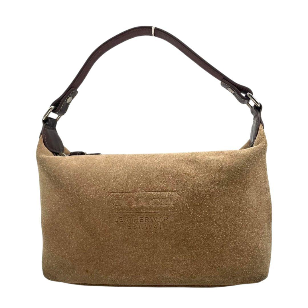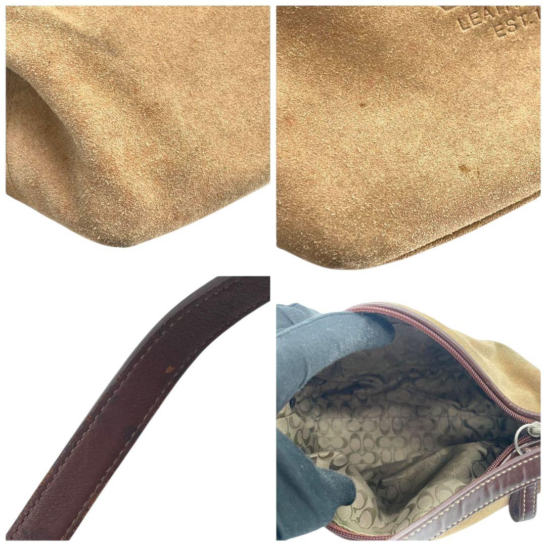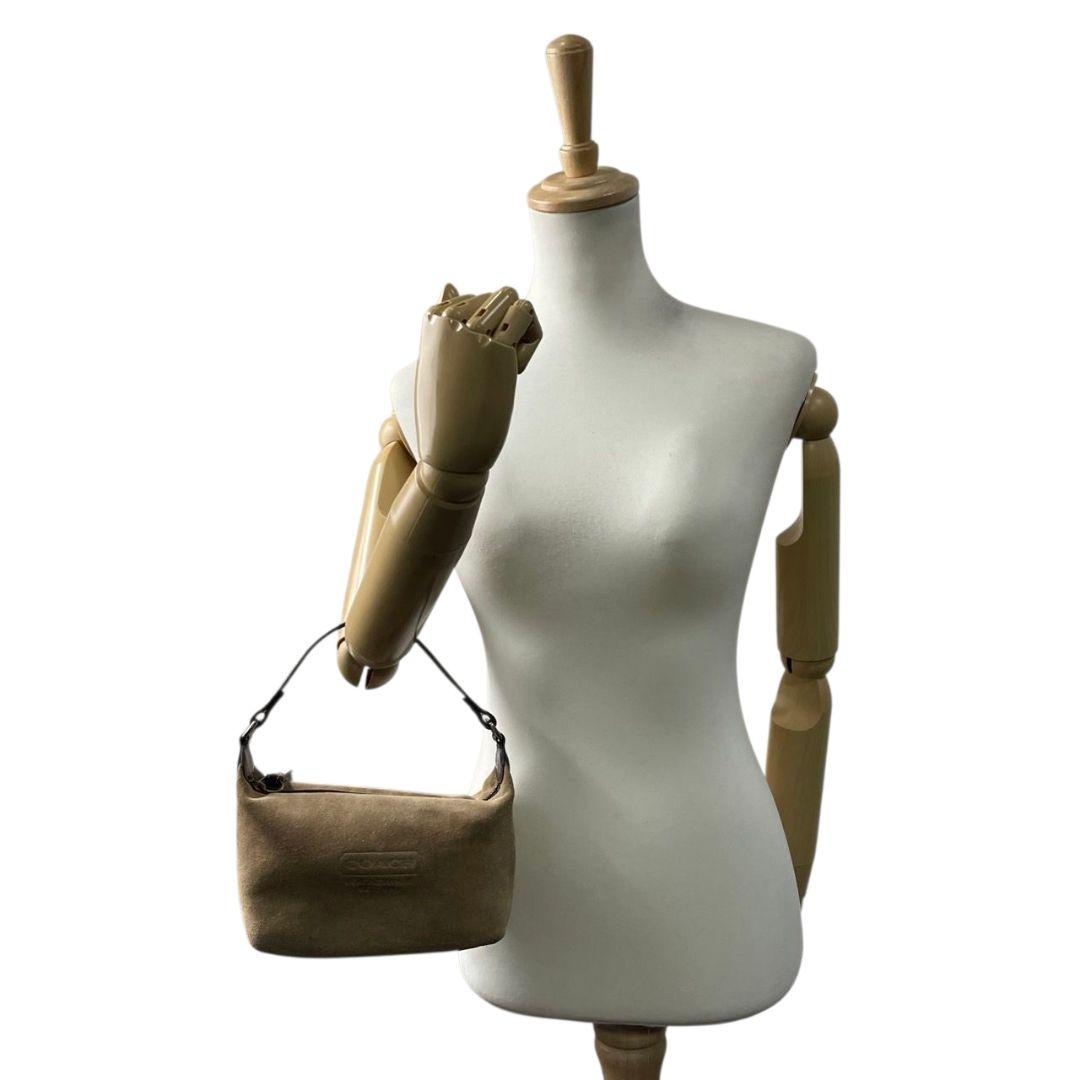 コーチ ハンドバッグ ベージュ スウェード レザー 本革 ロゴ ブラウン ミニバッグ トートバッグ ショルダー可 上品デザイン COACH s15