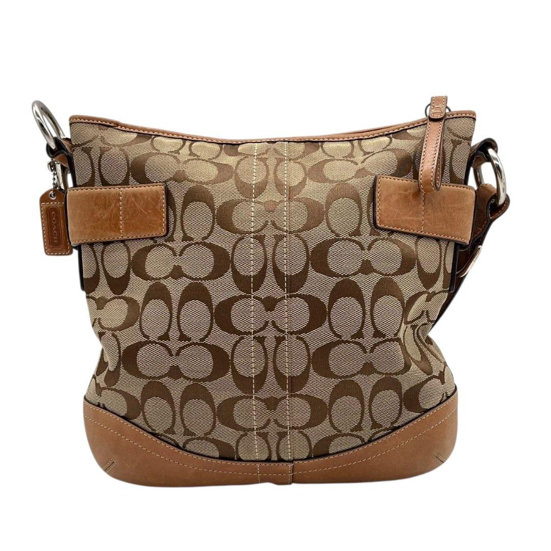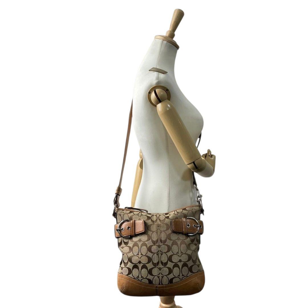 コーチ ショルダーバッグ 茶 シグネチャー 斜め掛け可 キャンバス s14 レザー 本革 ブラウン シルバー金具 COACH 3574