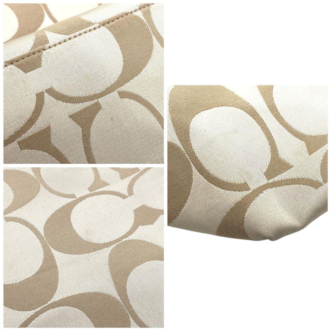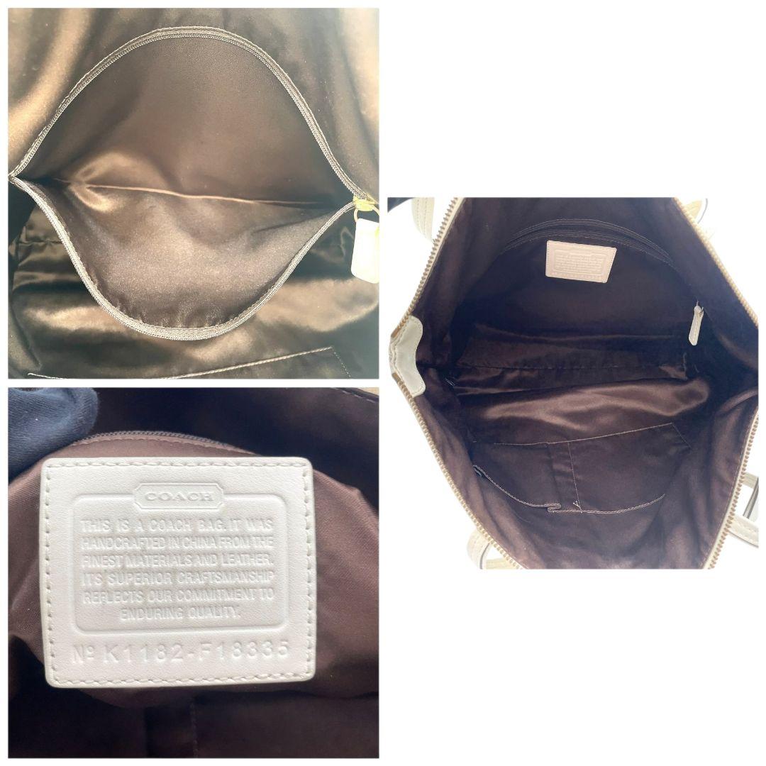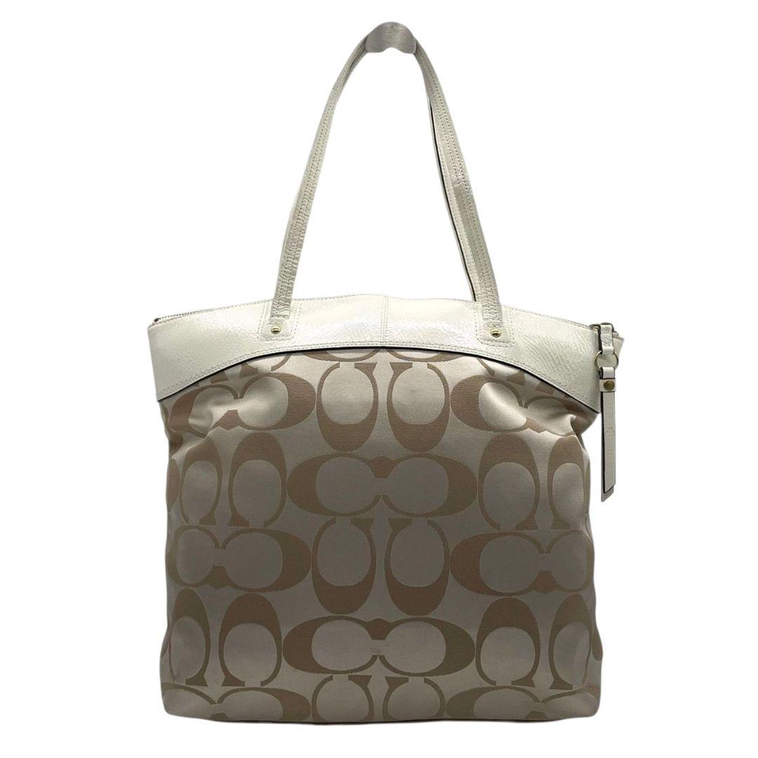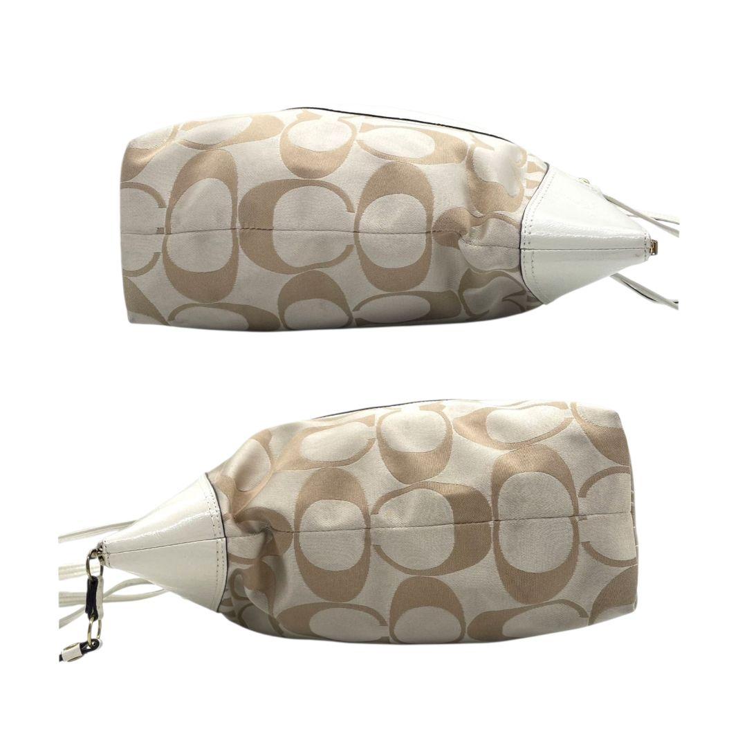 コーチ トートバッグ 白 シグネチャー ワンショルダー キャンバス s14 ハンドバッグ 肩掛け可 A4収納 本革 アイボリー パテントレザー ゴールド金具 F18335