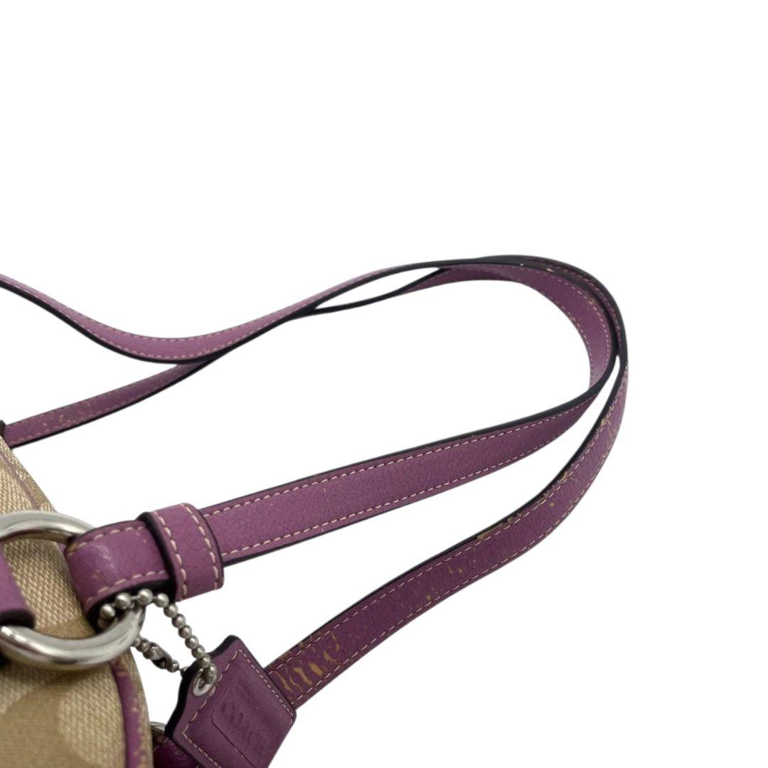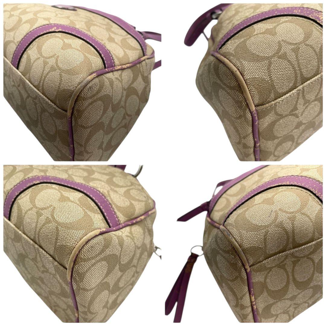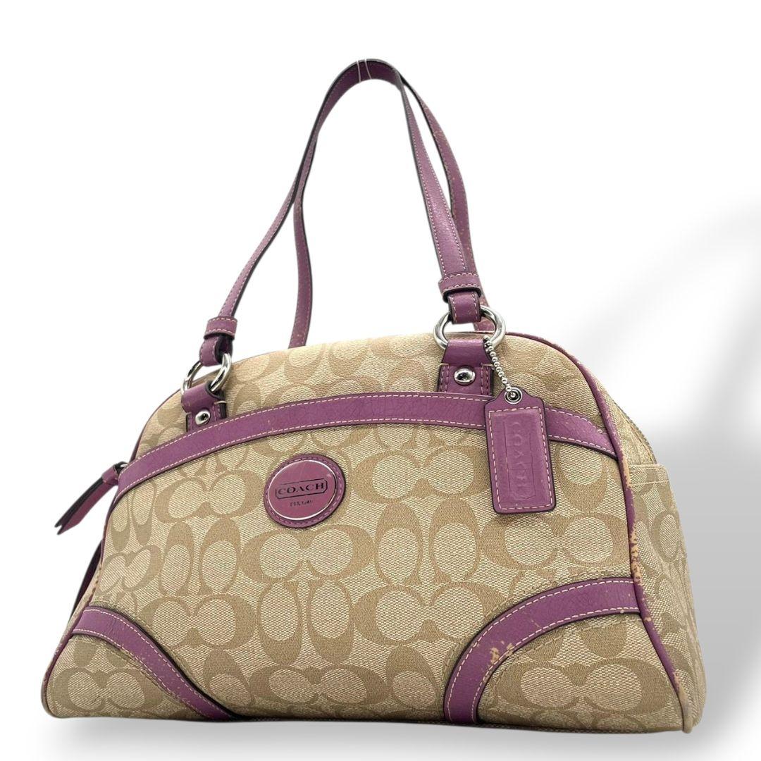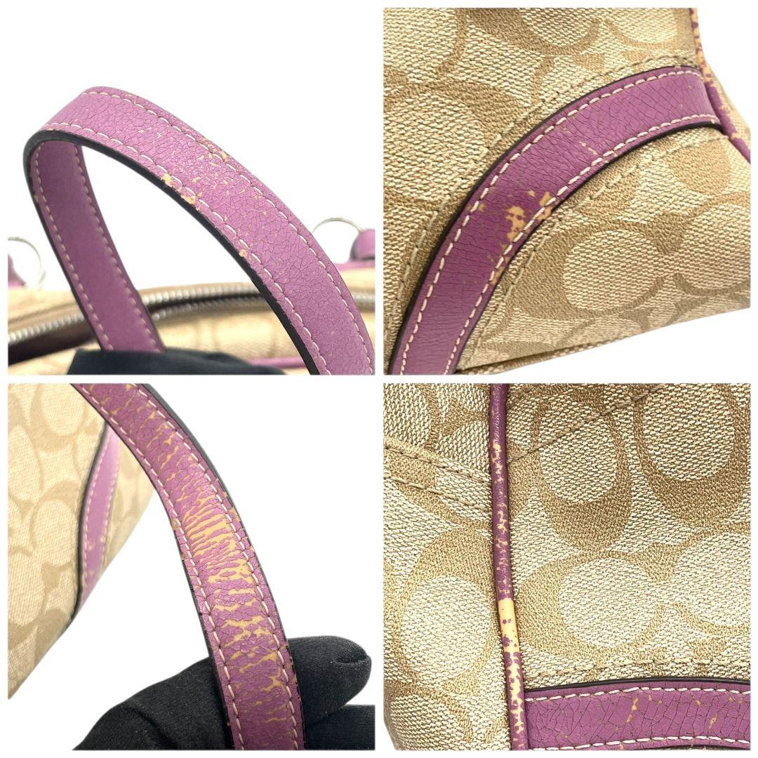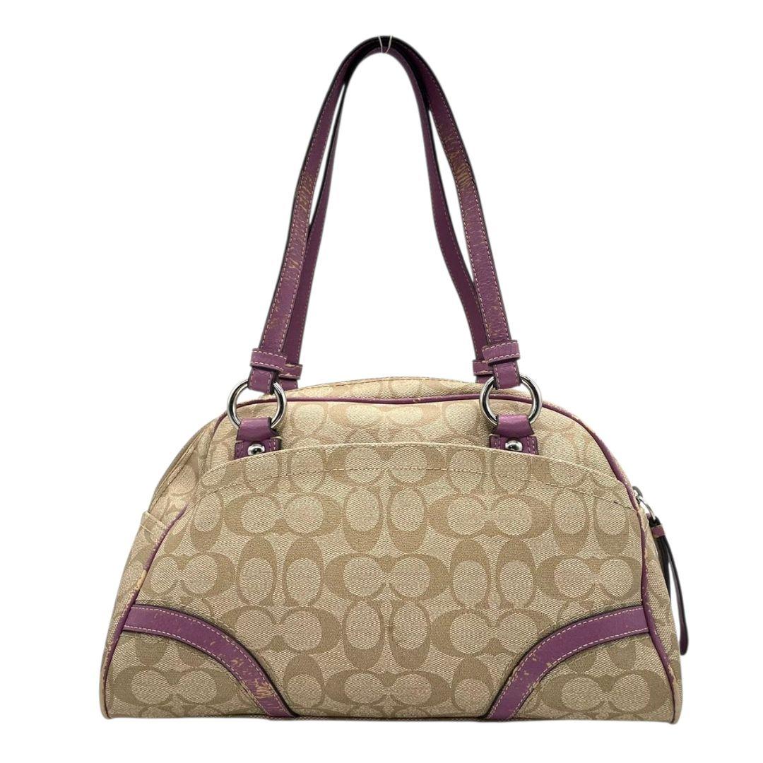 コーチ ハンドバッグ ベージュ シグネチャー ワンショルダー PVC s14 トートバッグ 肩掛け可 肩かけ可 レザー 本革 パープル シルバー金具 ロゴプレート ロゴタグ F18918