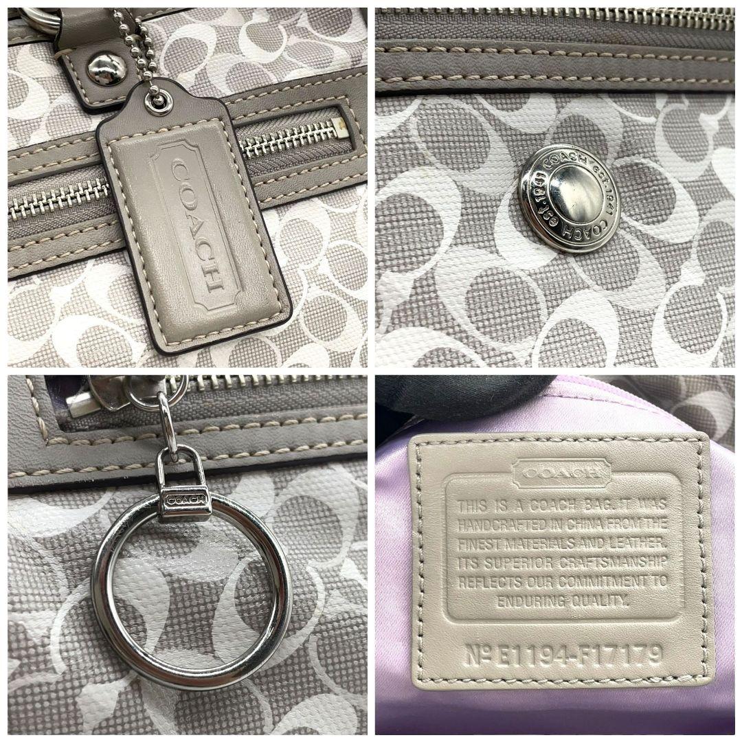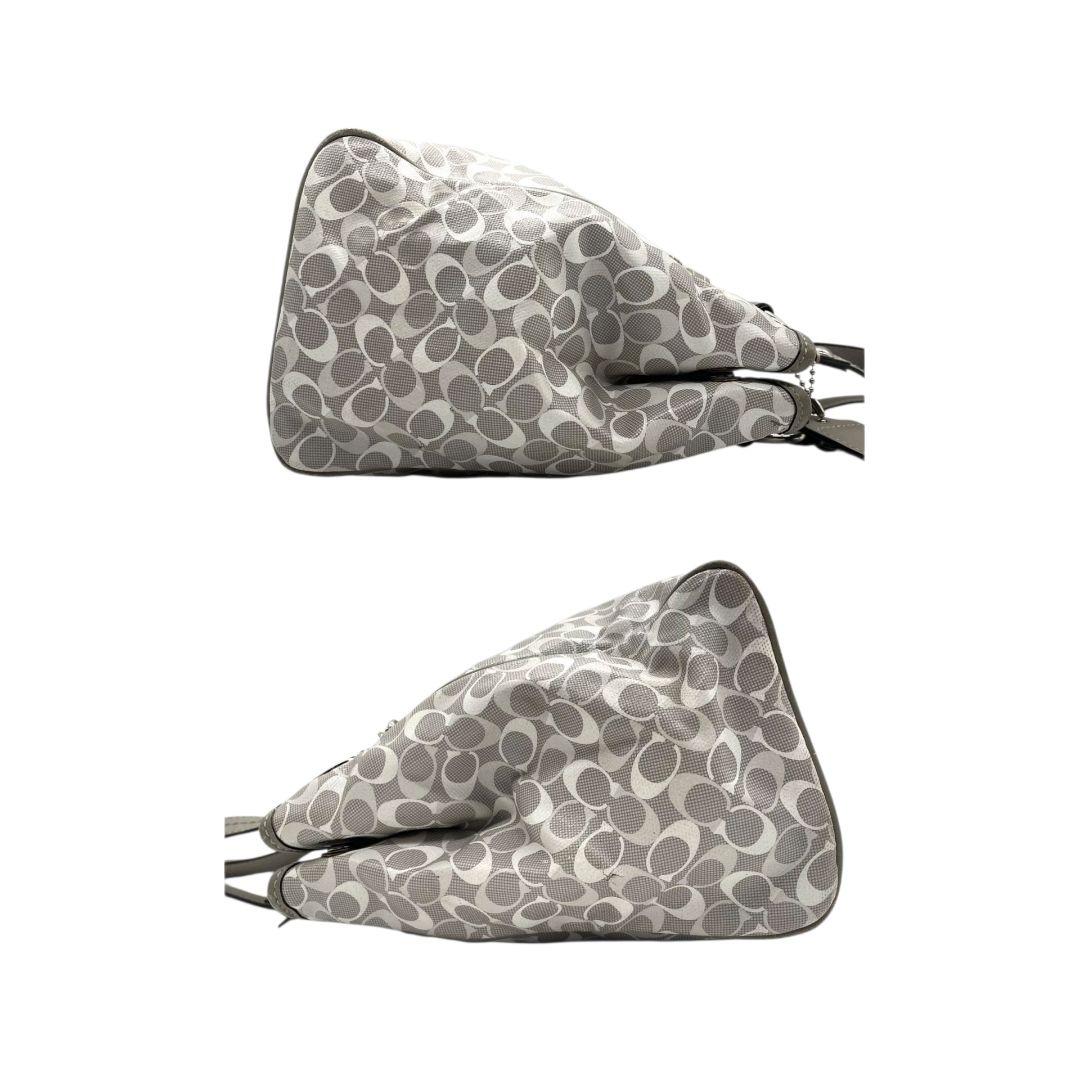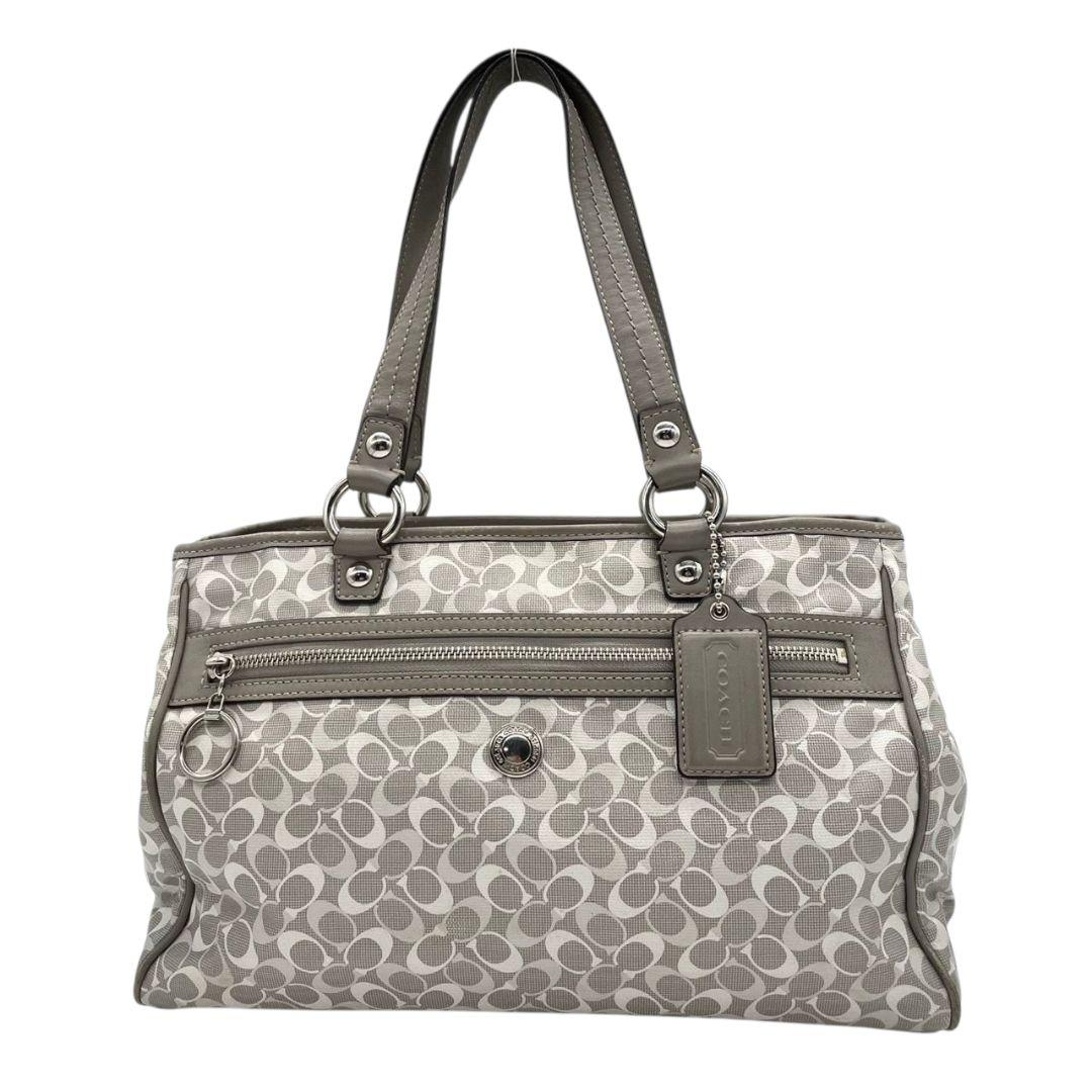 コーチ トートバッグ グレー シグネチャー ワンショルダー チャーム付き s15 ハンドバッグ 肩掛け可 肩かけ可 PVC 本革 ロゴプレート シルバー金具 F17179
