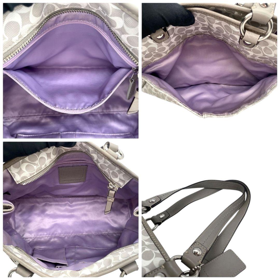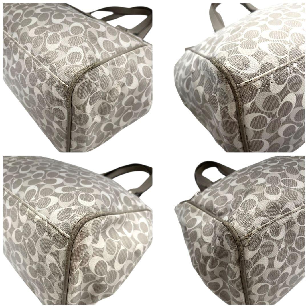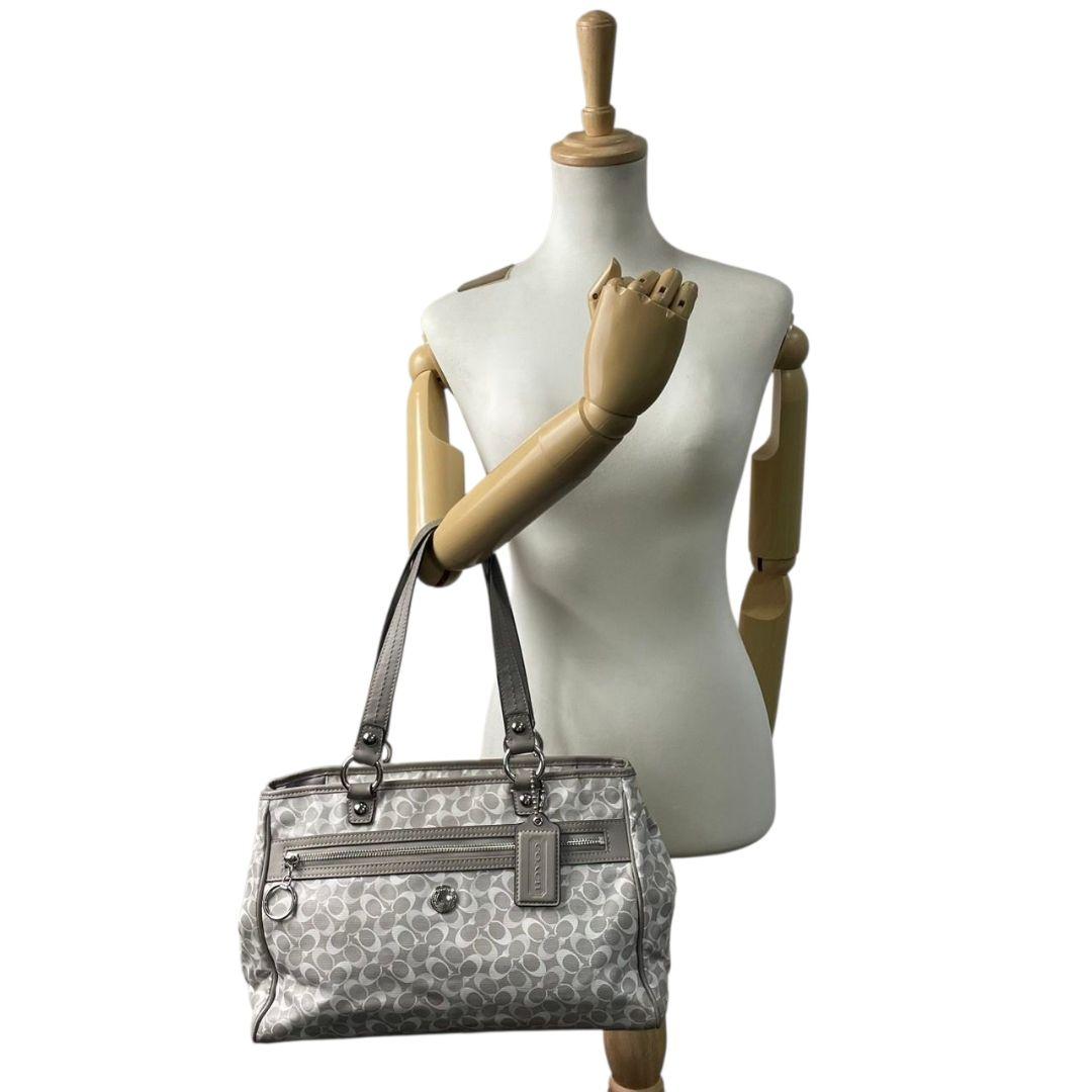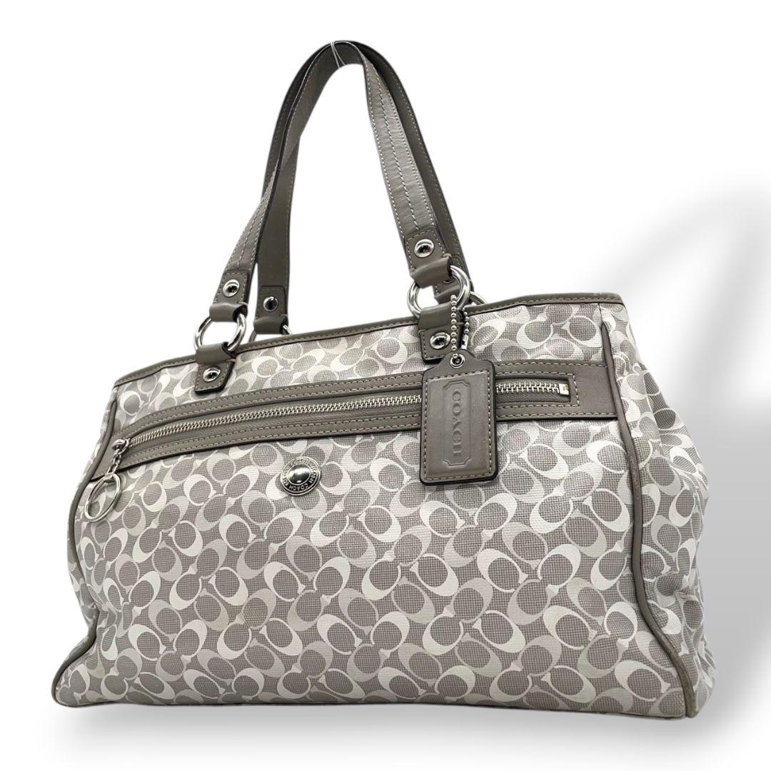コーチ トートバッグ グレー シグネチャー ワンショルダー チャーム付き s15 ハンドバッグ 肩掛け可 肩かけ可 PVC 本革 ロゴプレート シルバー金具 F17179