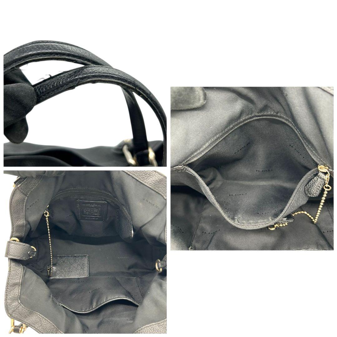 コーチ トートバッグ 黒 ブラック シグネチャー ハンプトンズ キャンバス レザー 本革 ワンショルダー ハンドバッグ 肩掛け可 シルバー金具 COACH G0851-F12843 s79