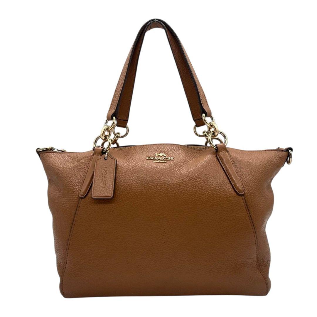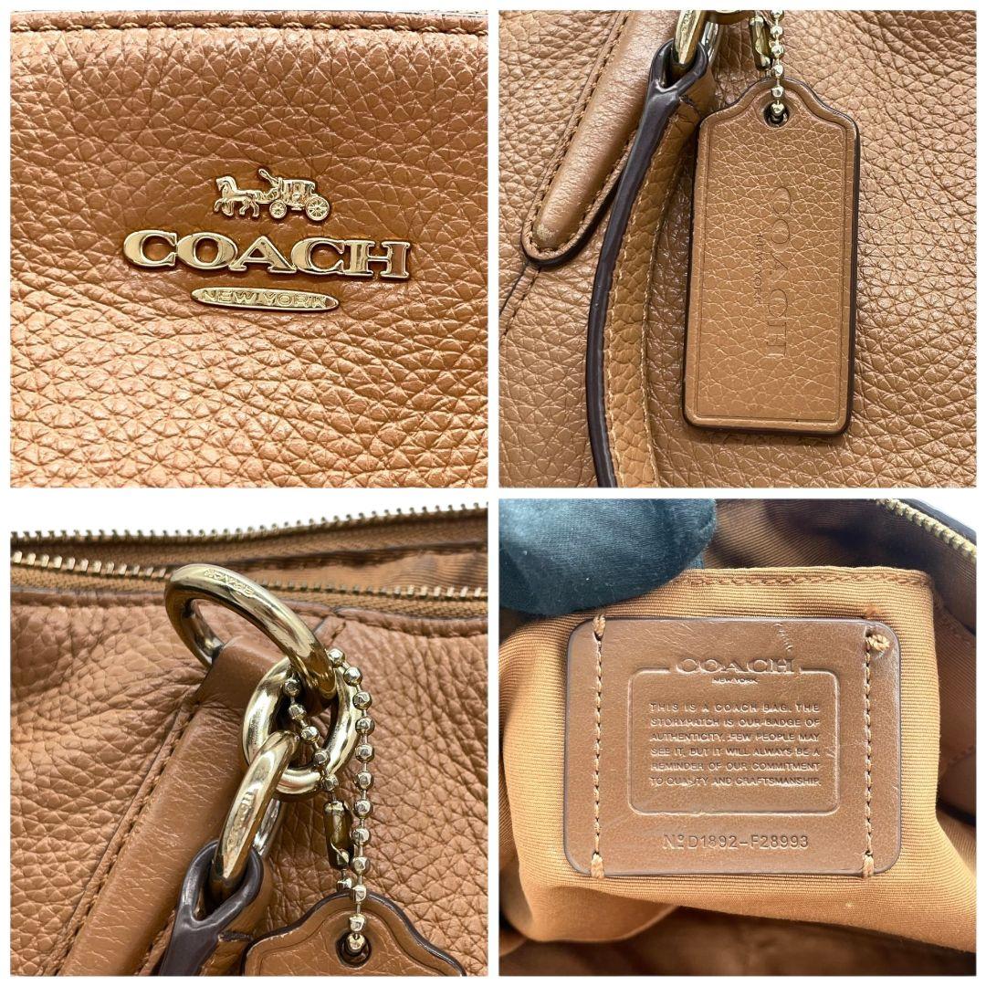 コーチ ハンドバッグ 茶 2way チェーン 斜め掛け可 レザー ロゴ s9 本革 ショルダーバッグ トートバッグ ブラウン ゴールド金具 ロゴタグ F28993
