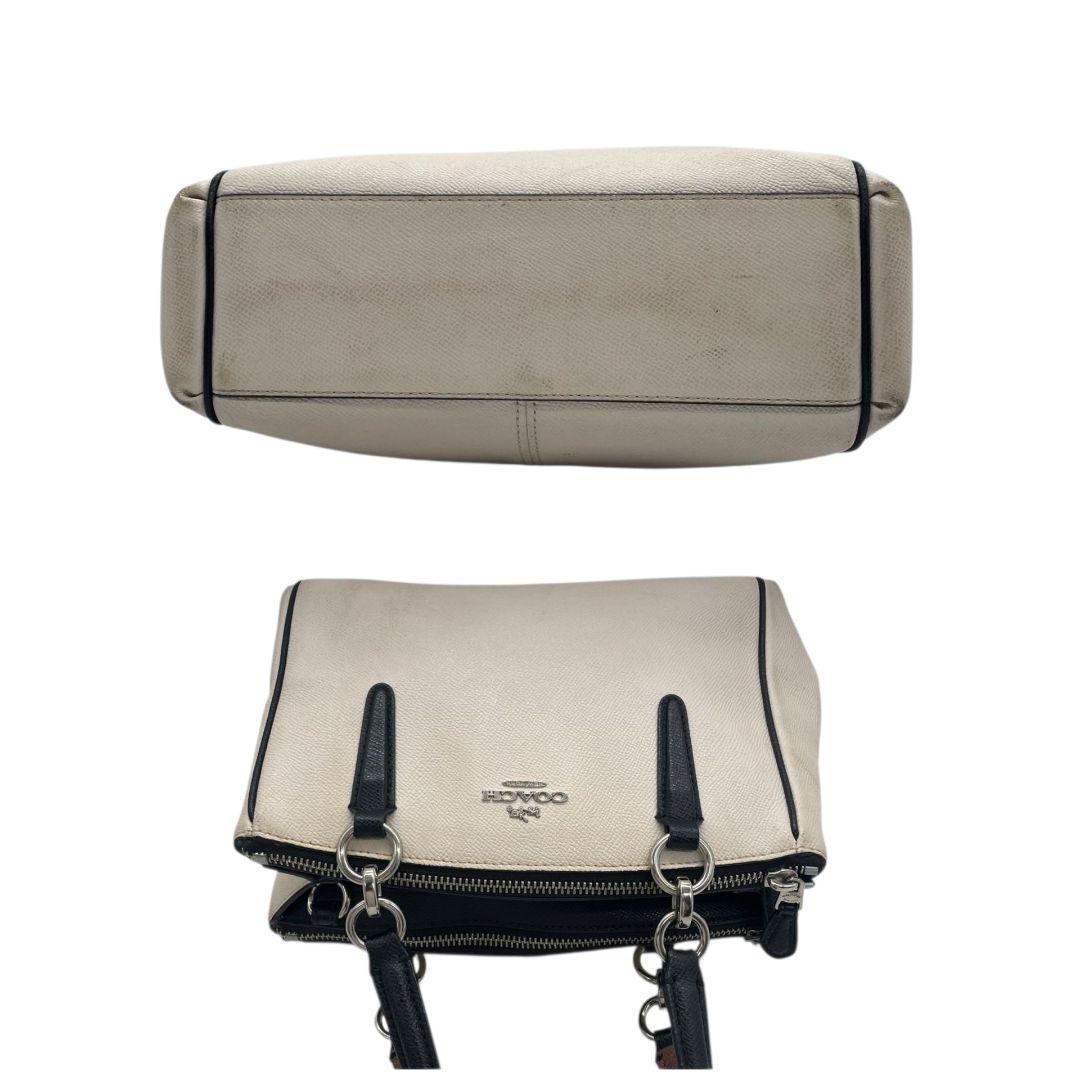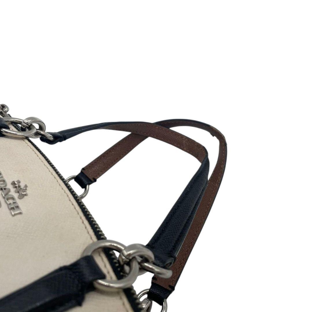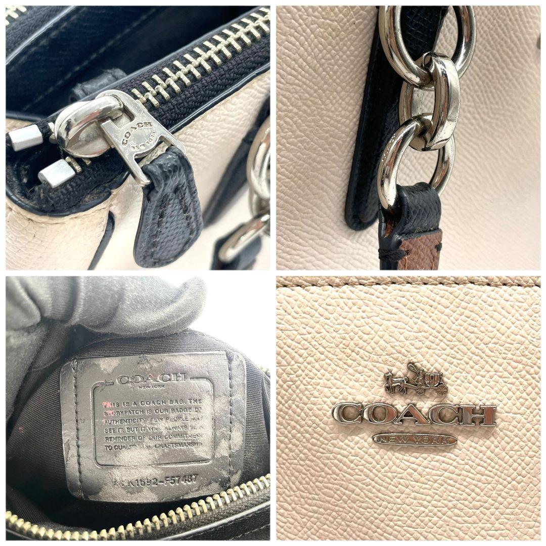 コーチ ハンドバッグ 白 バイカラー 2way 斜め掛け可 チェーン s9 ショルダーバッグ トートバッグ レザー 本革 アイボリー ブラック ロゴ シルバー金具 F57487