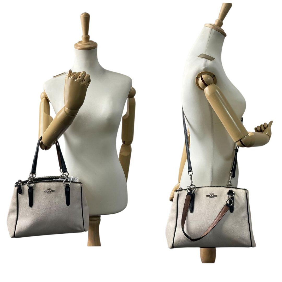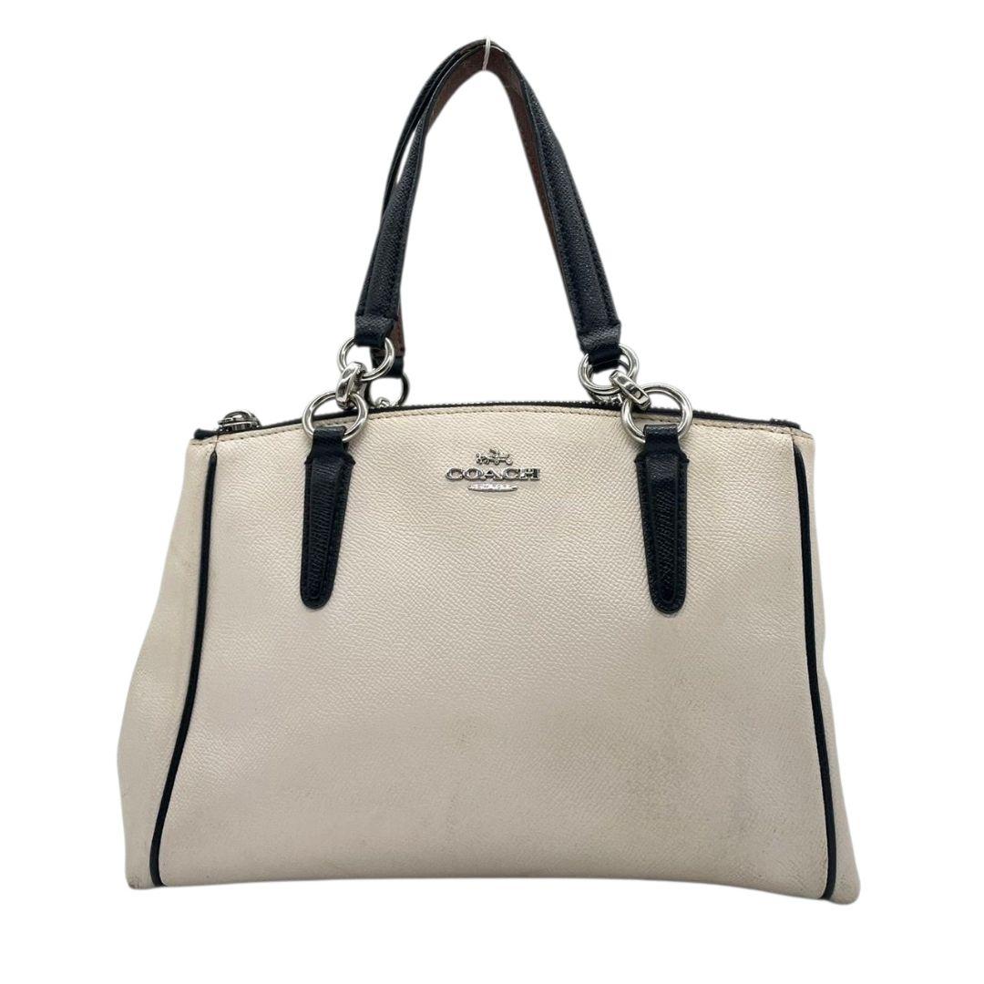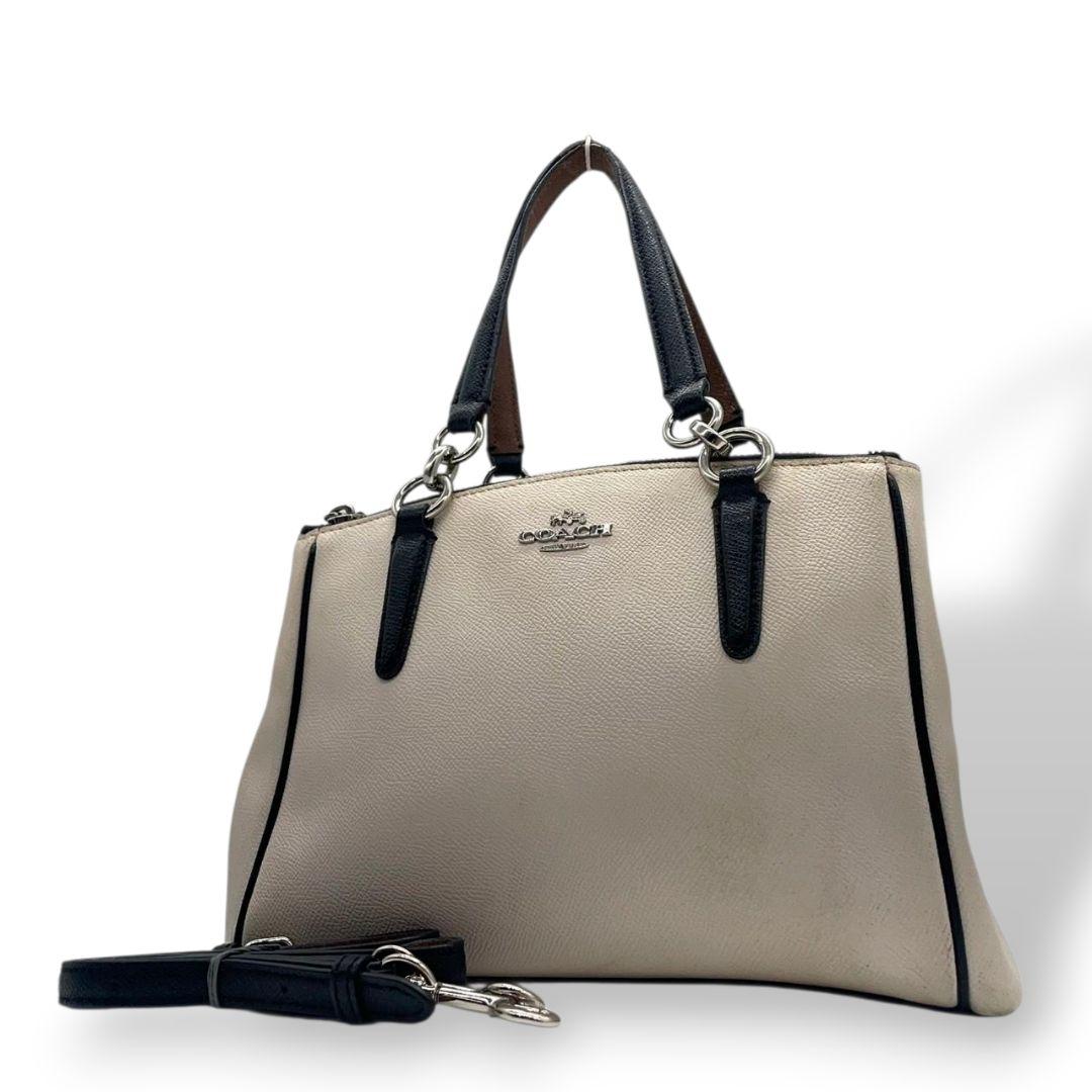 コーチ ハンドバッグ 白 バイカラー 2way 斜め掛け可 チェーン s9 ショルダーバッグ トートバッグ レザー 本革 アイボリー ブラック ロゴ シルバー金具 F57487
