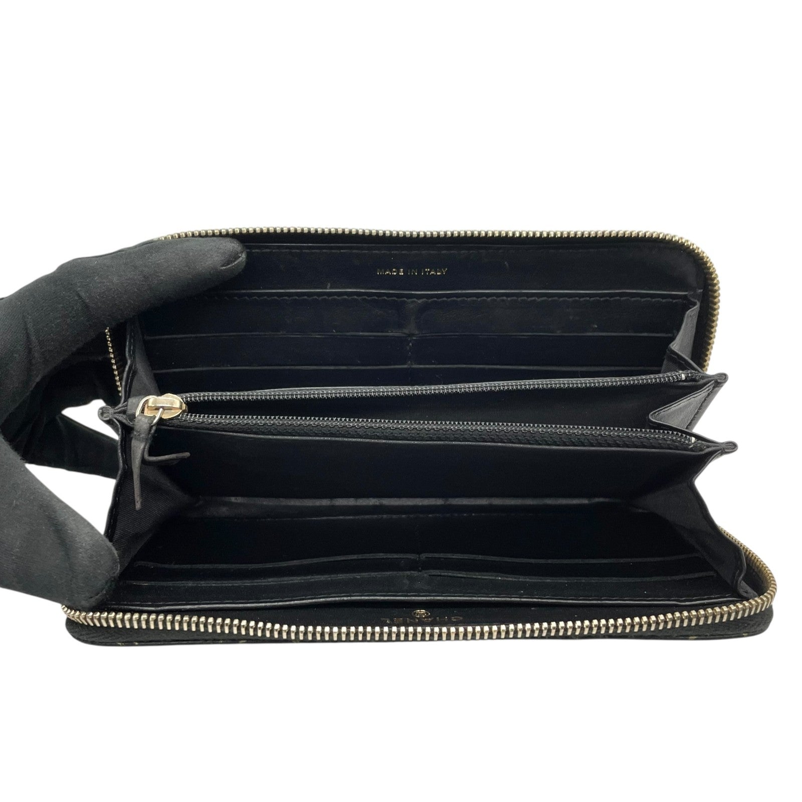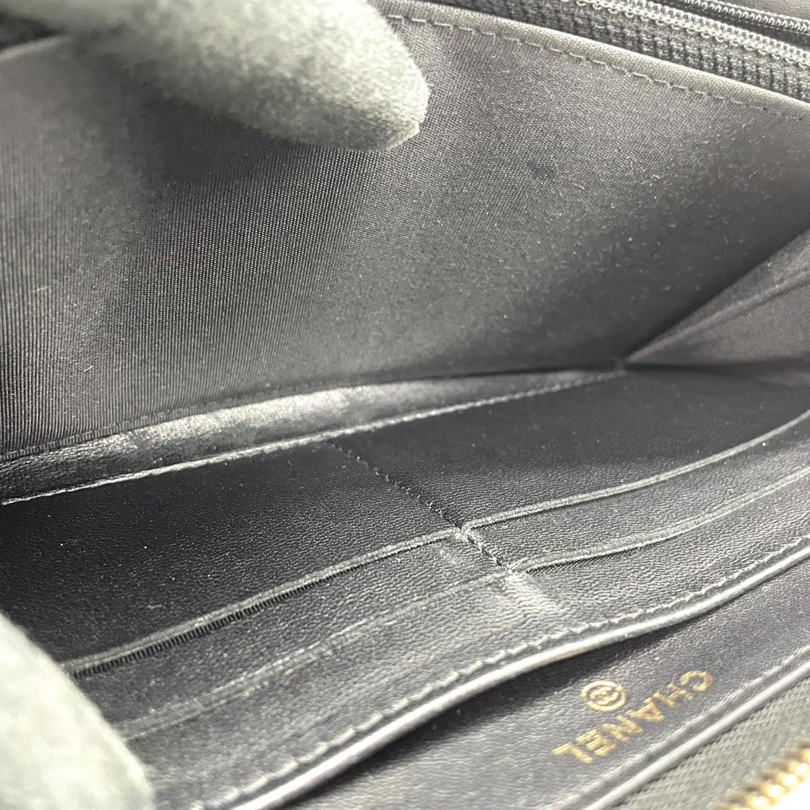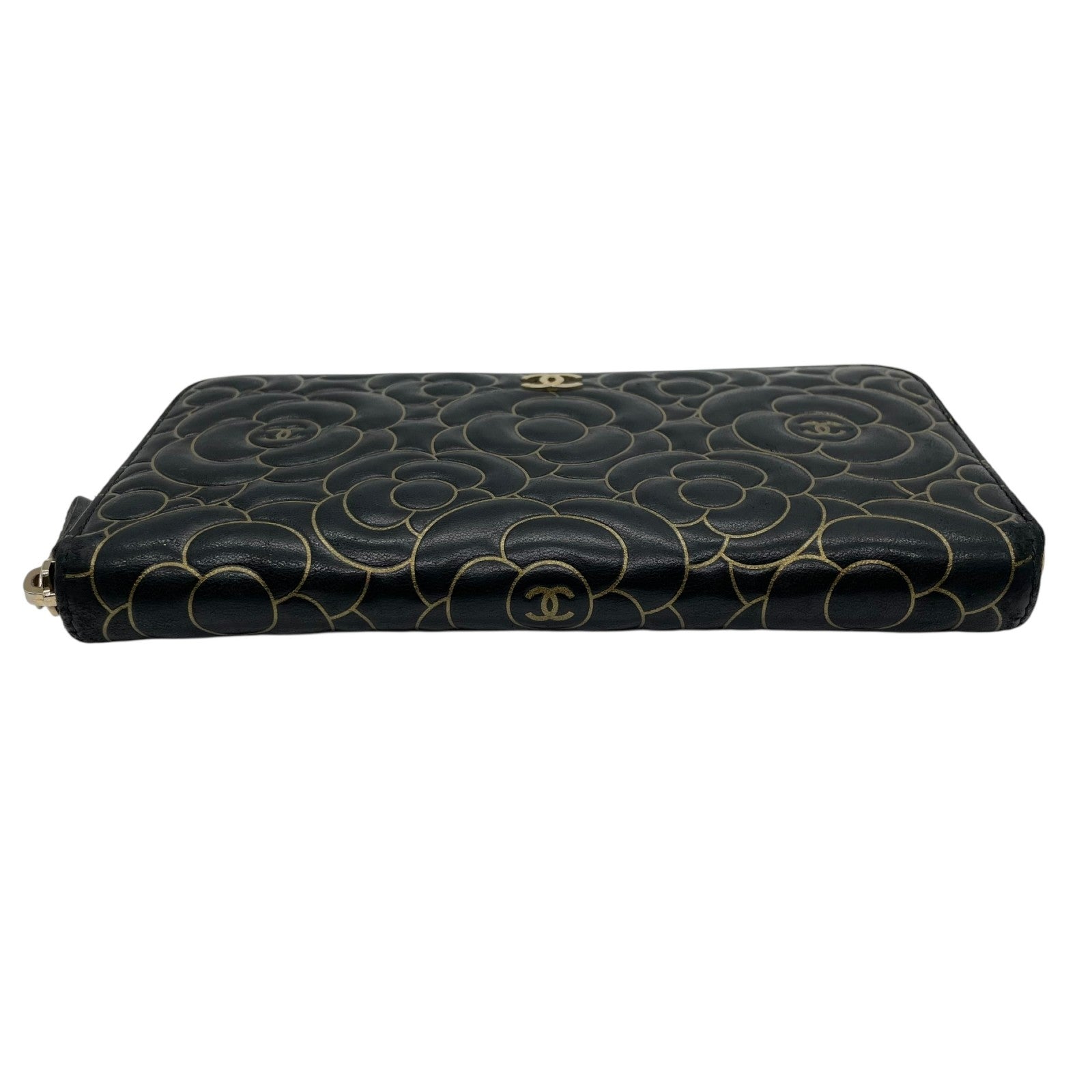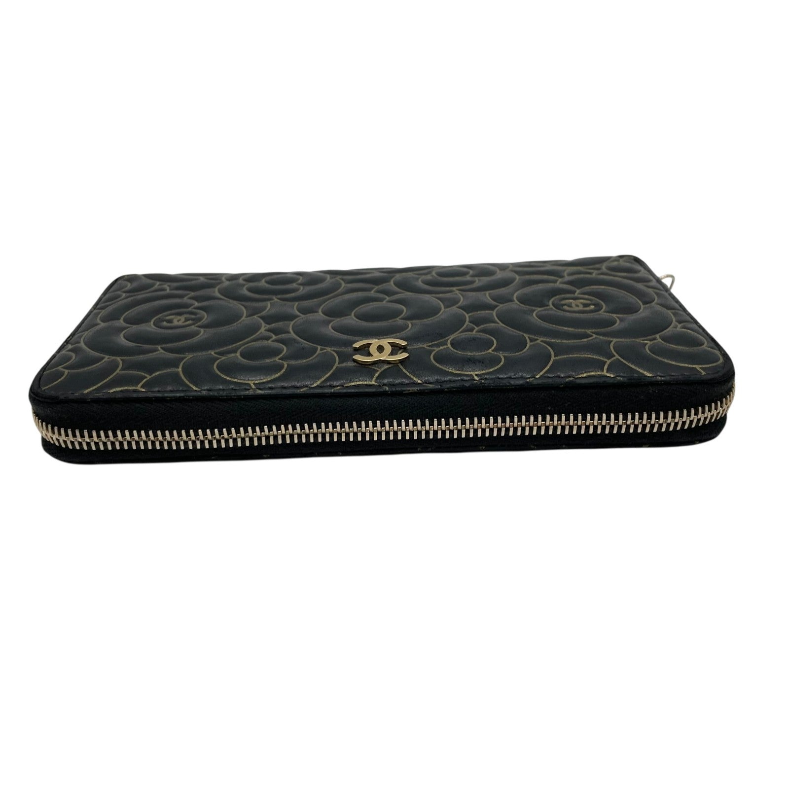 美品 シャネル CHANEL カメリア ラウンドファスナー 長財布 ブラック 黒 レザー 金 ゴールド金具 ココマーク 型押し ウォレット W6