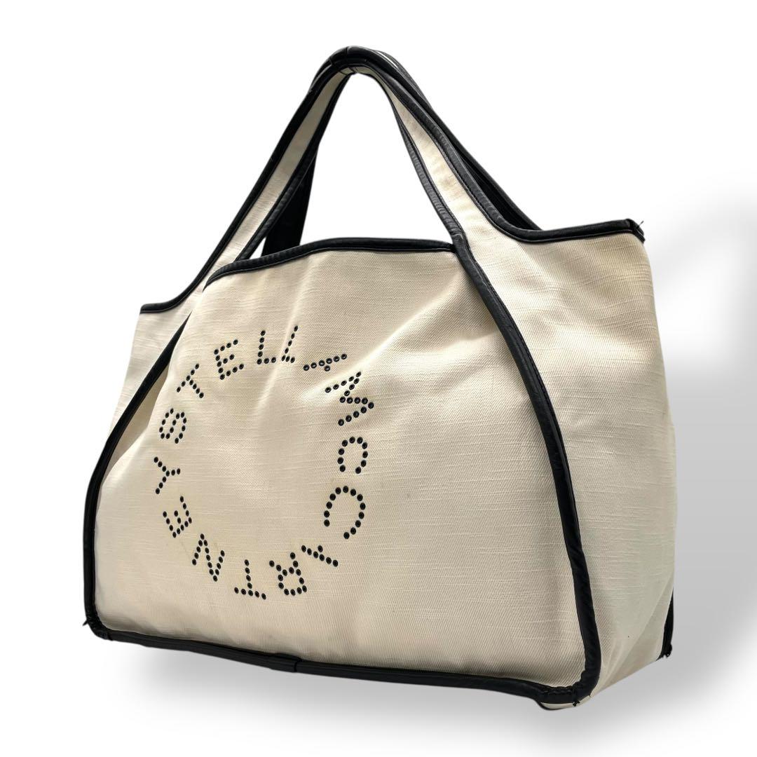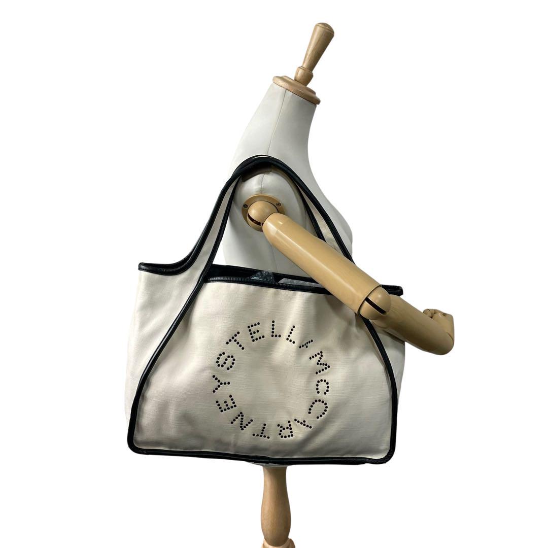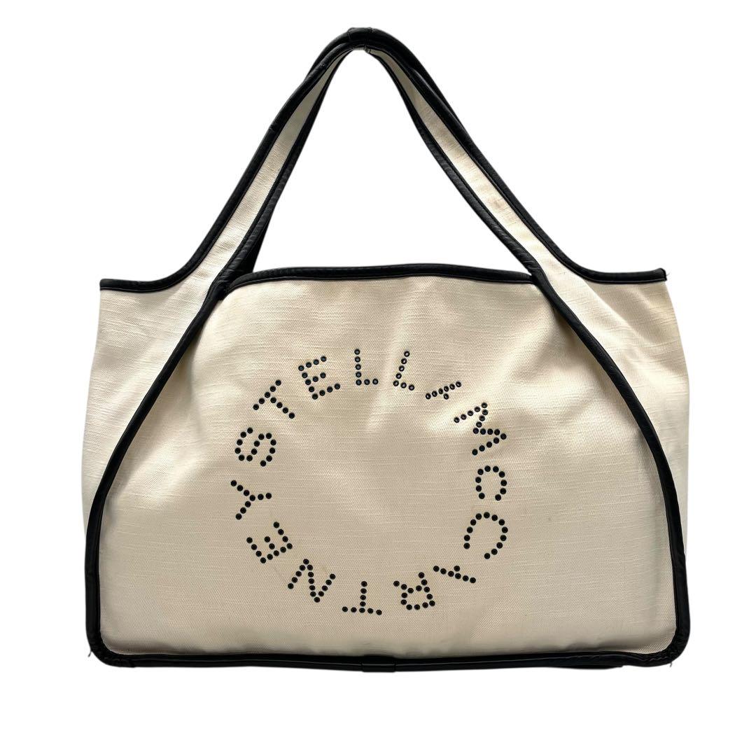 ステラマッカートニー トートバッグ アイボリー パンチングロゴ デカロゴ キャンバス レザー 肩掛け可 ワンショルダー ホワイト 白系 大容量 レディース