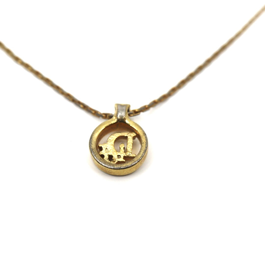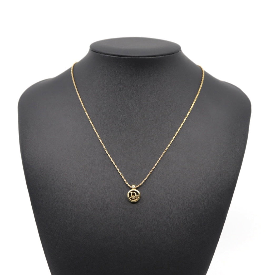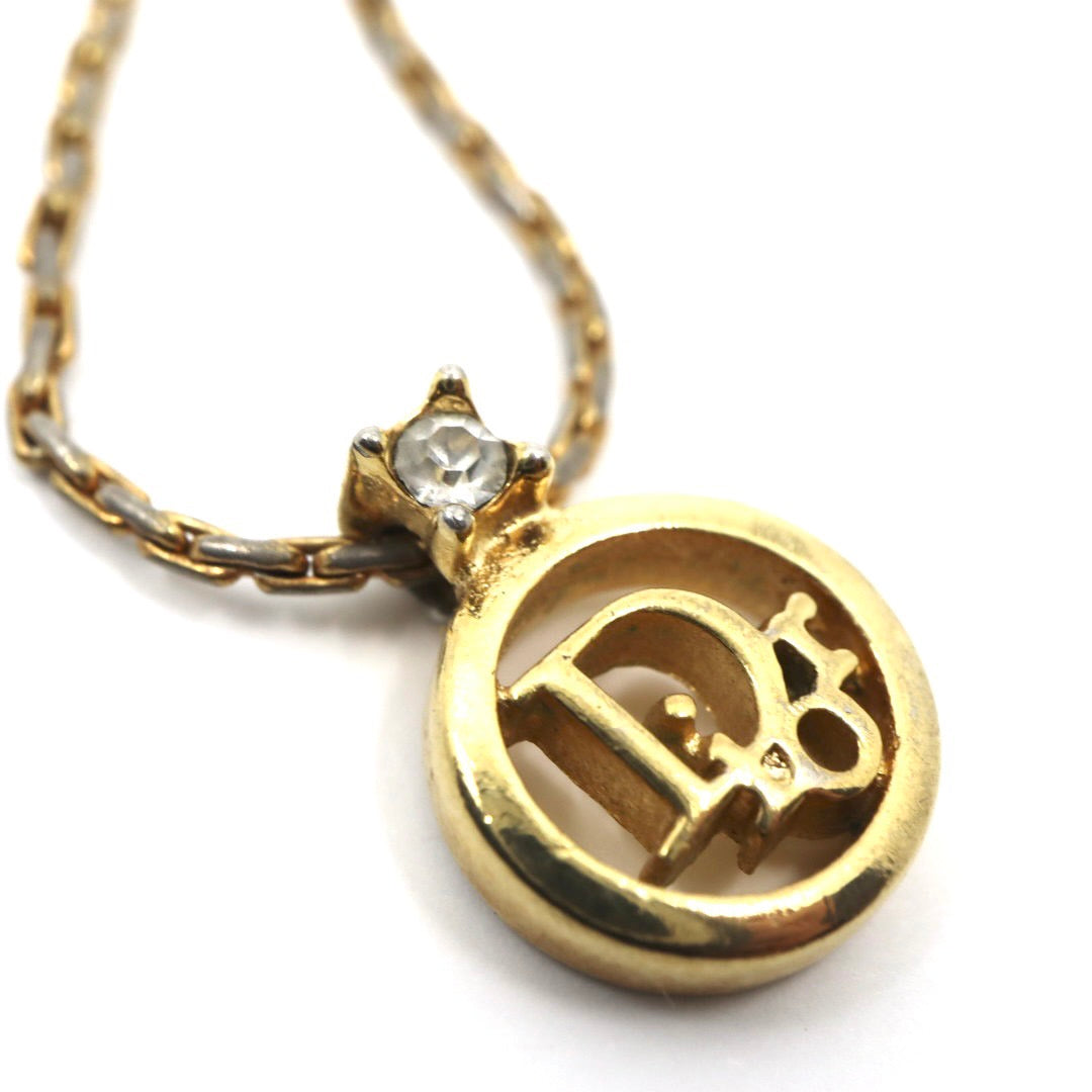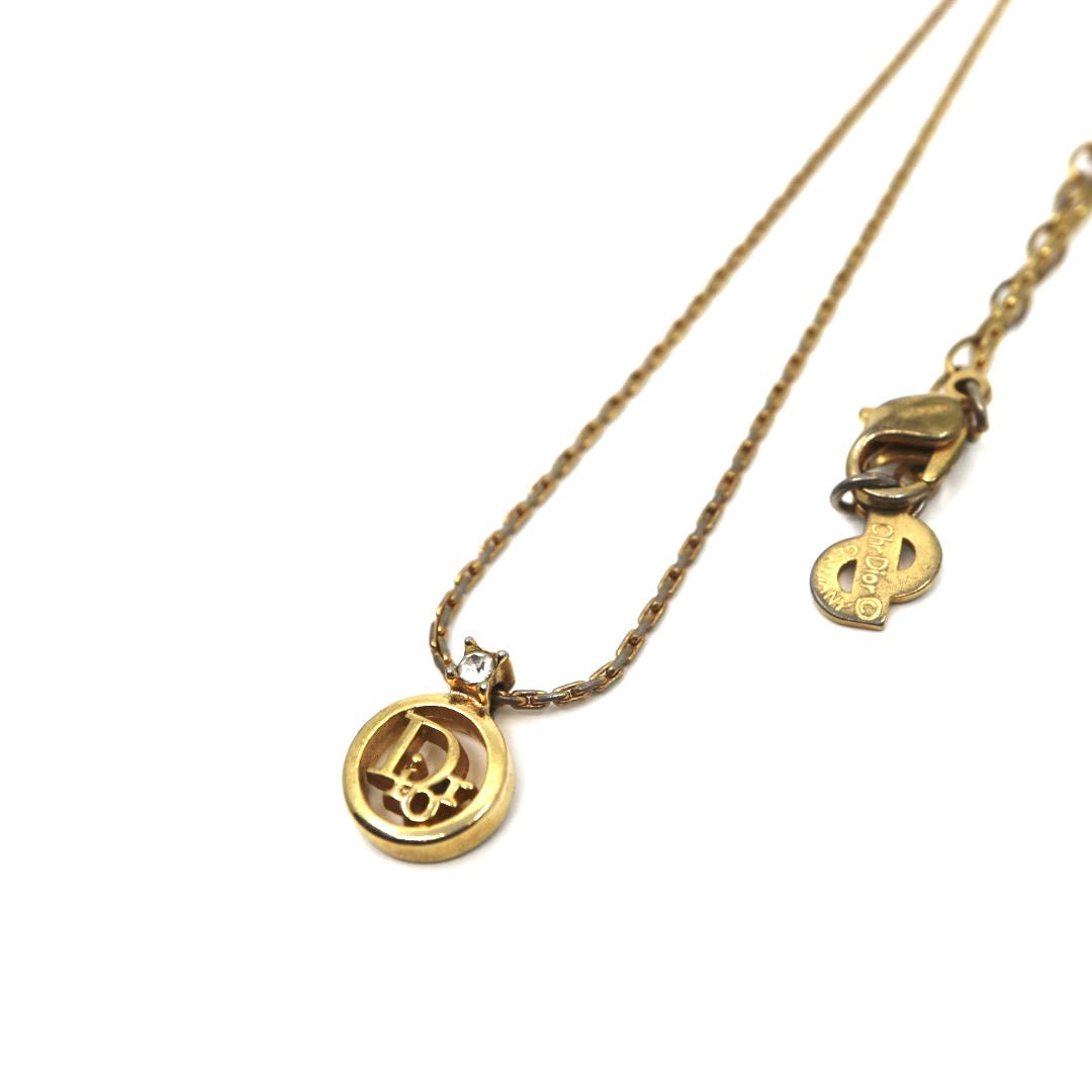 美品 Christian Dior クリスチャン ディオール ヴィンテージ ネックレス ロゴ CDロゴ サークル 一粒ストーン ペンダント ゴールドカラー アクセサリー ジュエリー アジャスター レディース I3