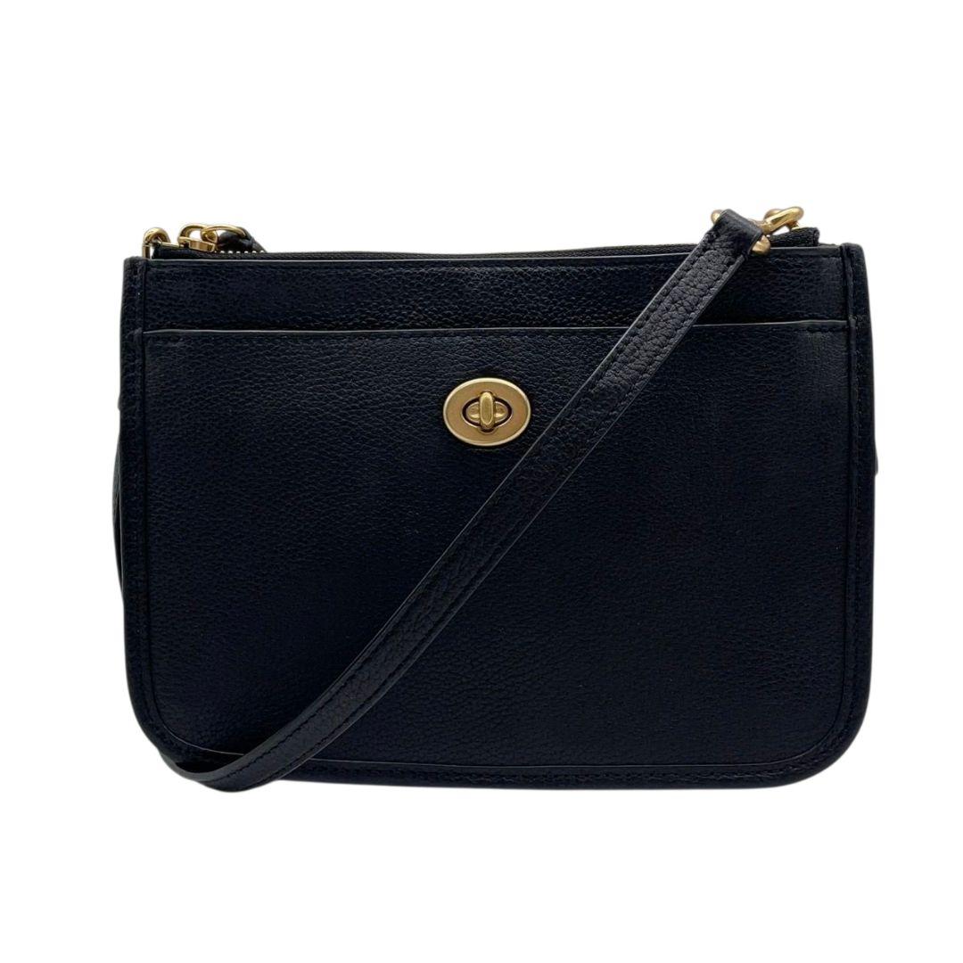 美品 コーチ ショルダーバッグ 黒 ターンロック s8 レザー 本革 斜め掛け可 ブラック ゴールド金具 COACH C6663 クロスボディ バッグ エレガント シンプル 高級感