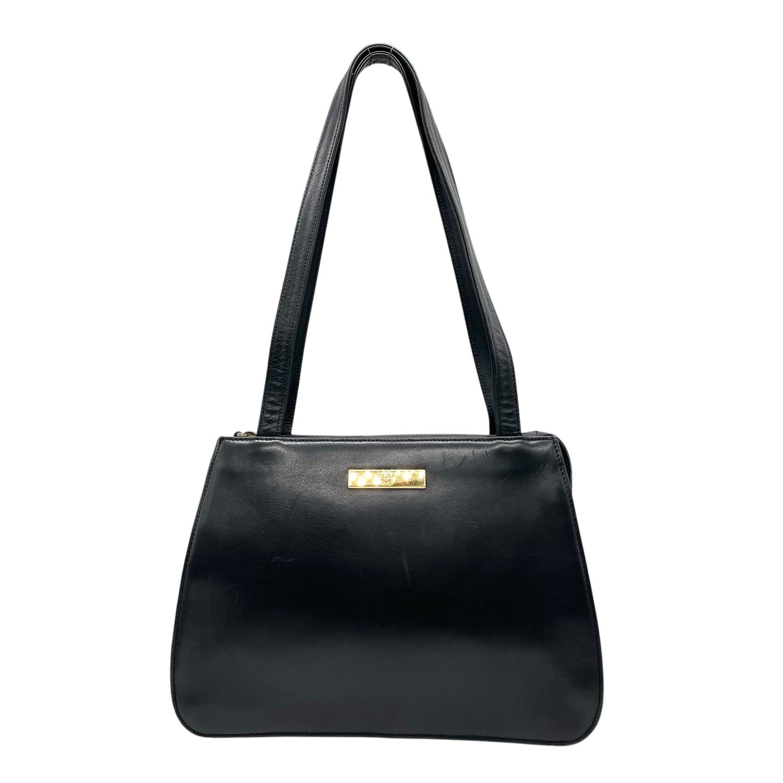 GIANNI VERSACE ジャンニ ヴェルサーチ ワンショルダー ショルダーバッグ メデューサ レザー 黒 ブラック ゴールド金具 肩掛け可 ファスナー開閉 レディース ヴィンテージ Z3