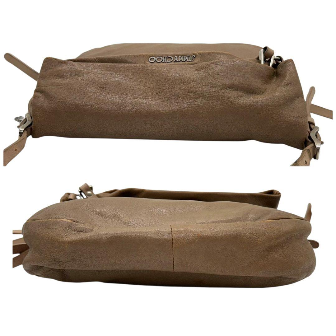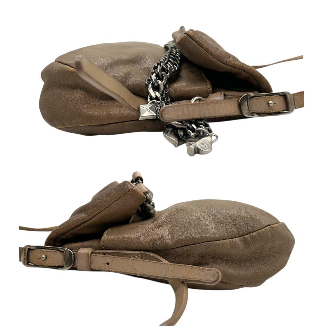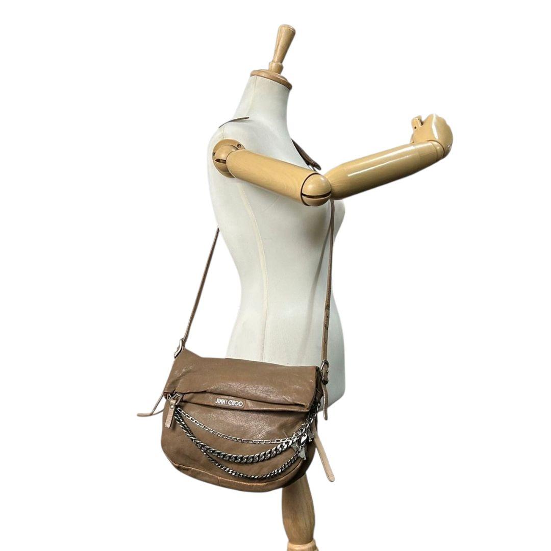 ジミーチュウ JIMMY CHOO ショルダーバッグ 茶 ブラウン レザー チェーン バイカー 斜め掛け可 本革 シルバー金具 ロゴ チャーム付き レディース s4