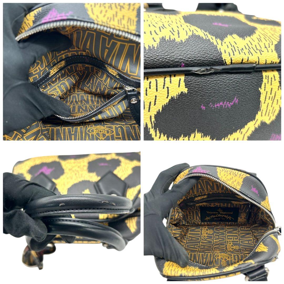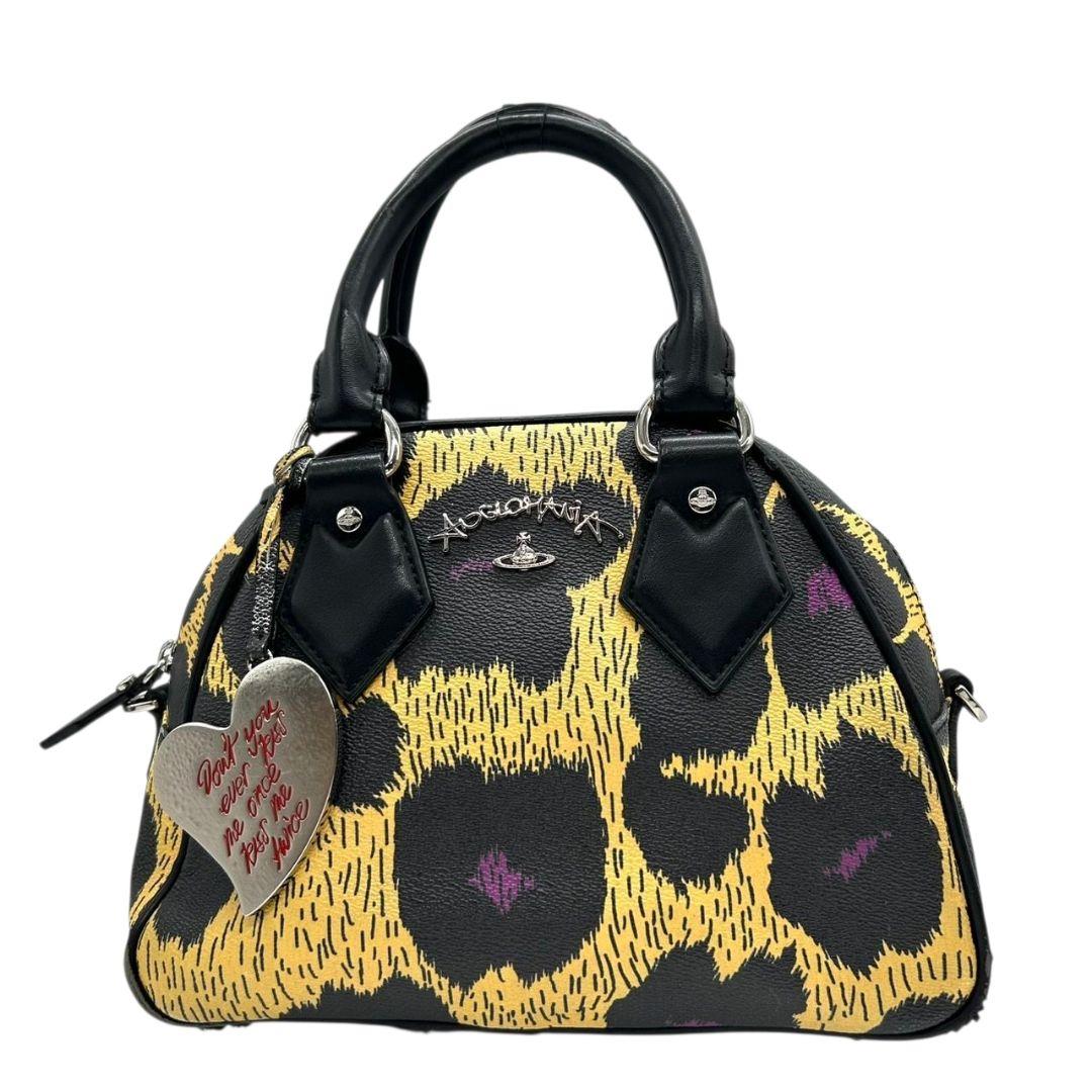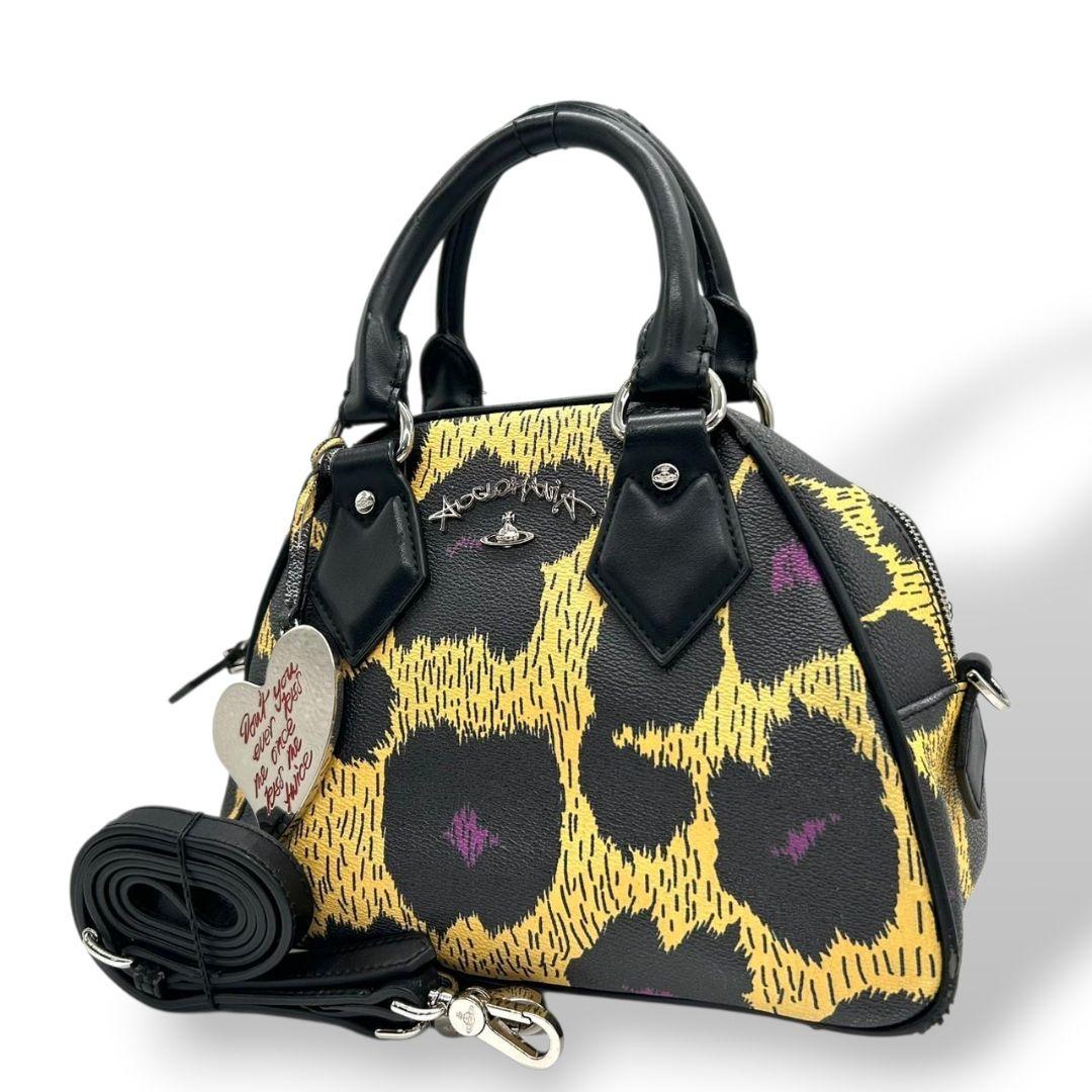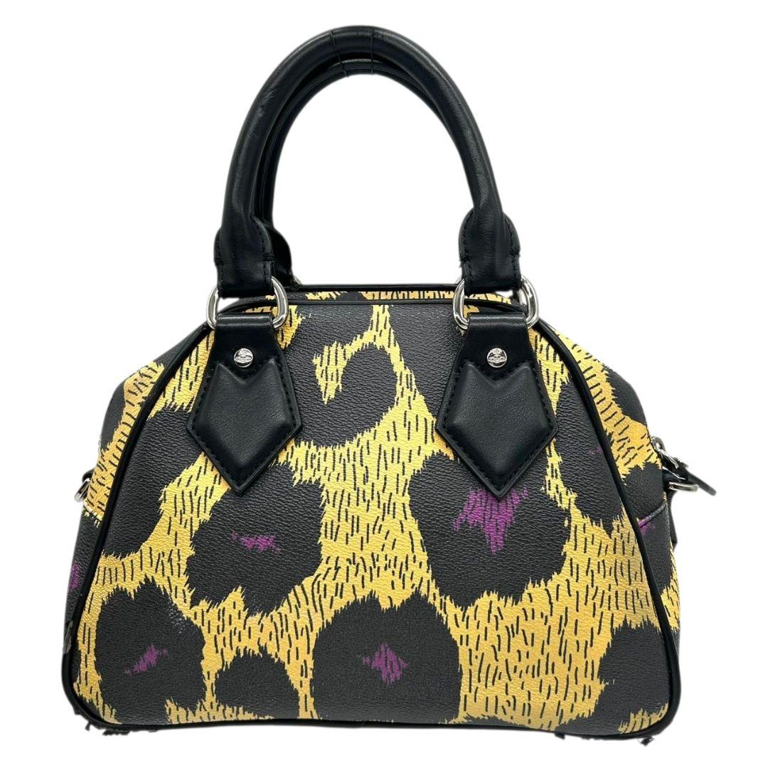ヴィヴィアンウエストウッド ハンドバッグ 2WAY ショルダーバッグ 黒 ブラック レオパード柄 イエロー PVC アングロマニア トートバッグ オーブ チャーム付き
