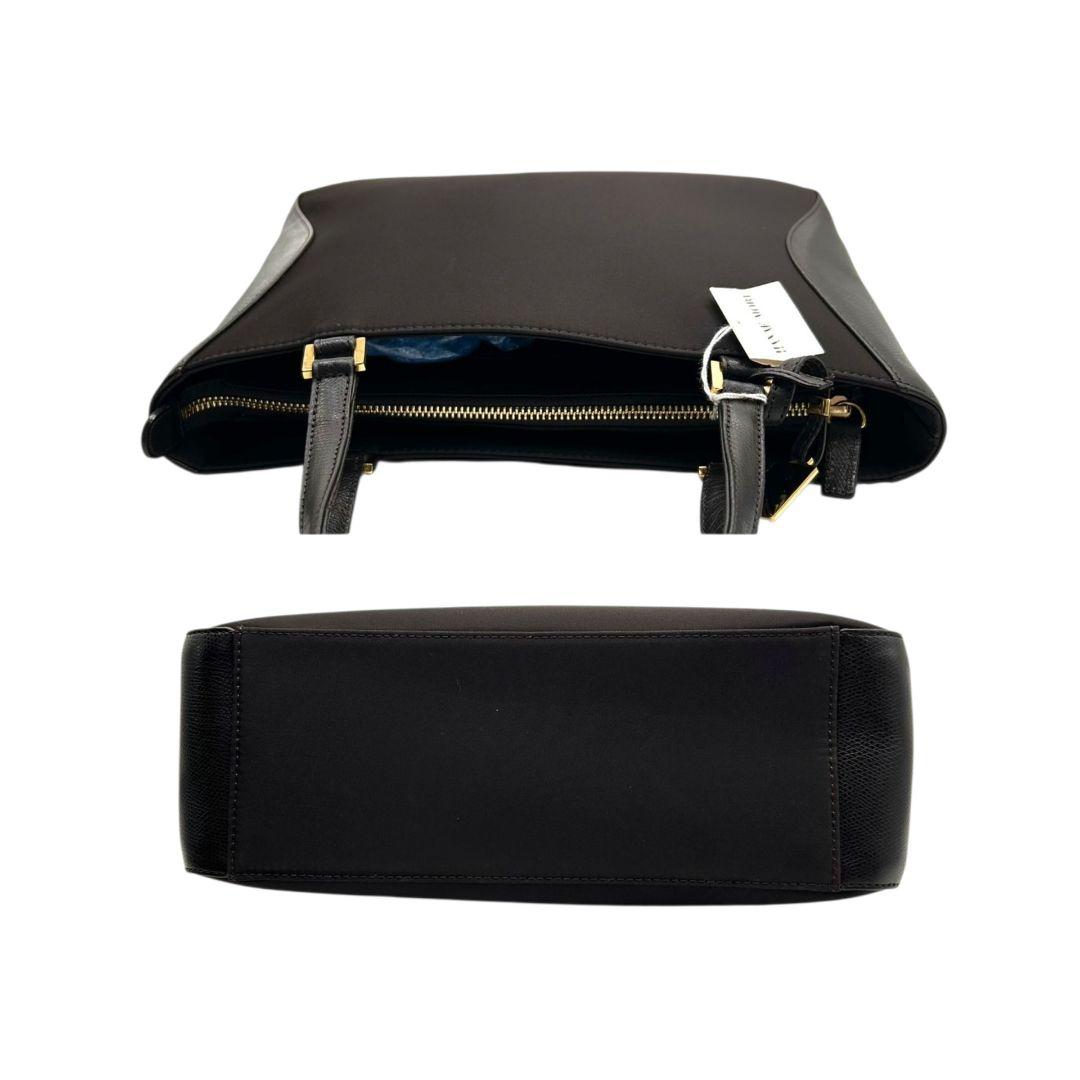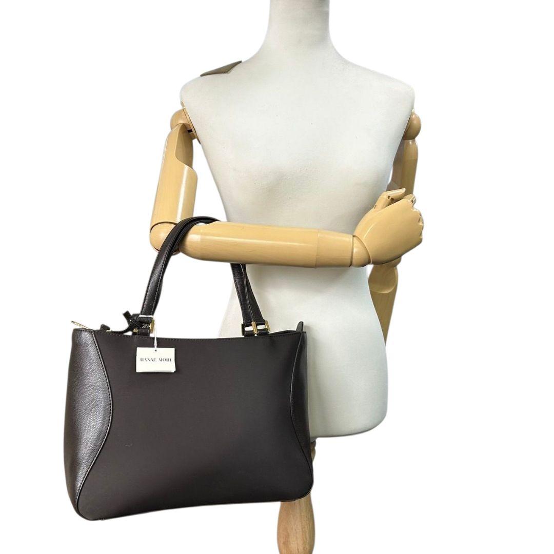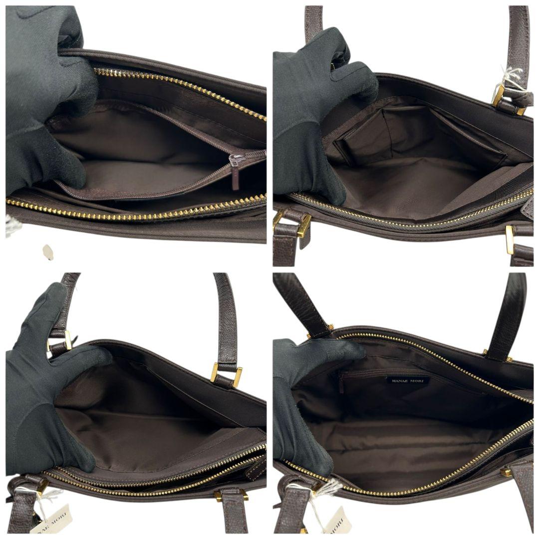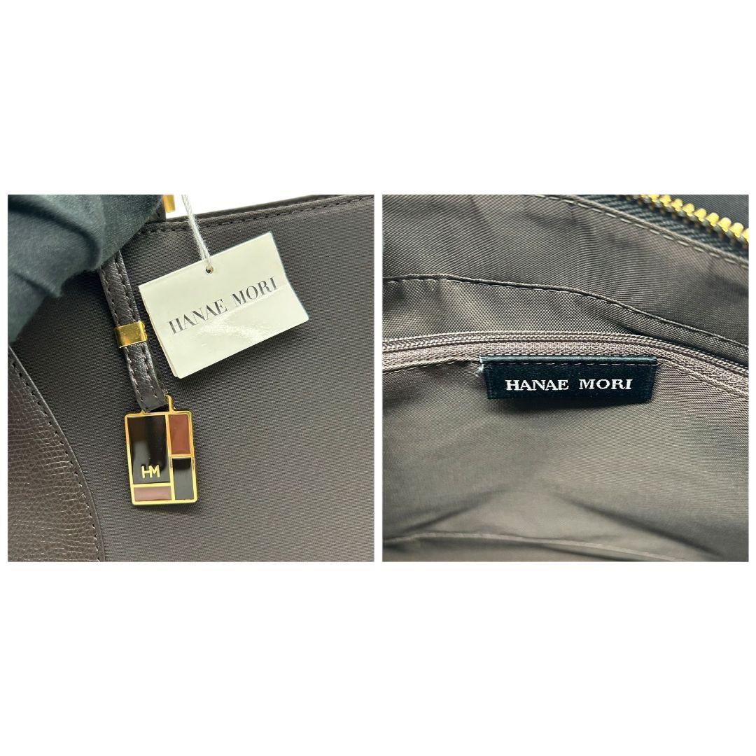 ハナエモリ ハンドバッグ 茶 ワンショルダー ナイロン レザー s16 トートバッグ ダークブラウン ゴールド金具 肩掛け可 肩かけ可 本革 HANAE MORI