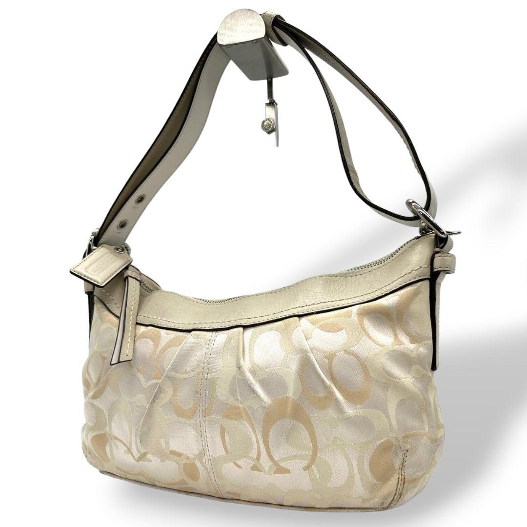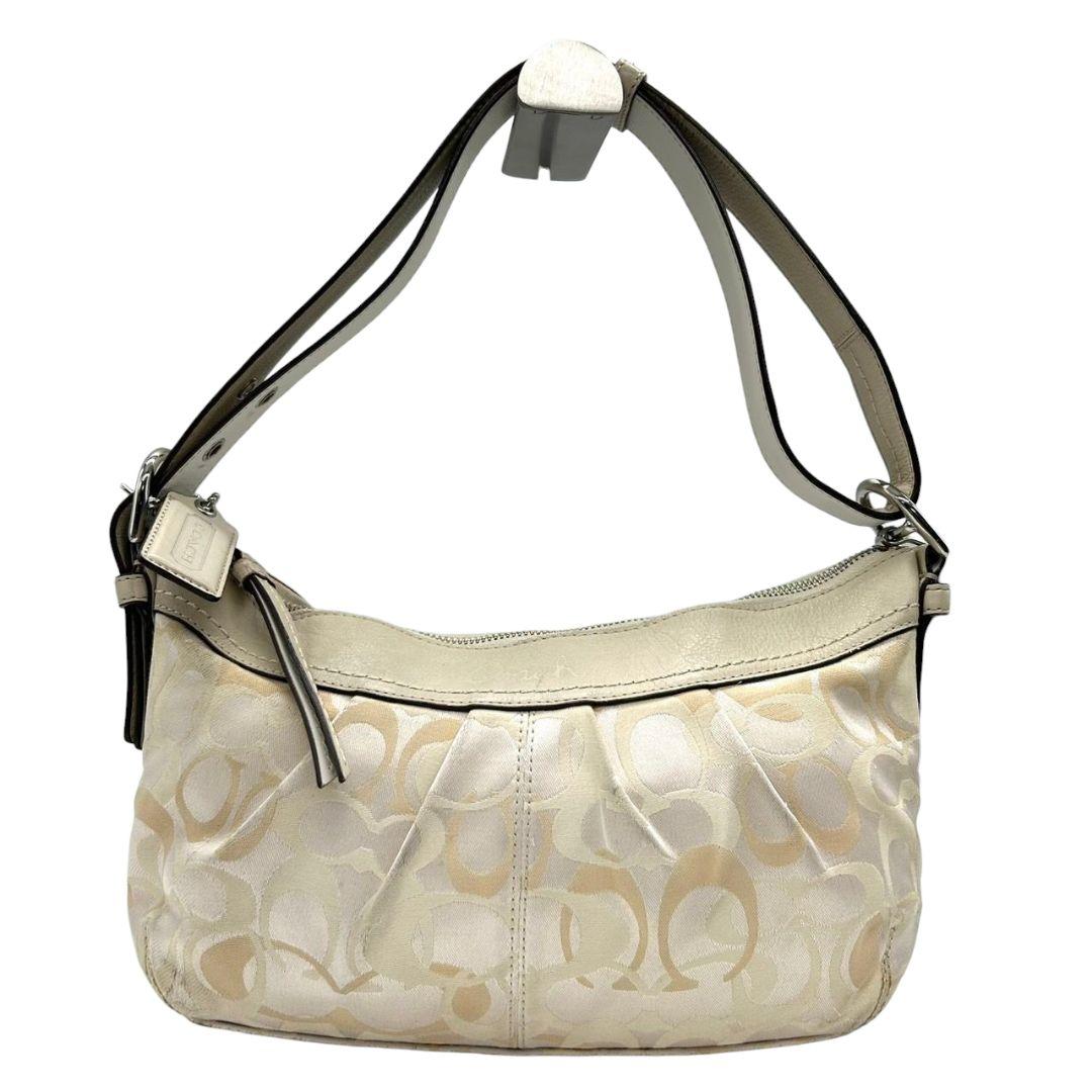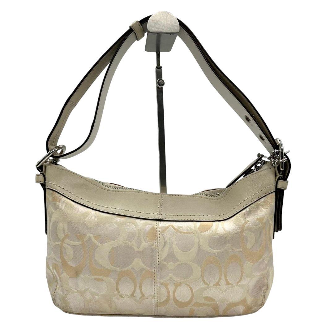 コーチ ショルダーバッグ 白 ホワイト シグネチャー 2way 斜め掛け可 ナイロン ハンドバッグ トートバッグ 肩掛け可 ワンショルダー シルバー金具 ロゴタグ s22 COACH F14488