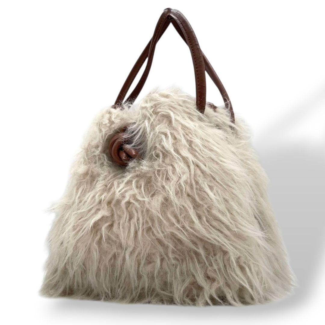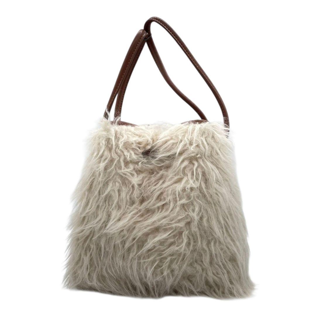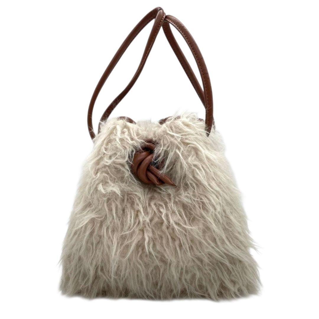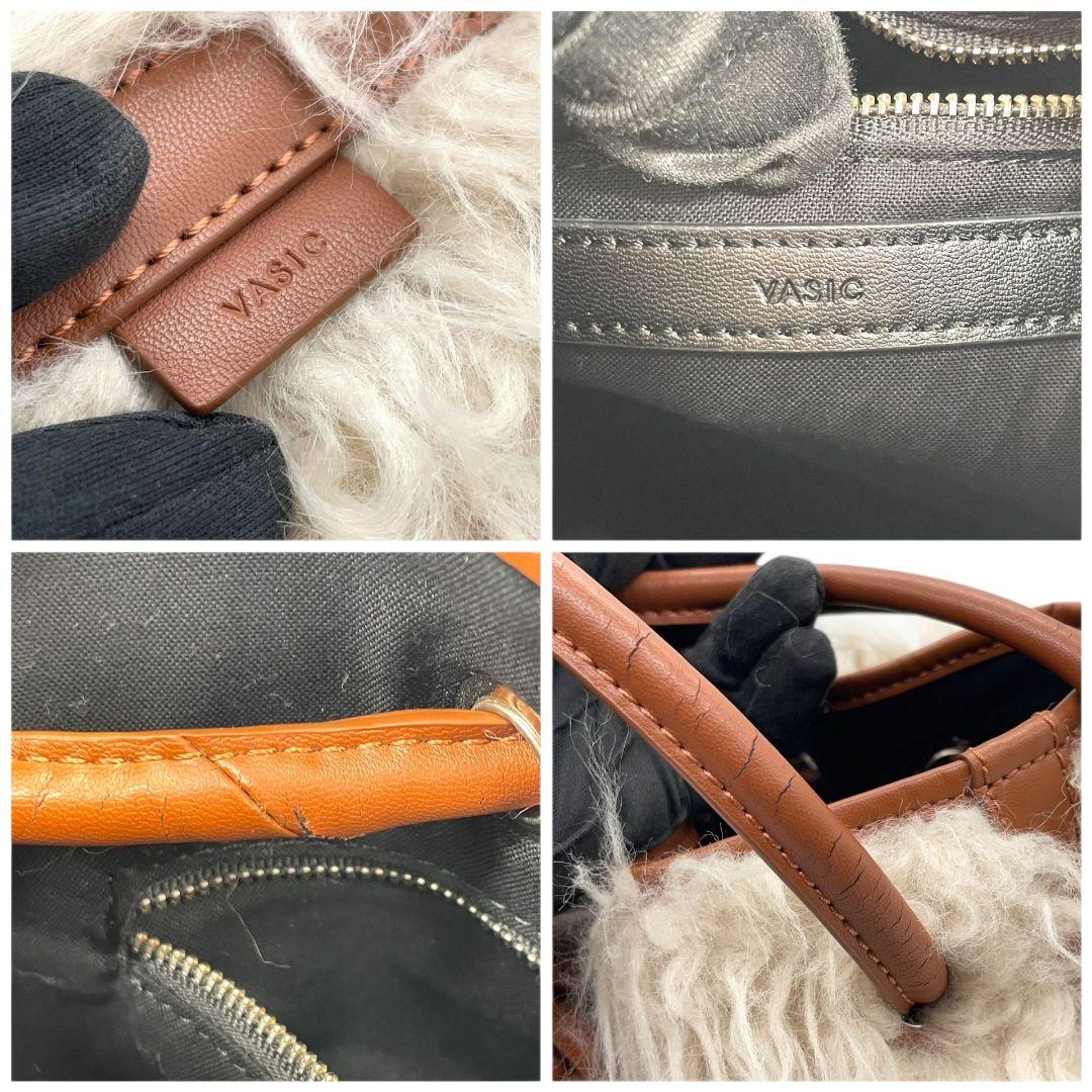 VASIC ヴァジック ハンドバッグ ホワイト 白 ブラウン 茶 ボンド ファー トートバッグ 自立可 レザー 本革 ロゴ s4 上品 高級感 レディース おしゃれ