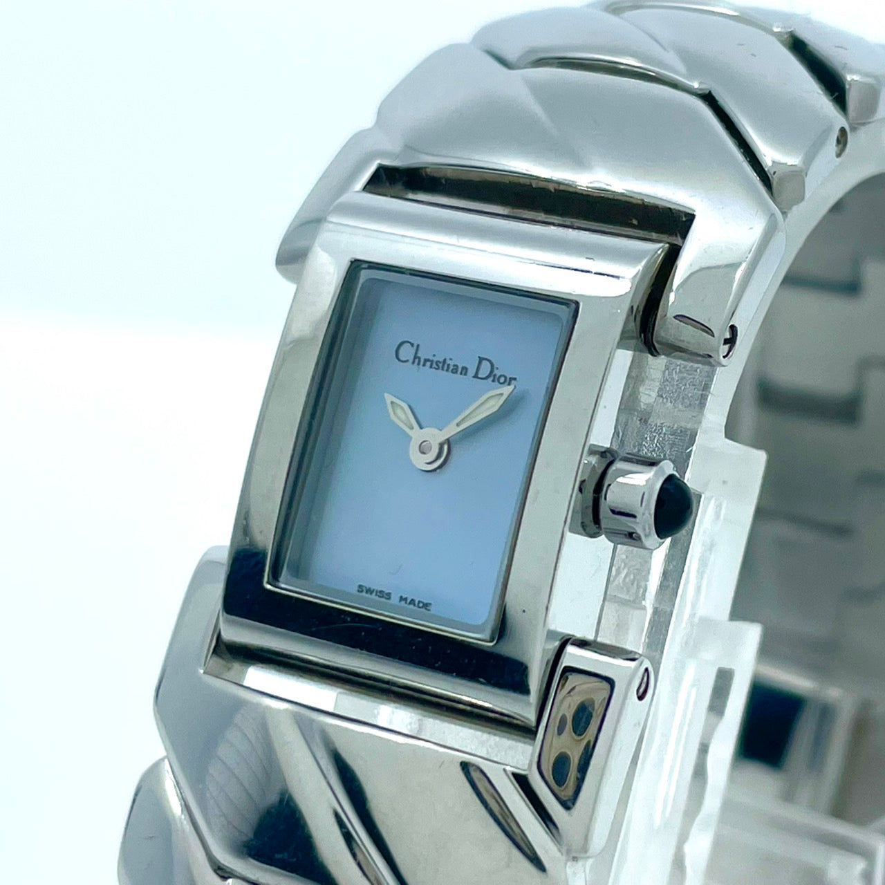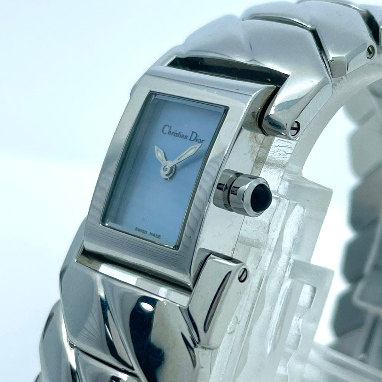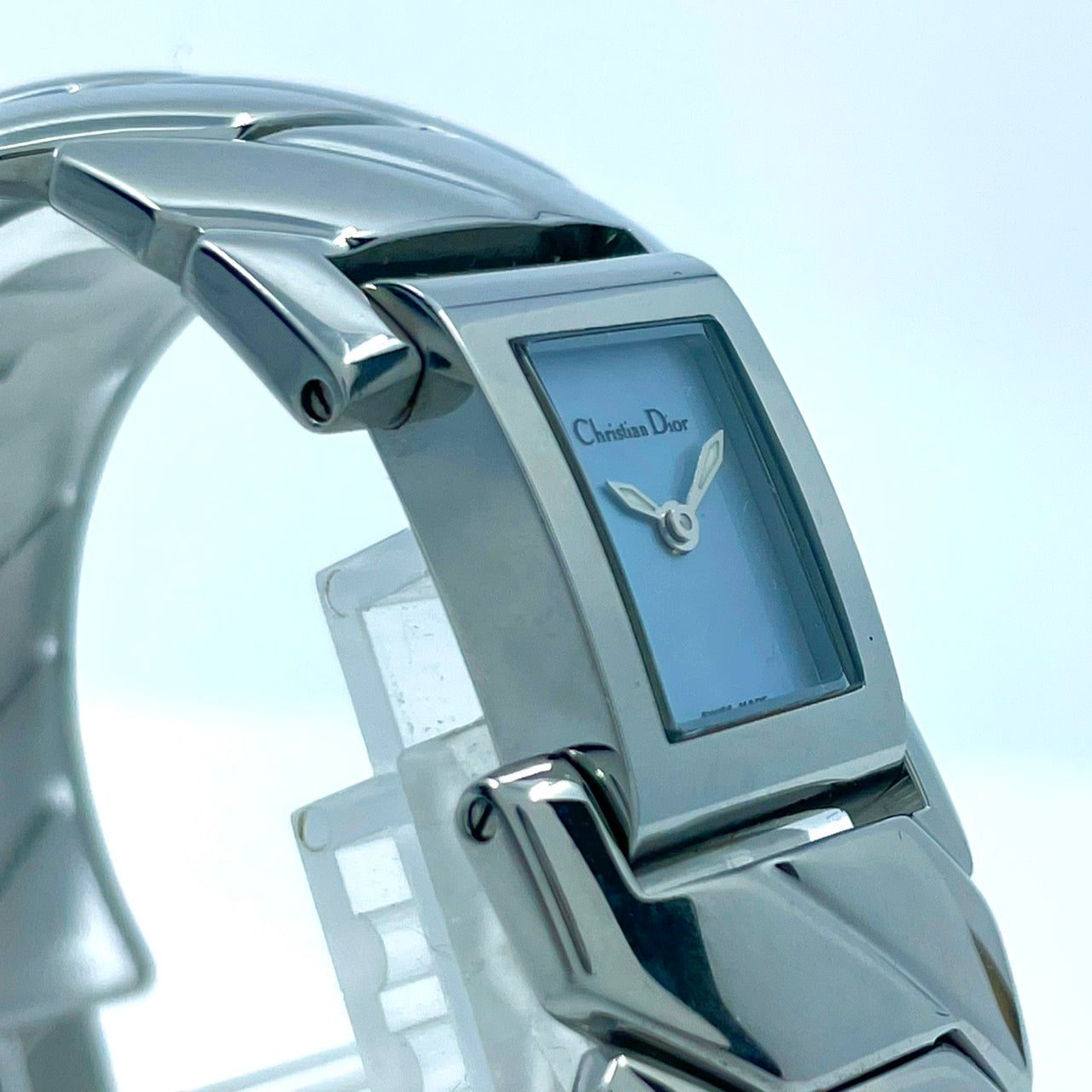 【稼働/美品】クリスチャンディオール 腕時計 D72-100 レディースウォッチ スクエア シルバー アイスブルー文字盤 クォーツ ブレスレットウォッチ エレガント ドレスウォッチ クラシック スイス製 高級ブランドウォッチ クリーニング済 G6