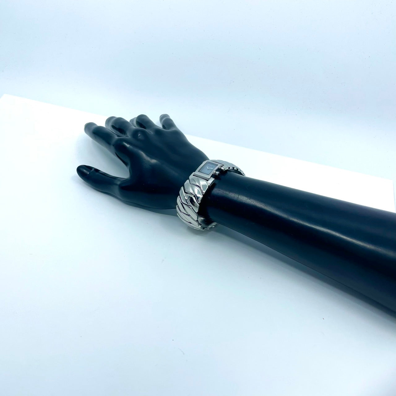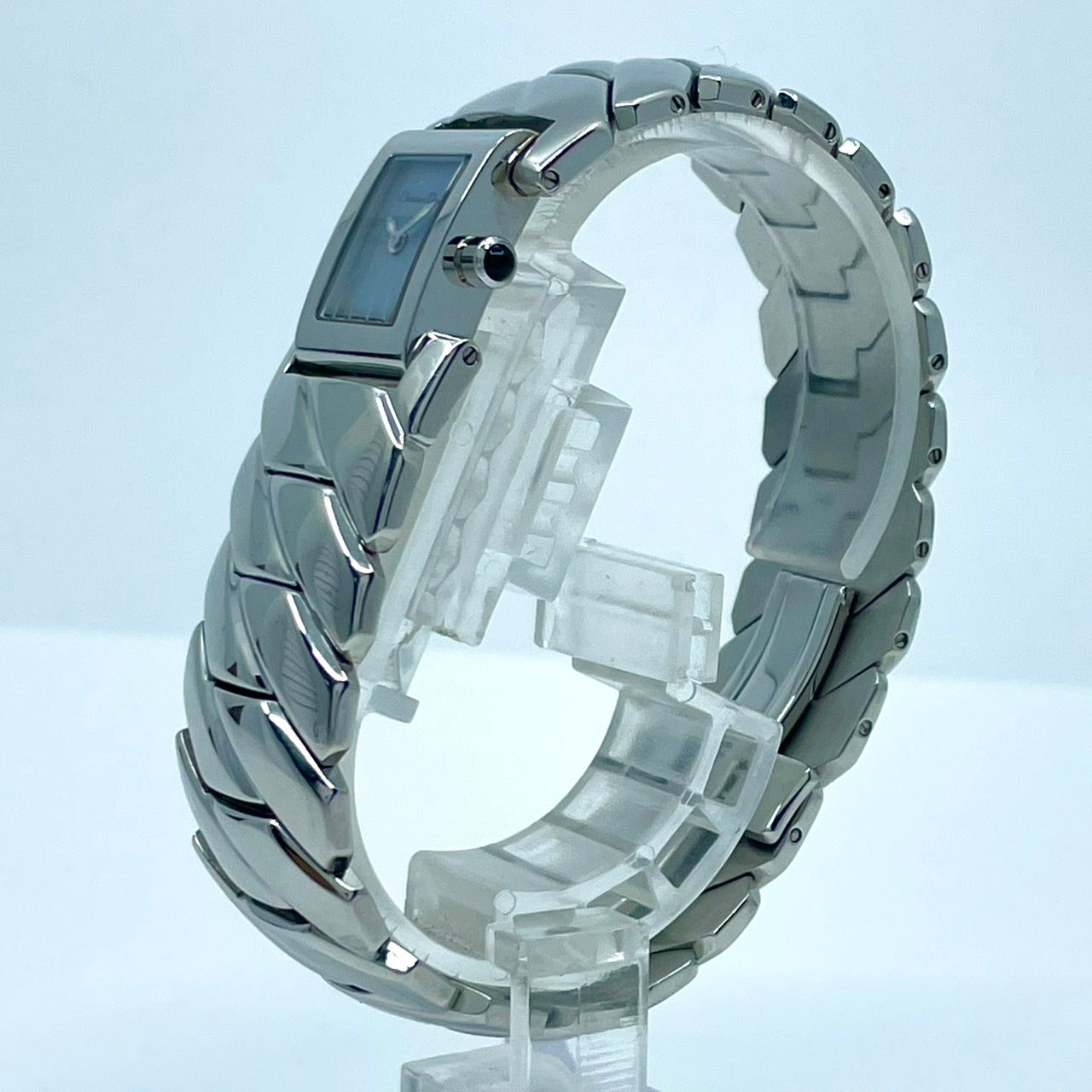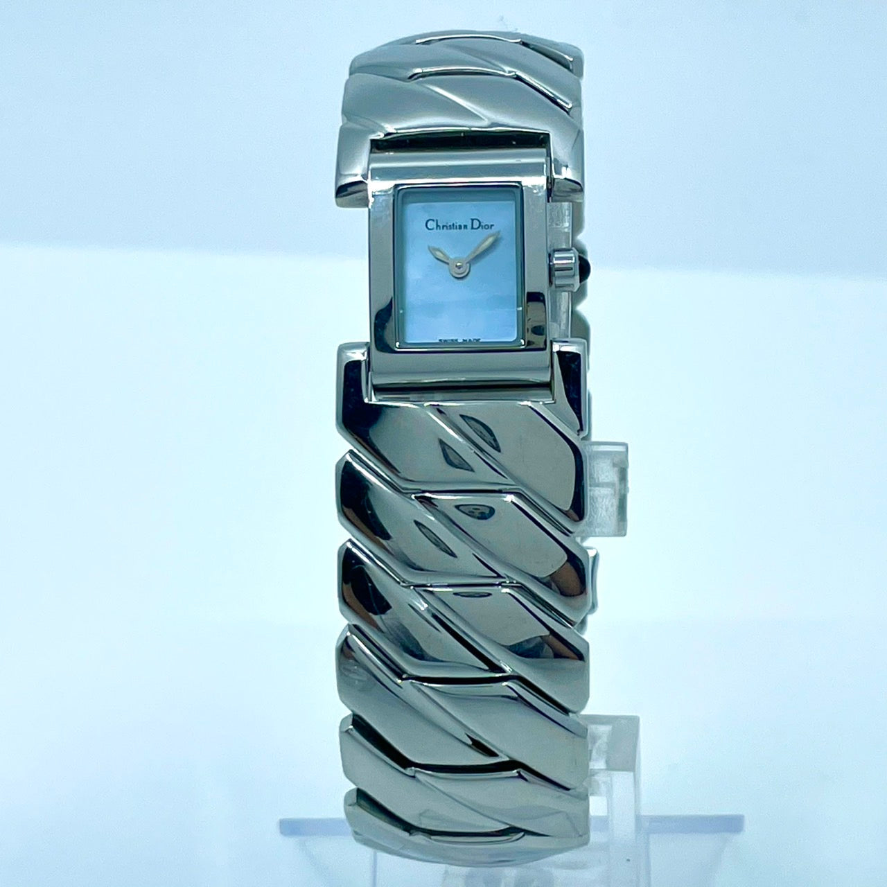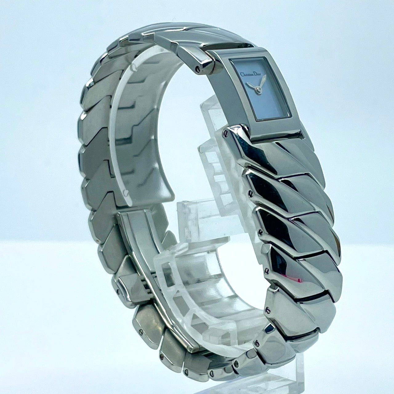 【稼働/美品】クリスチャンディオール 腕時計 D72-100 レディースウォッチ スクエア シルバー アイスブルー文字盤 クォーツ ブレスレットウォッチ エレガント ドレスウォッチ クラシック スイス製 高級ブランドウォッチ クリーニング済 G6