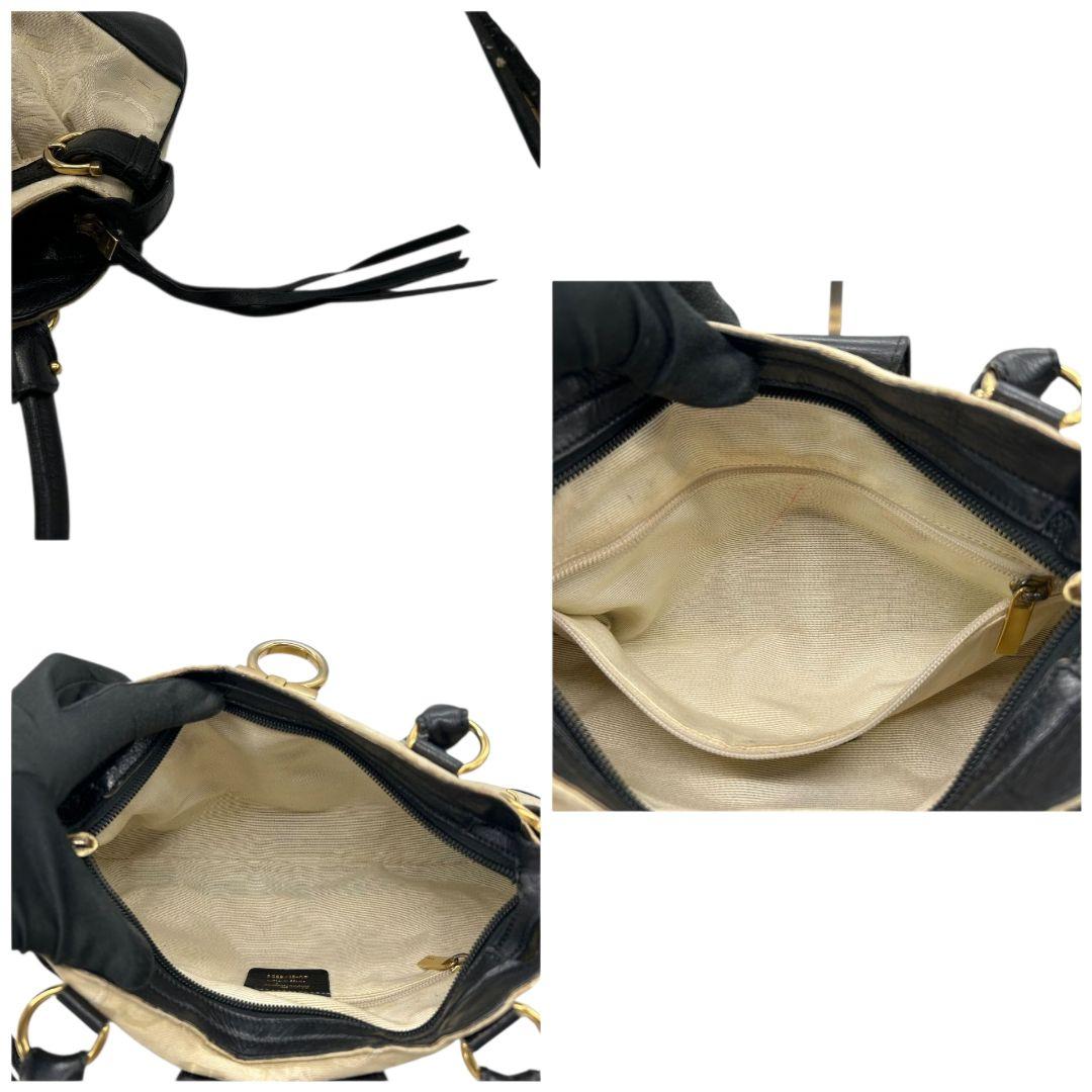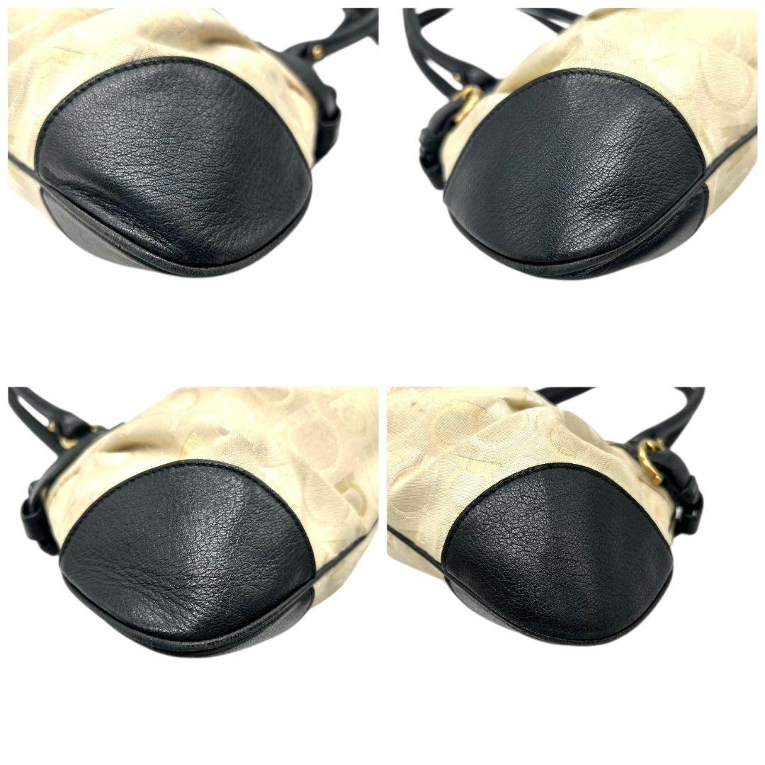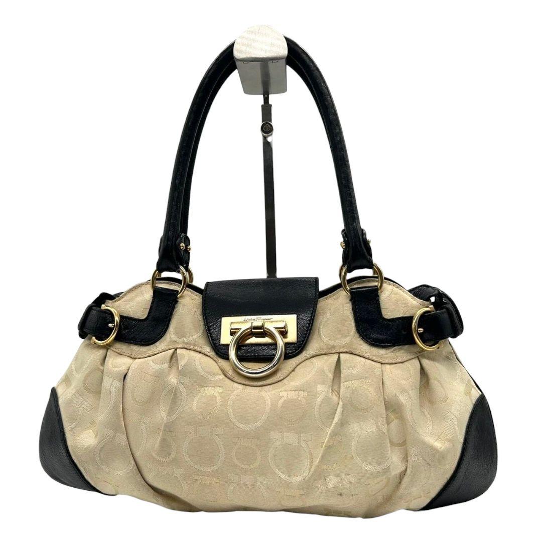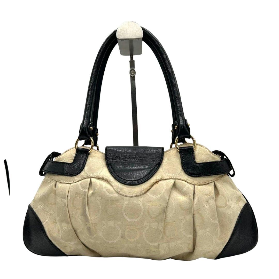 フェラガモ Salvatore Ferragamo ハンドバッグ ガンチーニ ベージュ×黒 キャンバス レザー ワンショルダー トートバッグ 肩掛け可 ゴールド金具 AU-21/6326 s49