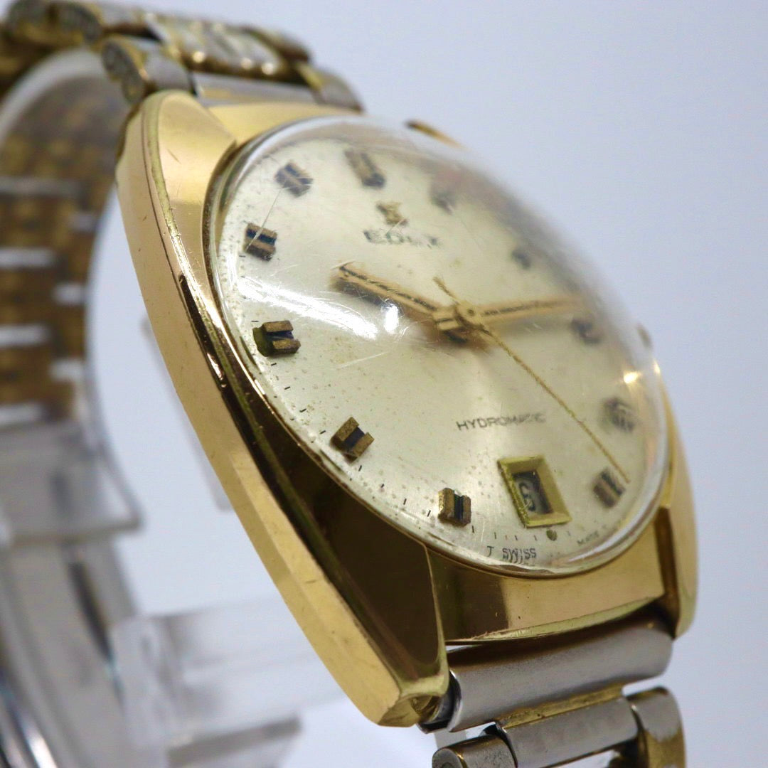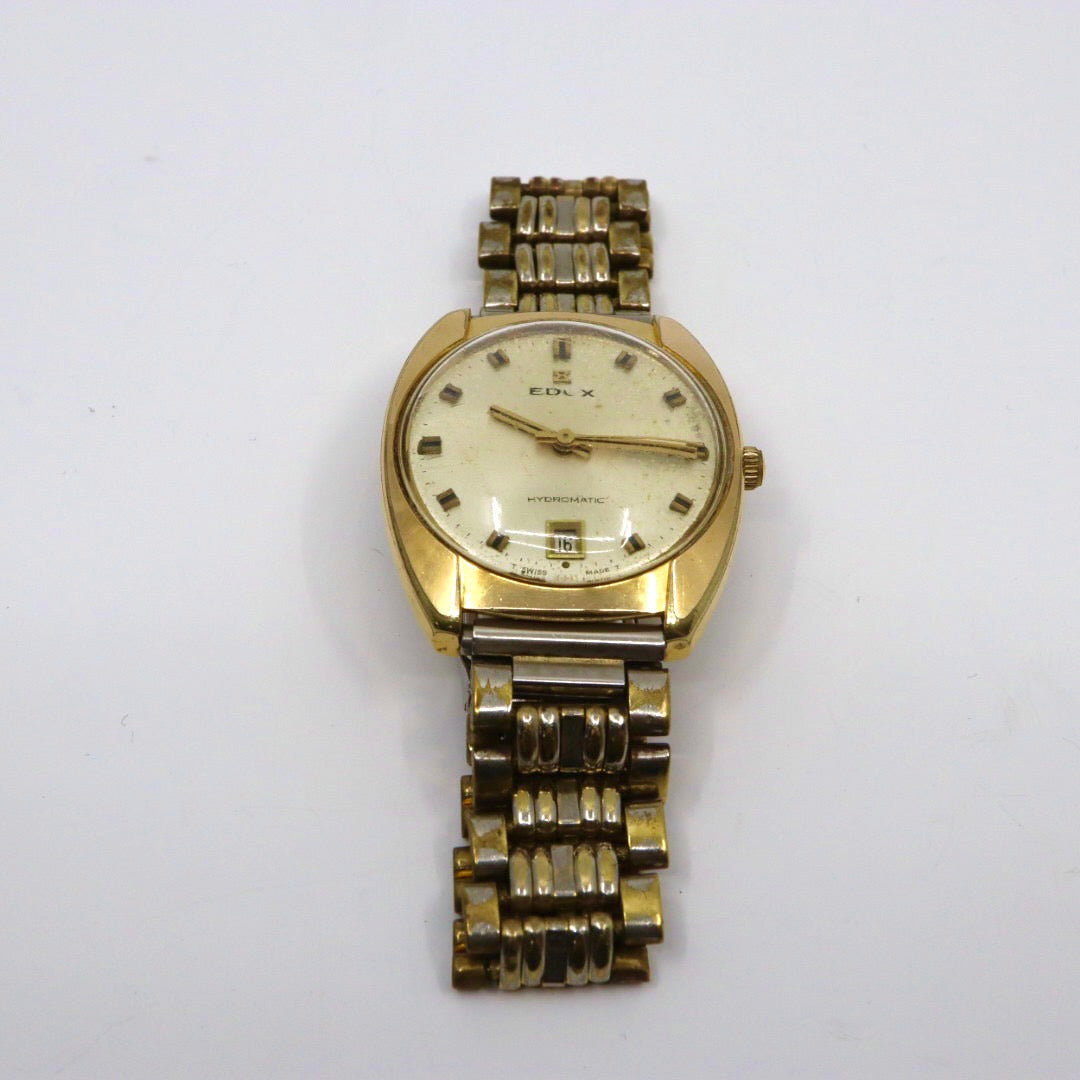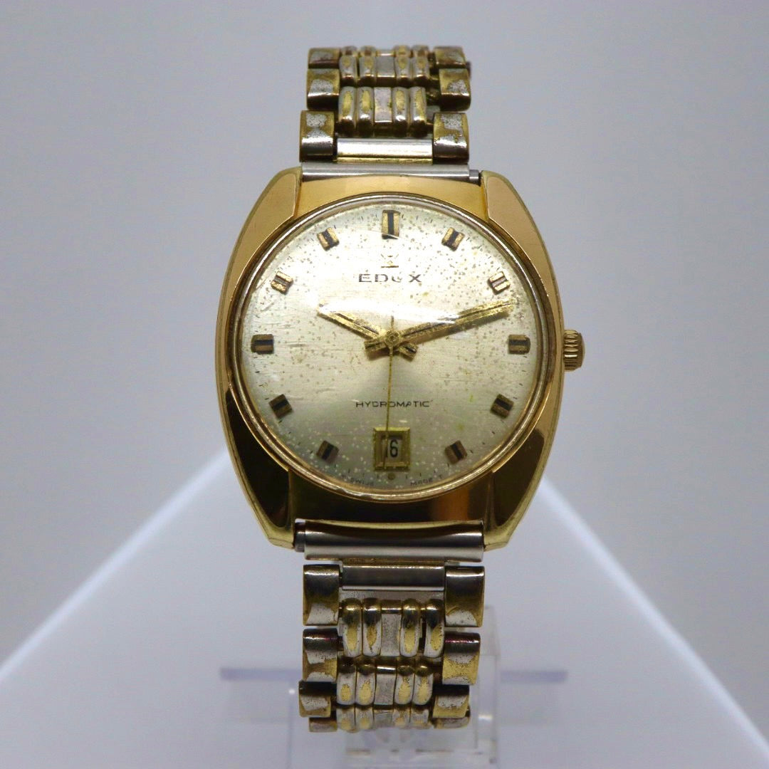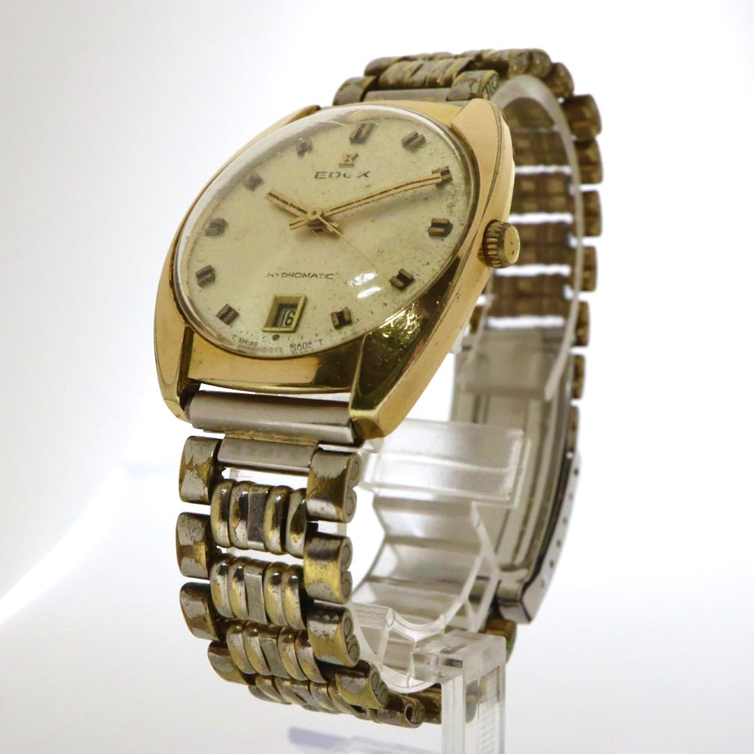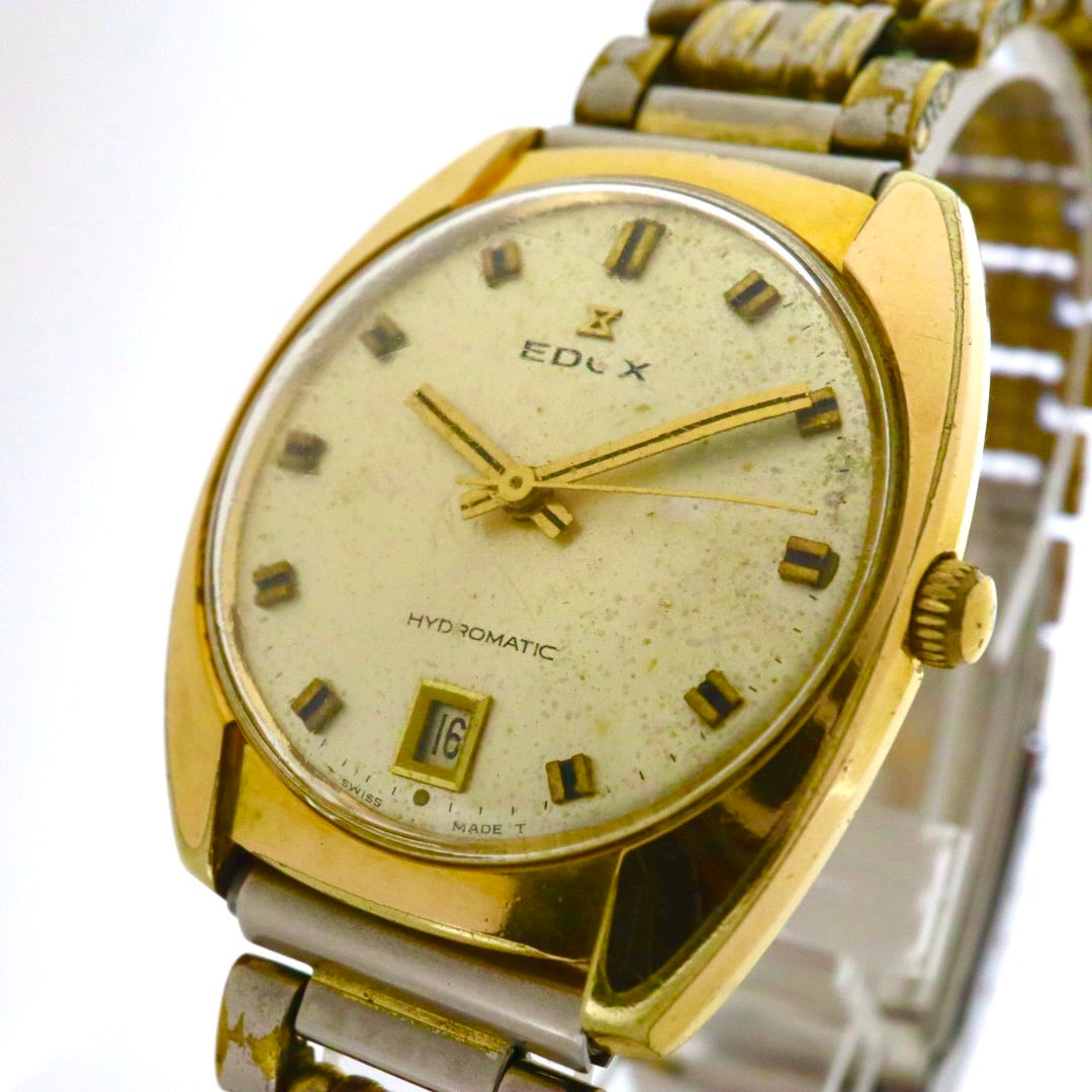 【希少品/稼働品/ヴィンテージ】エドックス EDOX ハイドロマチック 腕時計 メンズ 自動巻き ゴールド シルバー コンビ デイト表示 ラウンド アナログ アンティーク クラシック レトロ スイス製 希少モデル クリーニング済 G1