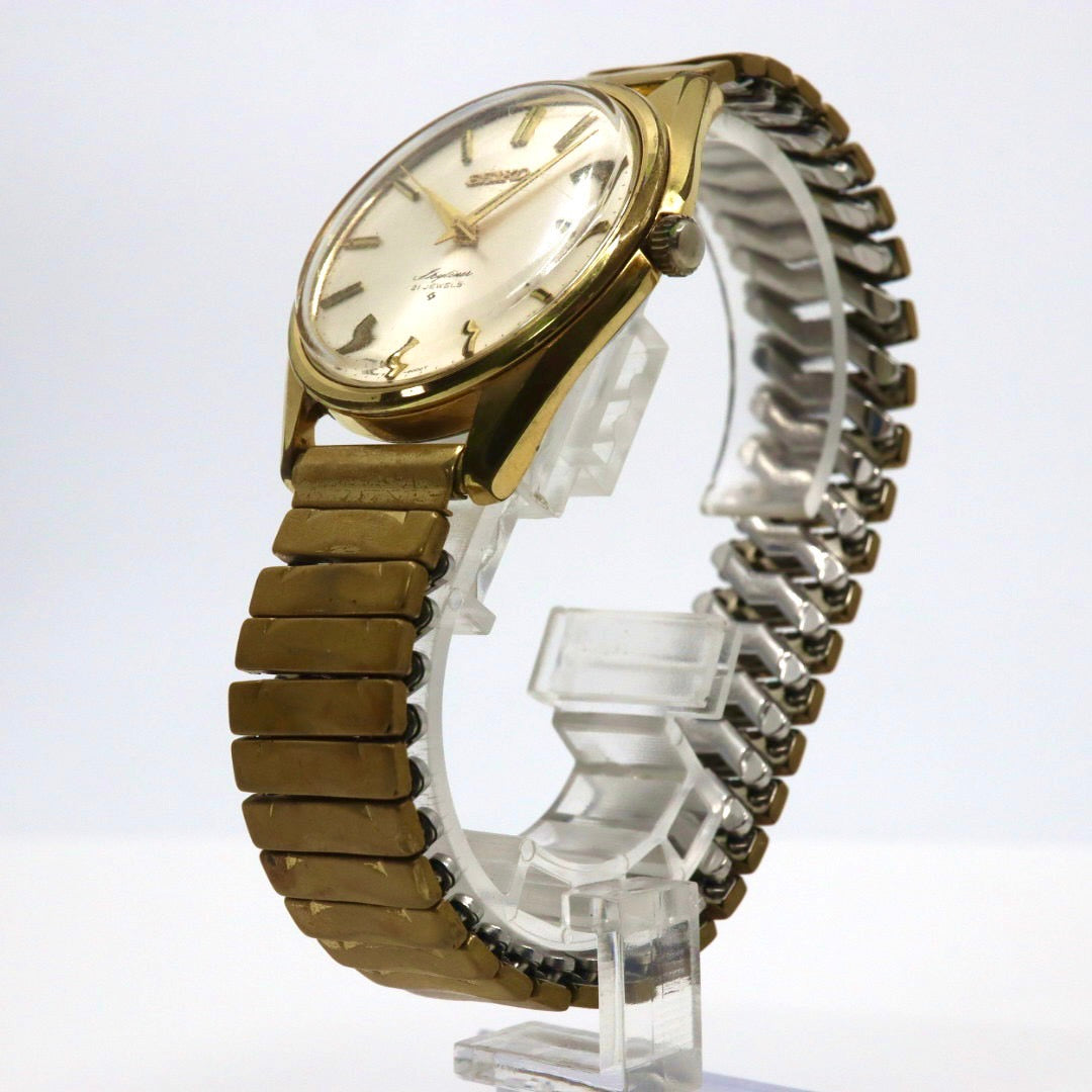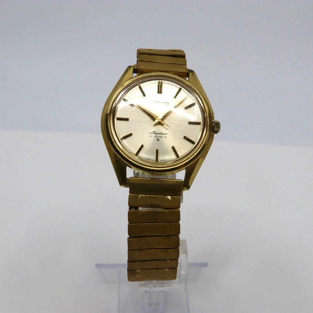 【稼働品/ヴィンテージ】 SEIKO セイコー スカイライナー 腕時計 6100-8000 メンズ 手巻き 21石 ゴールド文字盤 アナログ ラウンド ドレスウォッチ アンティーク クラシック レトロ 希少モデル クリーニング済 G1