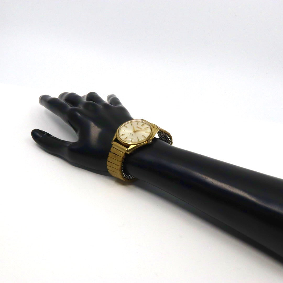 | 商品説明 | 【稼働品/ビンテージ】本商品はSEIKO(セイコー)の「スカイライナー」です。1960年代頃に製造された手巻きのビンテージ腕時計で、シンプルながらも洗練されたクラシックなデザインが魅力です。 特徴 ブランド:SEIKO (セイコー) モデル:Skyliner (スカイライナー) 6100-8000 ムーブメント:手巻き (21石 / 21 Jewels) ケース形状:ラウンド ケースカラー:ゴールド 文字盤カラー:ゴールド 素材:ステンレススチール 仕様:アナログ表示 / ドレスウォッチ 状態:稼働品 / クリーニング済み ゴールドのケースが上品な印象を与え、ビンテージウォッチならではの独特の雰囲気をお楽しみいただけます。 |