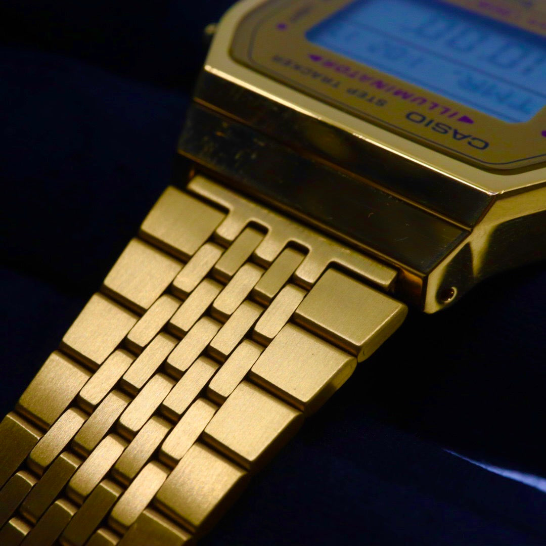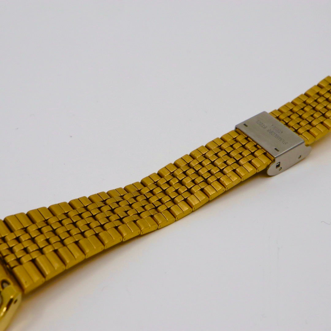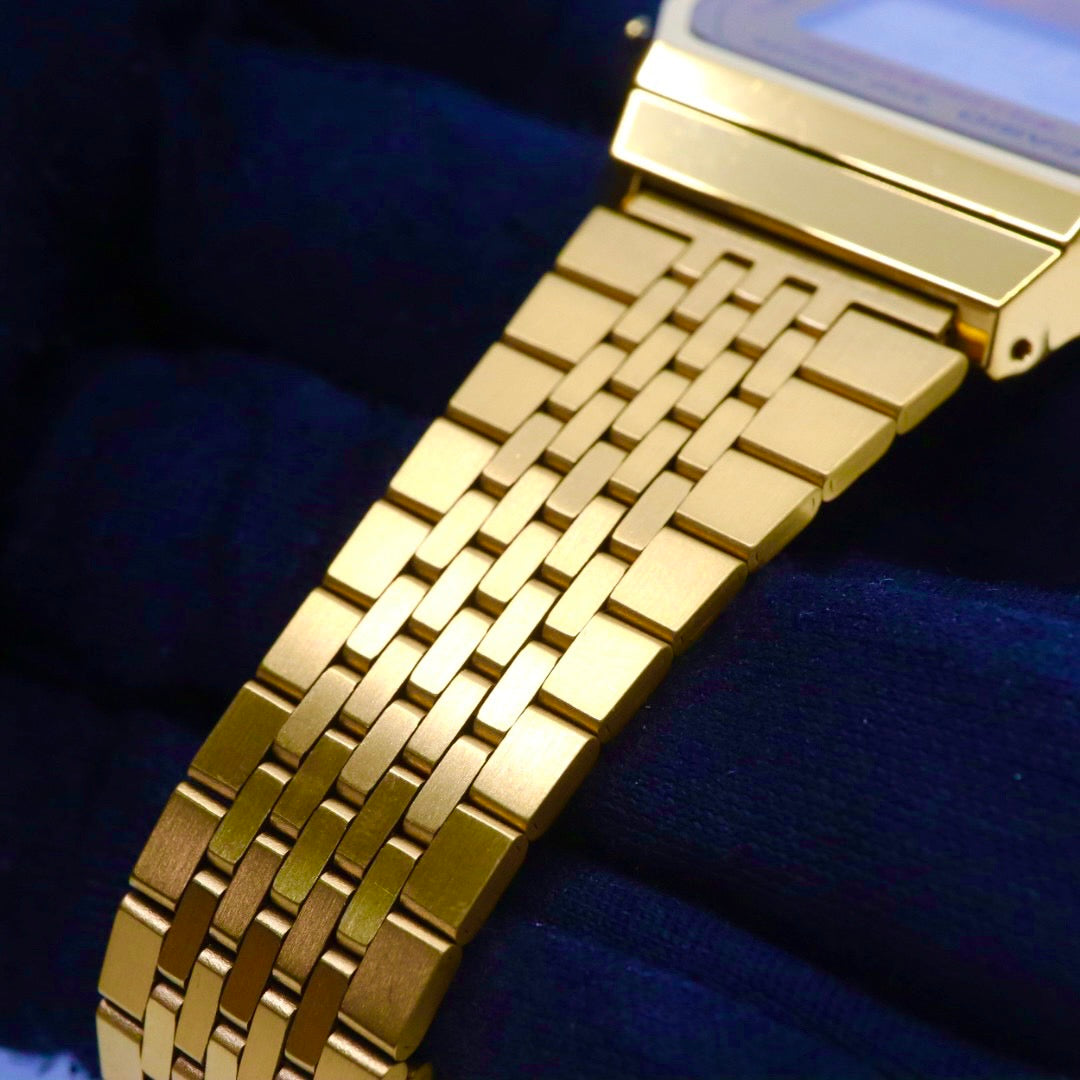 | 商品説明 | 【美品/電池交換済】本商品は、CASIO(カシオ)の多機能デジタルウォッチです。 レトロなスクエアデザインと鮮やかなゴールドカラーが特徴で、ファッションのアクセントとしても映える一本。Bluetoothでスマートフォンと連携し、歩数計測データを自動転送・記録できる「ステップトラッカー」機能を搭載しています。 特徴 ブランド:CASIO(カシオ) 型番:ABL-100WEG-9AJF ムーブメント:クオーツ(電池式) ケース形状:スクエア ケースカラー:ゴールド 文字盤カラー:ゴールド 素材:樹脂 / ステンレススチール 仕様:デジタル表示 / Bluetooth連携 / ステップトラッカー(歩数計) / LEDライト(イルミネーター) 状態:新品電池交換済み / クリーニング済み ファッション性と実用性を兼ね備えた、アクティブなライフスタイルに最適な腕時計です。 |