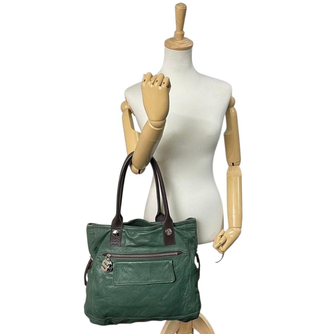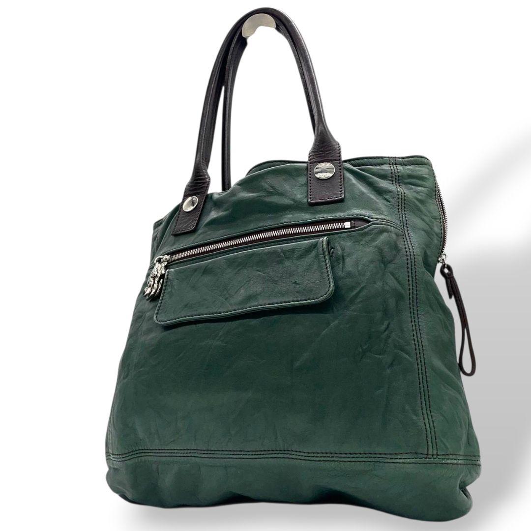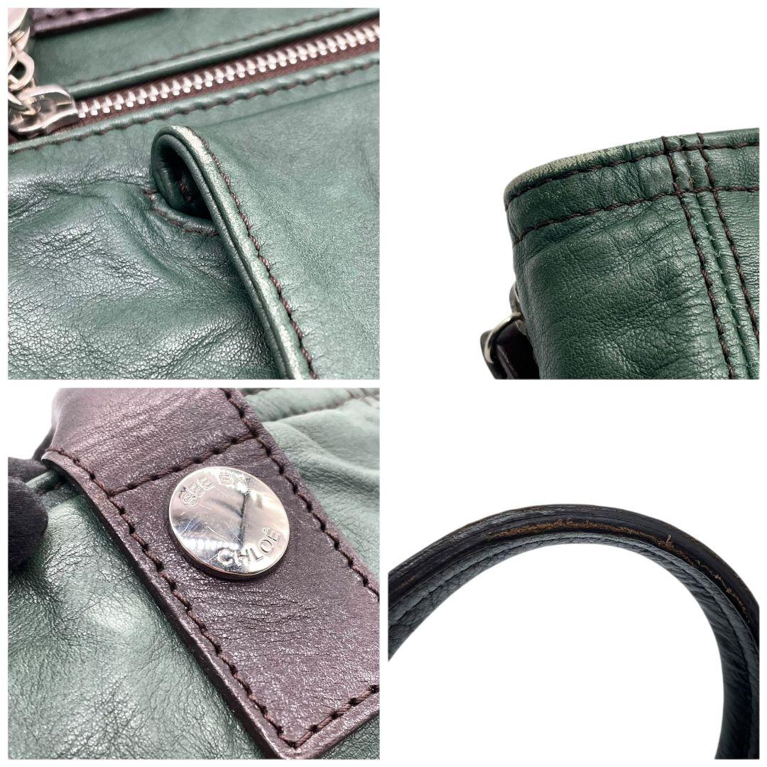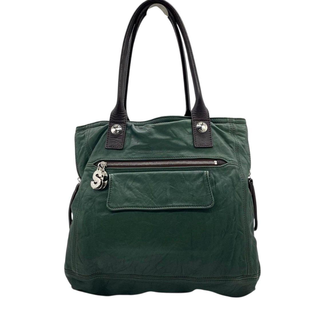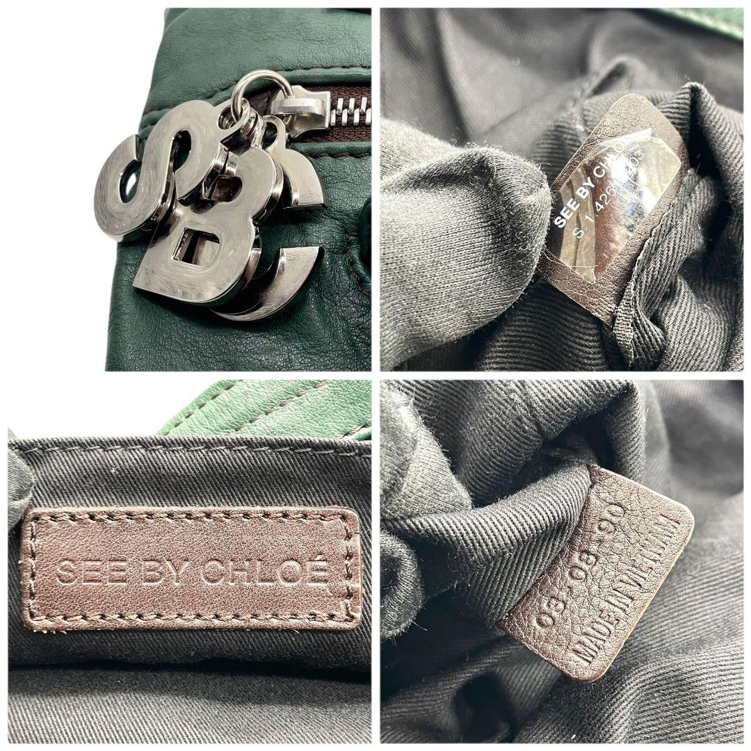 シーバイクロエ トートバッグ 緑 A4収納 ワンショルダー レザー s3 ハンドバッグ 肩掛け可 肩かけ可 本革 グリーン シルバー金具 ロゴプレート チャーム付き SeeByChloe
